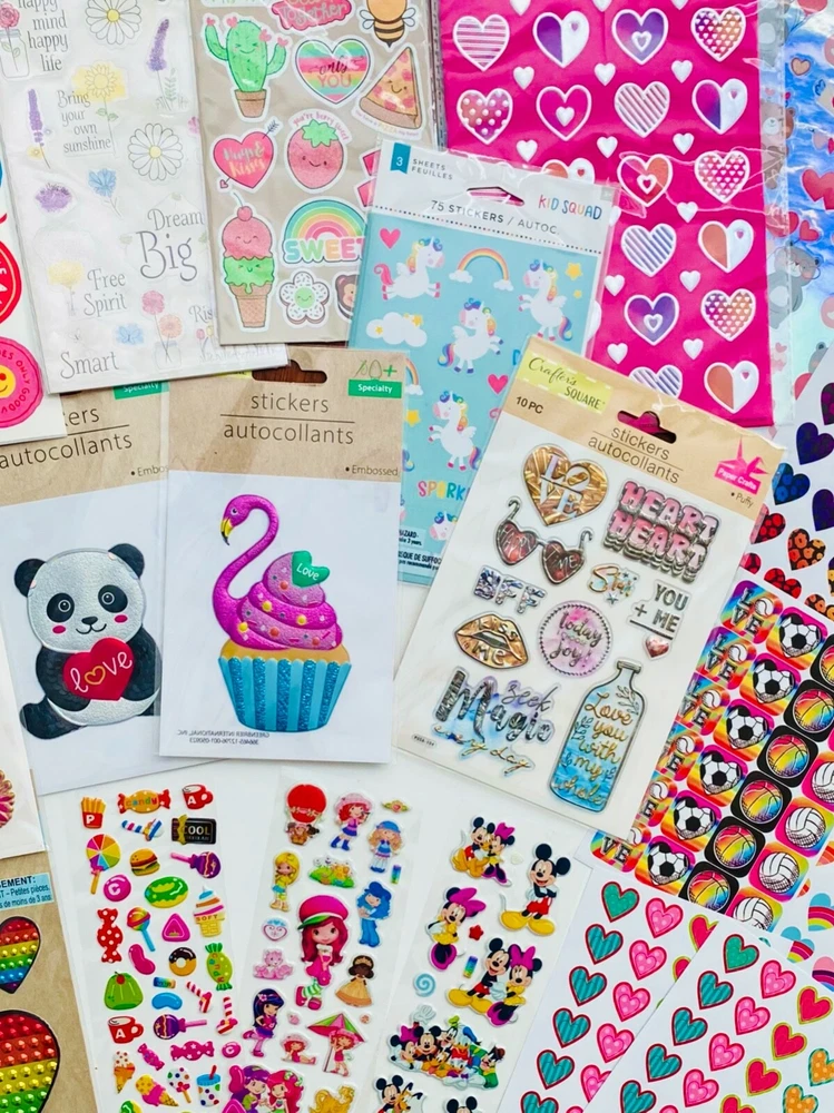HUGE Mixed Sticker Lot | The Ultimate Kit | Qty. 569+ Stickers | High Quality Only! Fun Assortment of Puffy, Scrapbook, Cartoons, Bubble, Pop Up Stickers Packs For Everyone! You will receive 29+ Sticker Sheets of beautiful colorful assortment. The Pack will include 569+ Stickers overall! I have included a large variety of pictures of the assortment available. The pictures give you an idea of what you will be receiving. Please Note: You will not receive everything pictured. Please contact me with any special requests. This HUGE Variety of fun designs stickers can be used in parties, classroom, school and home, good for reward for students, potty training, adding inside a birthday card, game activities, entertaining toddlers, etc. Perfect Gifts for Kids & all Occasions: Can be given as a gift for kids, girls, boys, toddlers, teens, students, friends, and classmates, they will love it!