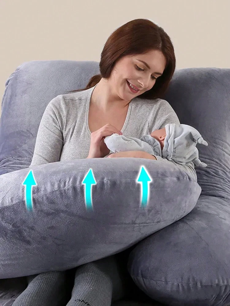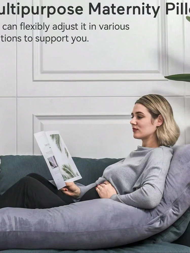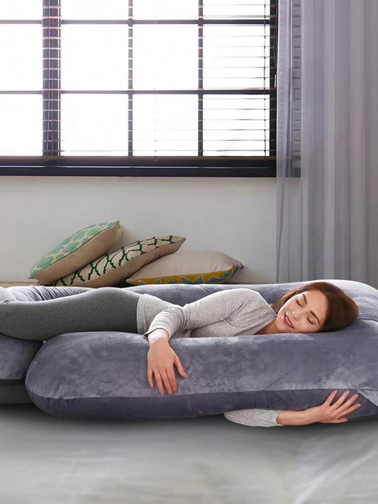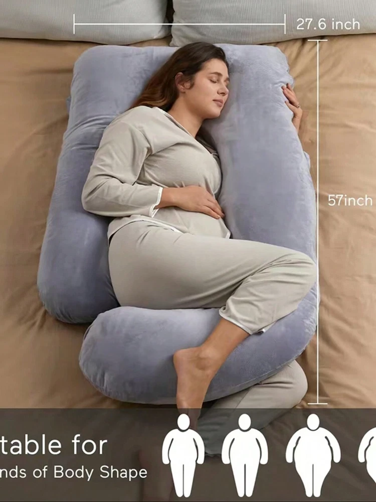 Ergonomic ult body pillow designs to replace the needs of multiple bedpillows, it hugs your entire body and conforms to both sides,perfectly supportthe head, back, belly, sides, knees, hip, and feet. .Deeply Sleep With Maternity Pillow- Our pregnancy body pillow helps improveblood circulation all night long and releases your body pressure,effectivelyrelieves back sore, hip pain and leg swelling.Providing exceptional comfortpain relief, and quality rest for expecting mothers. Our pillow is filled with a premium polyhll blend that is designed to provide softcomfort with increased support density as you apply weight to it. Not Just A Pregnancy Pillow - Our body pillow fits both side and backsleepers. You don't need to be pregnant to use it! lt helps with the discomfortassociated with pregnancy,sciatica, fibromyalgia, gastric reflux, back pain,ankle pain, and more. ldeal Gift for Anyone! Pillow cover material is velvet. softand comfortable.