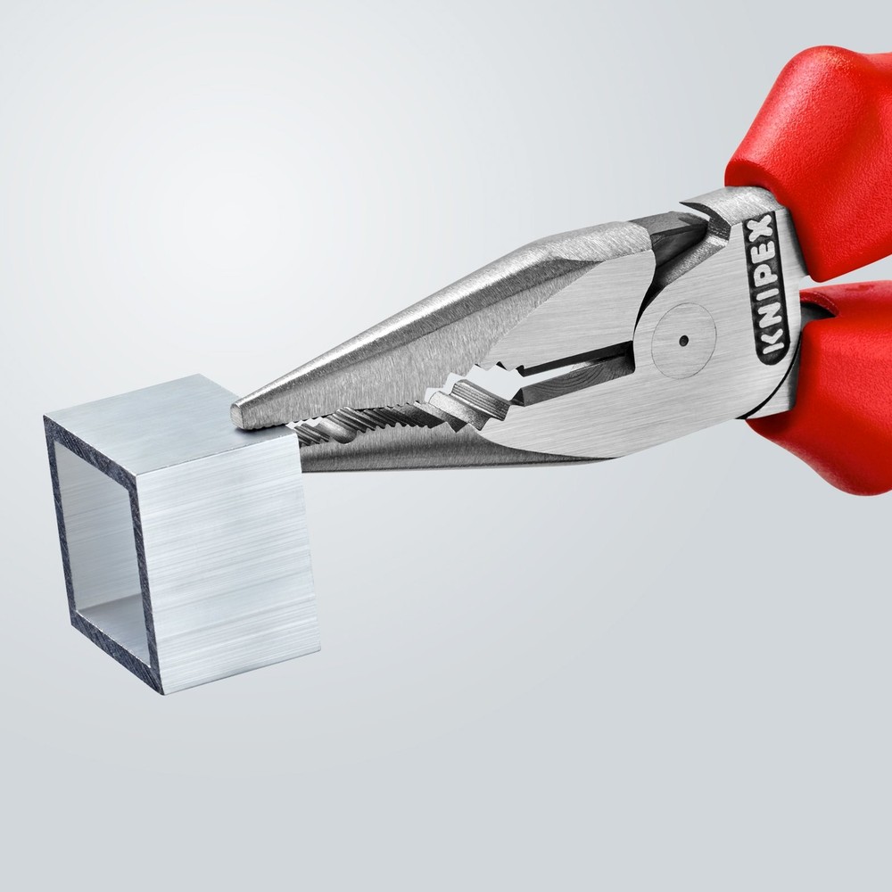 Handy use when working in confined areas thanks to slim head design and pointed jaws (anti-twist) Gripping surfaces with special convex contour on side for secure gripping of flat pieces Milled groove in the gripping area permits small pieces such as nails, pins and bolts to be held and pulled