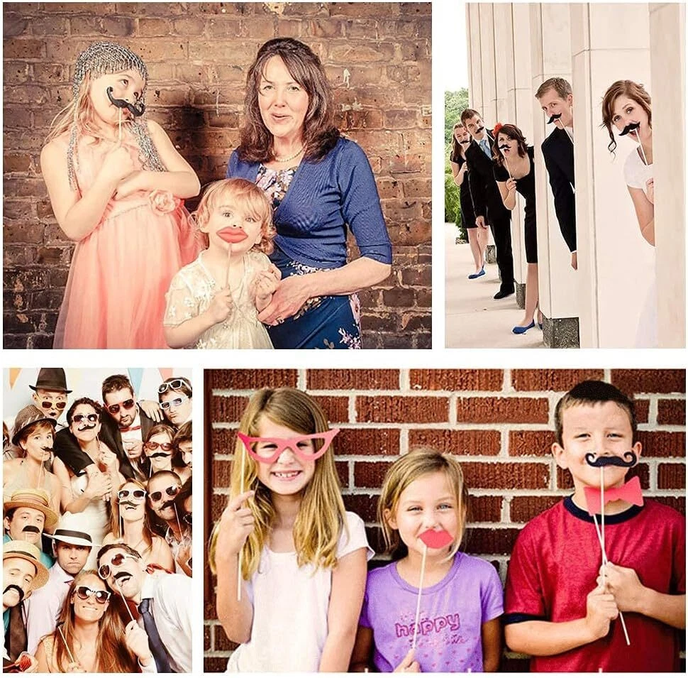 58 pieces super value pack graduation photo booth props. Bring tons of fun to your party Manufactured using high quality colored ink to make your photos sparkle and sturdy cardstock to withstand any celebration, while the sticks are made out of strong bamboo wood These props are ideal as novelty photo booth decorations for use with friends for your social media profile, personal scrapbook or photos for nostalgia in years to come Rowae photo props is suitable for any party, such as Birthdays, Wedding, Holiday Party, Babyshower, Garden Parties Photo booth props comes with more then enough glue dot sheets and smooth rounded wooden sticks. Easy to be put on for immediate use. Rowae offers a high quality photo booth party props, you can use for corporate events, weddings, birthday parties, new year party, Christmas party, family party, diy kits for kids, or any fun event. Our Photo Booth Props set are thoughtfully designed, vibrant, fun and interactive that helps you make the photo/photo booth experience more enjoyable, creative and exciting. Enjoy Your Good Time Meticulously hand designed, our selfie props were super cute. Your friends and family will love all the fun photo props to choose from to help capture those special memories. Products Details Photo booth props 58 piece DIY Kit Material: durable cardboard and bamboo stick Available for: kids and adults