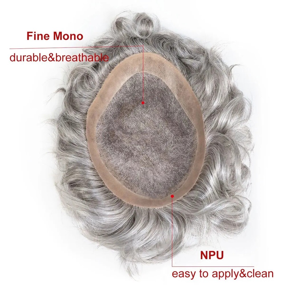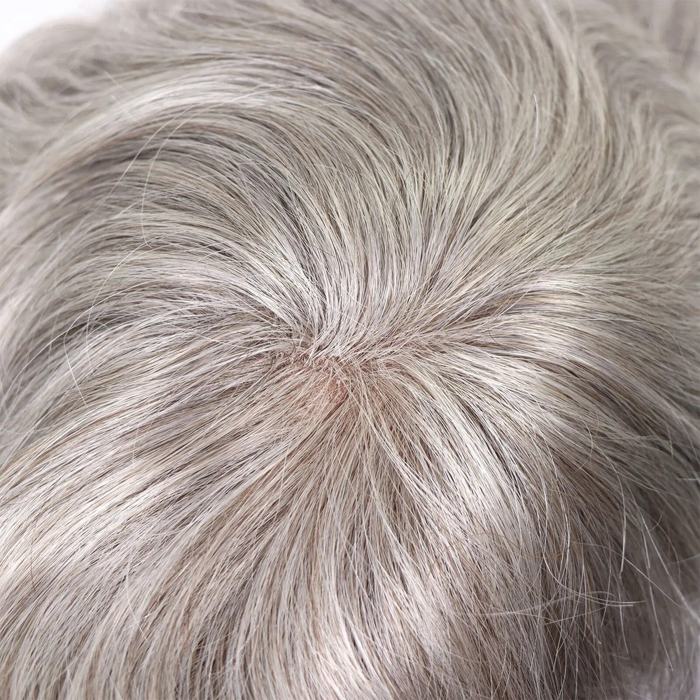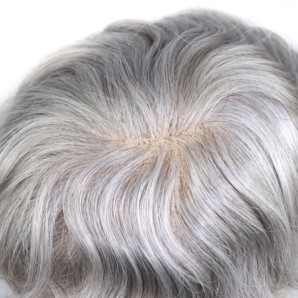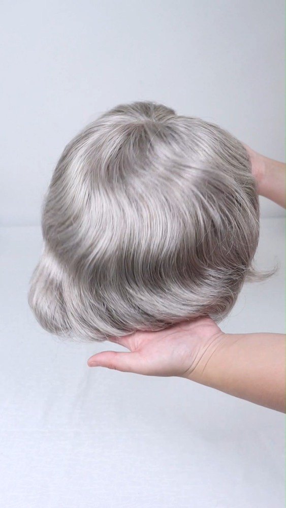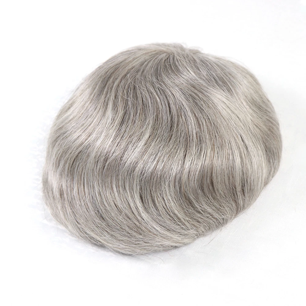 #580 Human Hair Mens Toupee Mono with Pu Replacement System Hairpiece Sliver Hair Grade Remy Hair Virgin Hair Yes Weight 75g Toupee Texture Straight/ Wave Toupee Design Right, Left Toupee Density 130% Toupee Base Thin Skin PU+Mono Lace Hair Length 6inch Human Hair Toupee Men Type 100% Human Virgin Hair Toupee Base size 8x10 Base Material French Lace Hair color #580 Hair type European Hair Toupee