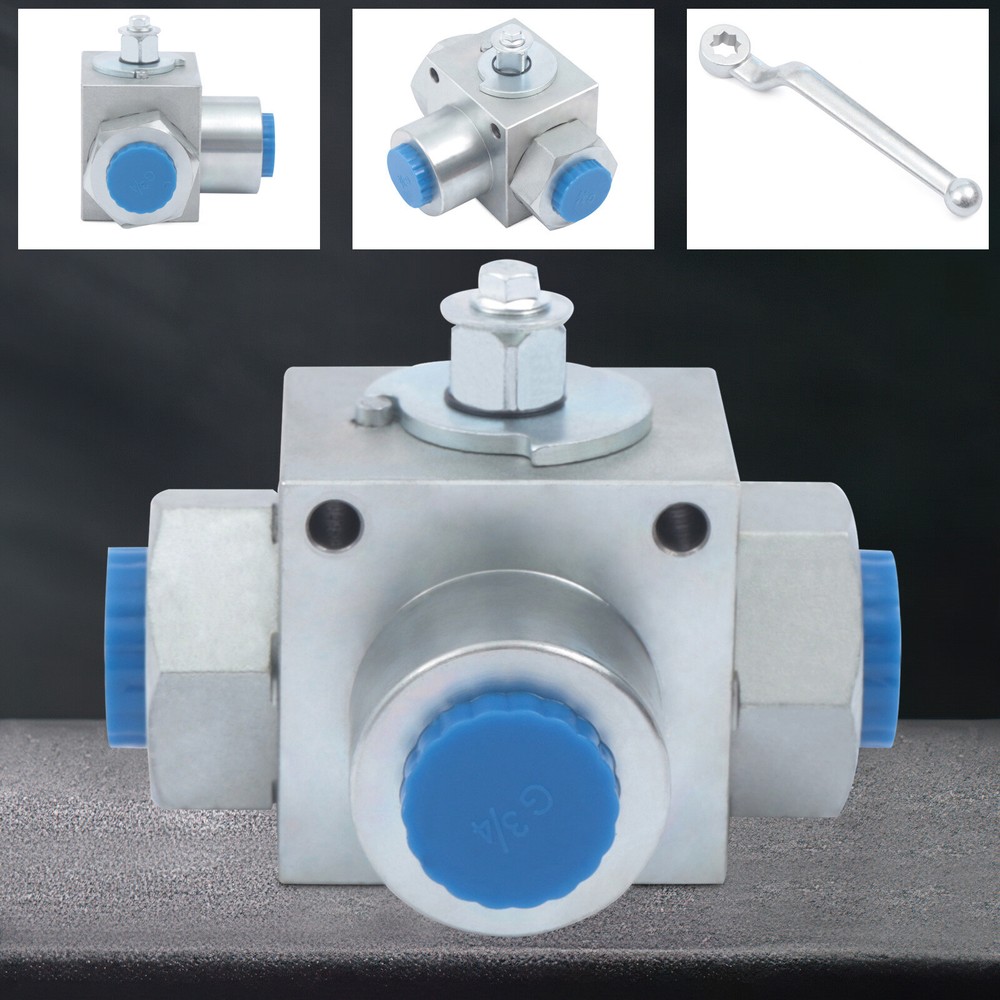 5800PSI 3-Way Female Hydraulic Manual Ball Valve 3/4 NPT KHB3K-NPT3/4-L