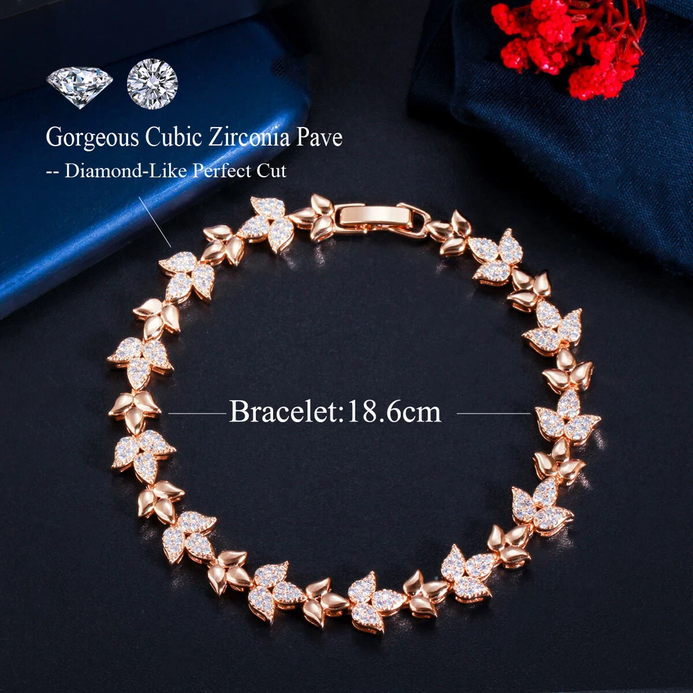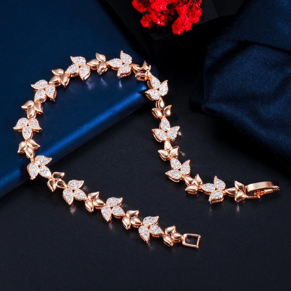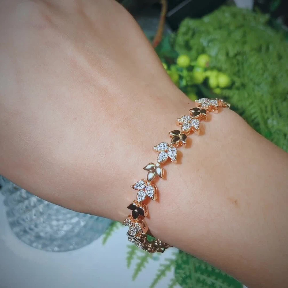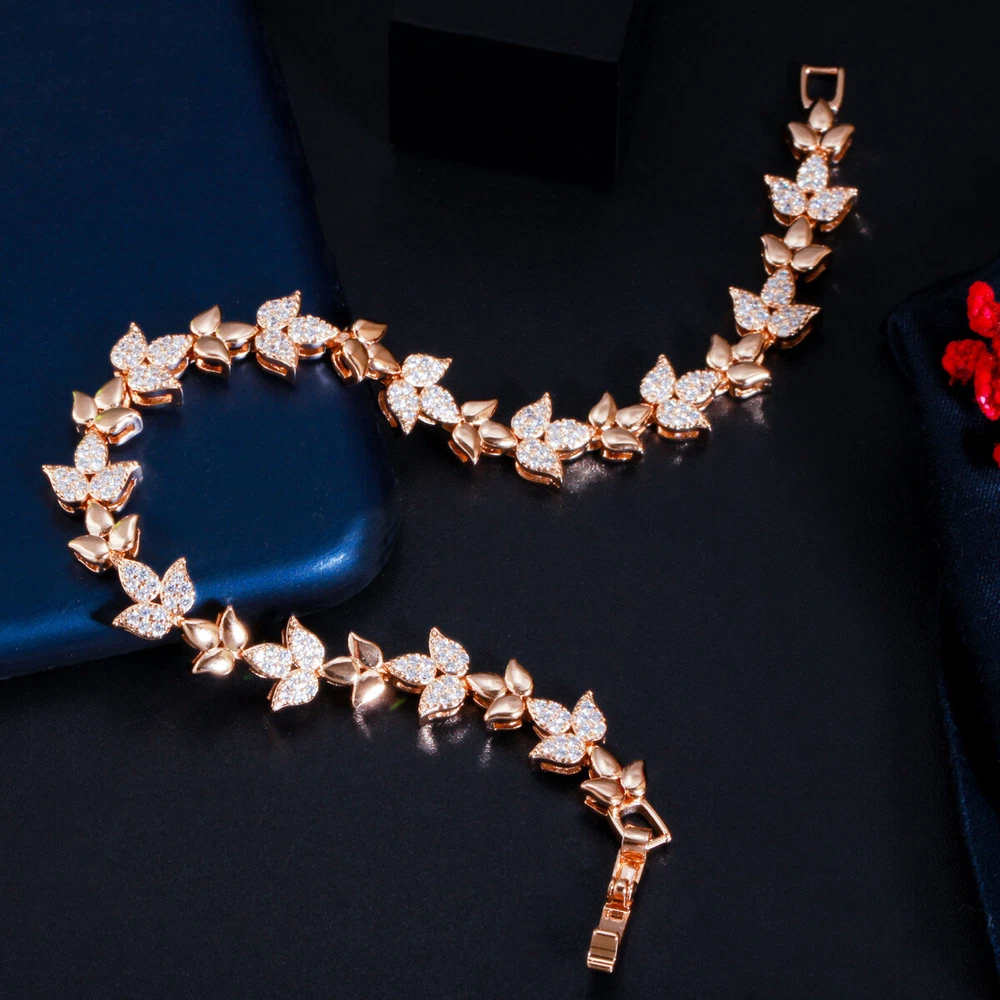 585 Rose Gold Plated Cubic Zirconia CZ Leaf Tennis Chain Link Bracelet Jewelry Specifications: 1. Condition: New 2. Material : Cubic Zirconia 3. Bracelet Size : 18.6 cm Features: 1. Cubic Zirconia High Quality Material - Diamond-like Brilliance , Prong Setting and CZ Stone are stable. 2. A Perfect Jewelry Gift for Women , Girls , Mother , Wife , Lover , Fiancee , Friends . 3. Suitable for Various Occasions: Ideal for Wedding, Prom, Pageant, Parties, Homecoming, Black Tie Formal Affairs, Holidays , Birthday , Christmas , Valentine's Day , Anniversary and Special Occasions. Package Includes: 1Pc Bracelet Payment Delivery details Terms of sales & Feedbacks About us & Contact us Our commitment Payment 1. We only ship item to your Ebay verified address . Please Make sure all address are the same 2.Please leave note in ebay when making the payment if you have any special request (colors/size). Delivery details We only send items to the registered eBay address.Items will be shipped within 2 business days from the date payment is received (not include public holiday and weekend) . As per eBay regulations, import duties, taxes, and customs charges are the buyer's responsibility. Please check with your country's customs office to determine what these additional costs may be prior to bidding or buying. Terms of sales & Feedbacks After-Sale Please contact us to request a return/replace/refund authorization .It will be best if you use ebay message to contact me. 1, Return and replacement request is available only the requests within 30 days after parcel received. 2, Returning the item as the same condition as received. Situation and solution Defectives ---Please contact us and provide a photo of the defective part. After situation confirmed,we will offer you refund/return/replacement according to the situation Not as Described ---Please contact us and provide a photo of the wrong part. After situation confirmed,we will offer you refund/return/replacement according to the situation Not Received ---Please undersatnding shipping on the way was out of our control ,because of the busy shipping season,holidays,bad weather or force majeure etc. It may be delay for days. But if it took too much time and not deliveried, Please message me, I will offer you solution for it. Feedbacks 1. If you are satisfied with our service, please leave us a + Good feedback and rate the details of the transaction (DSR) with a. . When you rate the shipping time part please take international transit into consideration.] Your recognition will make us more confident to develop business and serve you better. 2. Please contact us first if you have any problem with the items,we will solve it in time ! 3. Please do not leave Neutral or Negative Feedback before you contact us, Thanks For Your Business ! About us & Contact us Working time: Chinese time(Eastern eight zones):Monday to Friday ,9:00 am to 6:00 pm. We do not work on chinese legal holiday. Message reply: We will reply all messages within 24 hours of business time. Please contact us via ebay message, it was the best way for both you and us to solve problems. Any questions or anything you need, please feel free to contact us. Our commitment 1.Wholesale price will be offered to you if you need in bulk ! 2.About Size