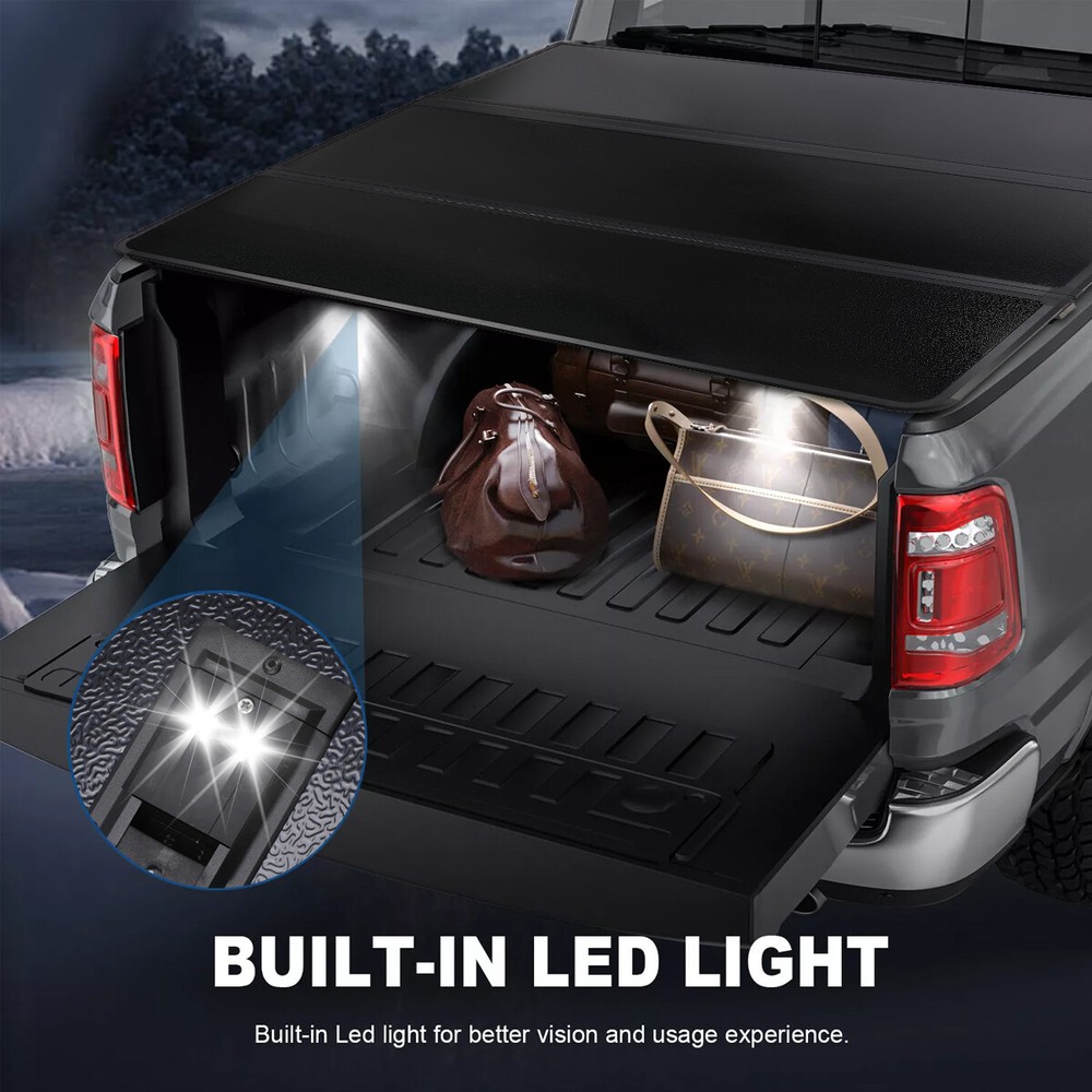 Home Payment Return Policy About us Contact us Details Feature: 1.Type: Hard Tri-fold Tonneau Cover 2.Material: Aluminum, Honeycomb Aluminum 3.Placement on Vehicle: Upper 4.Features: Tri-fold 5.Body Type: 5.8ft 6.Style: Hard Tri-Fold Item Includes: 1*Hard 3-Fold Tonneau Cover,with LED lights 1*All Mounting Hardware NOTE: Measure your bed size before you ordering! advertised bed length is often rounded from actual bed length, Deviation positive/negative 0.4inch. If you have questions or concerns about fitment, please contact us prior to purchase. After you have received your product in satisfactory condition, please leave us positive feedback. If there is a problem with your purchase, do not leave neutral or negative feedback: CONTACT US so that we can help you to resolve your issue to your satisfaction. Home Payment Shopping About Us Contact Us Feature: 1.Type: Hard Tri-fold Tonneau Cover 2.Material: Aluminum, Honeycomb Aluminum 3.Placement on Vehicle: Upper 4.Features: Tri-fold 5.Body Type: 5.8ft 6.Style: Hard Tri-Fold Item Includes: 1*Hard 3-Fold Tonneau Cover,with LED lights 1*All Mounting Hardware NOTE: Measure your bed size before you ordering! advertised bed length is often rounded from actual bed length, Deviation positive/negative 0.4inch. If you have questions or concerns about fitment, please contact us prior to purchase. After you have received your product in satisfactory condition, please leave us positive feedback. If there is a problem with your purchase, do not leave neutral or negative feedback: CONTACT US so that we can help you to resolve your issue to your satisfaction.