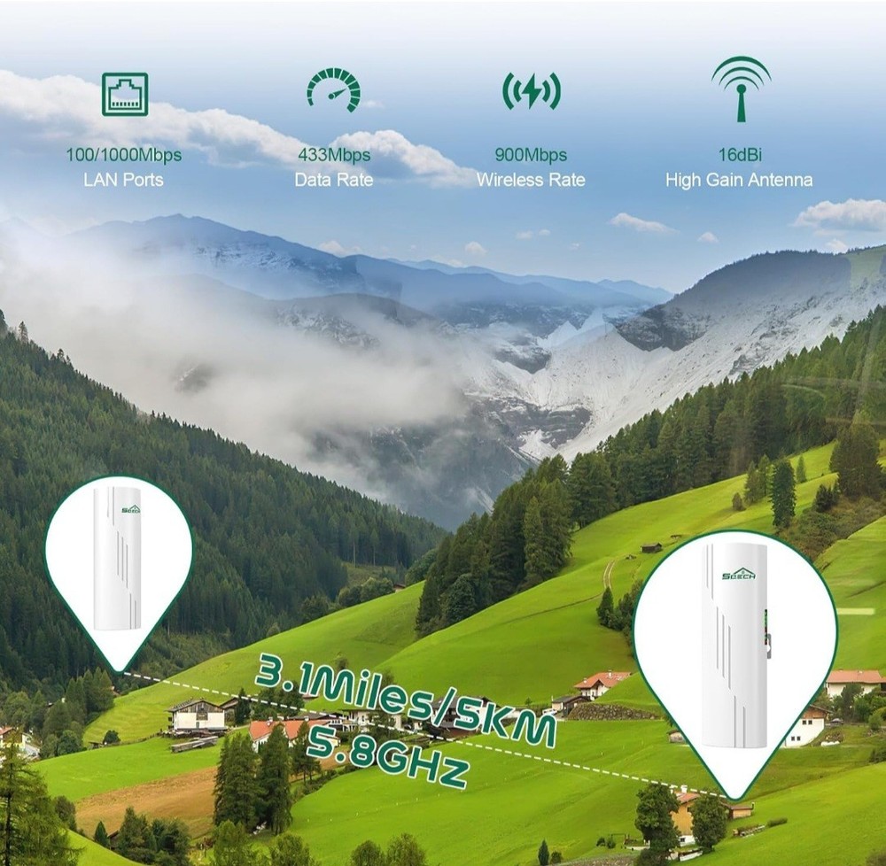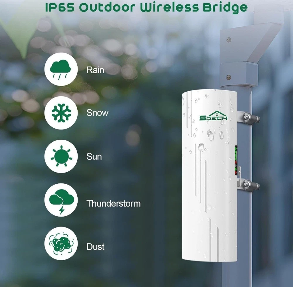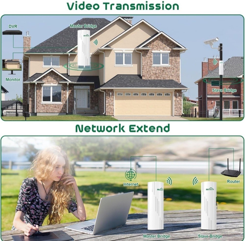 Brand new in the box. *PLEASE READ ENTIRE DESCRIPTION BELOW FOR SPECIFICATIONS AND IMPORTANT INFORMATION* We are including a "copy and paste" below of the details/specifications from their listing from this specific item. Please note we found this information online. We are selling this item on consignment, which means we only have one on hand, and no other colors are available. We are not a licensed reseller or warehouse. ----------------------------------------------- Frequency Band Class: Single-Band Wireless Communication Standard: 802.11n, 802.11a, 802.11ac Compatible Devices: Security Camera, Personal Computer 【100/1000Mbps LAN Ports】The CPE-S900 wireless bridge is equipped with two LAN ports of 100Mbps and 1000Mbps, both of which can adapt to RJ45 Ethernet ports and can also be used as POE ports for power supply, easy to install. This wifi bridge supports Dynamic MIMO Power Saving Mode (DMPS) and Automatic Power Saving Delivery (APSD), which can reduce device energy consumption, improve network transmission efficiency, and bring you better wifi services. 【5KM Long Distance Transmission】The wireless bridge has a built-in 16dBi high-gain directional antenna, with a transmission distance of up to 5KM, which greatly improves the coverage range and can be easily used in factories, farms, warehouses, parking lots, shops and other places. This point to point wireless bridge presets the WDS network mode, which can expand the coverage of the wireless signal and enhance the signal strength, and can be well applied to working modes such as PTP and PTMP. 【5.8GHz Wireless Technology】The point to point wireless bridge adopts 5.8GHz wireless technology, which has strong anti-interference ability, good stability, high scalability and flexibility, and can meet 8 non-overlapping channel deployment. The wireless transmission speed (wireless bridge A to B unit) of this wifi bridge can reach 900Mbps, and the maximum LAN network transmission speed (POE adapter to wireless bridge connection) is 433Mbps. 【One-key Bridge】The outdoor point to point wireless bridge has a digital tube display, and point-to-point pairing can be completed by dialing. The operation is simple, and there is no need to lay network cables, saving a lot of manpower and costs. This network bridge can be used to connect surveillance cameras through one-key pairing to expand the monitoring range, and can also extend the network to a second building or further away for data connection. 【IP65 Waterproof】The outdoor point to point wireless bridge adopts IP65 waterproof and dustproof design, high-quality ABS material, can withstand various harsh outdoor weather conditions, ensure stable wireless coverage, suitable for outdoor use. This internet bridge can be installed on a pole, and the included metal cable tie can firmly fix the bridge on the pole. It can also be installed on the wall, and the key slot on the back of the bridge can be used for wall mounting. 【Note】Please note! The operating voltage of the wireless bridge is 24V, please use the included POE adapter for power supply, do not use the POE switch directly for power supply, otherwise it may not work properly.