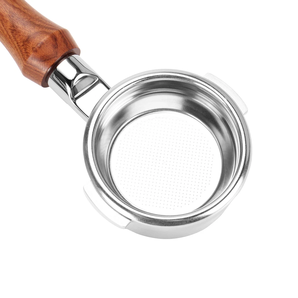 58mm Bottomless Portafilter For Breville BES900XL BES920XL BES920BSXL BES920CB XL Description: --FITS MODEL: Compatible with Breville Dual Boiler Espresso Machine BES920CBXL BES920BSXL BES920XL BES900XL , please confirm your espresso machine model before order. --BENEFITS OF USING A BOTTOMLESS PORTAFILTER: This naked bottomless portafilter gives an unobstructed view of your extraction , helping you to see if any mistakes right away , allow you to monitor your shots. It is a critical tool for a barista, and especially in dealing in a new bean or learning how to brew espresso. --CHECK WHETHER THE COFFEE GRINDER IS EVENLY DISTRIBUTED OR PRESS TAMPED: Without a spout obstructing your view, you can see the coffee pass through the puck and detect any non-uniformities that might be causing an uneven extraction. --CLEAR VIEW OF THE ESPRESSO'COLOR AND TEXTURE: The bottomless portafilter is that the clear view lets you examine your espresso’s color and texture as it brews. --EASY TO CLEAN: Cleaning a bottomless portafilter is also significantly easier than one with a regular bottom. Bottomless portafilters have fewer places for grounds to get stuck and it’s much easier to rinse them knowing you didn't leave any stragglers behind Specifiction: Type: 58mm Portafilter Material: Stainless Steel+ Solid Wood Handle Color: Silver Size: 58mm Package: 1 Pc 58mm Portafilter