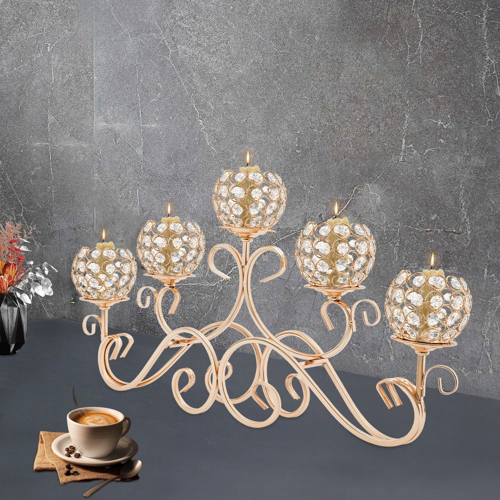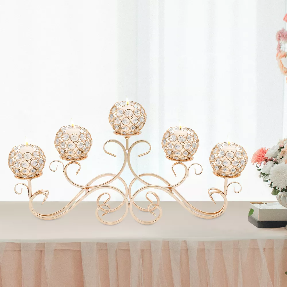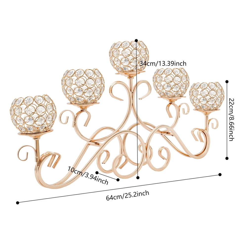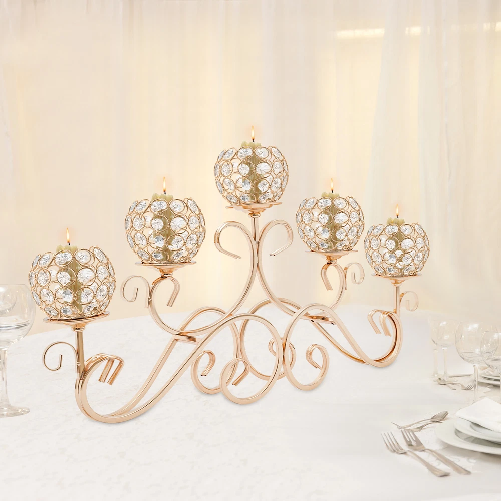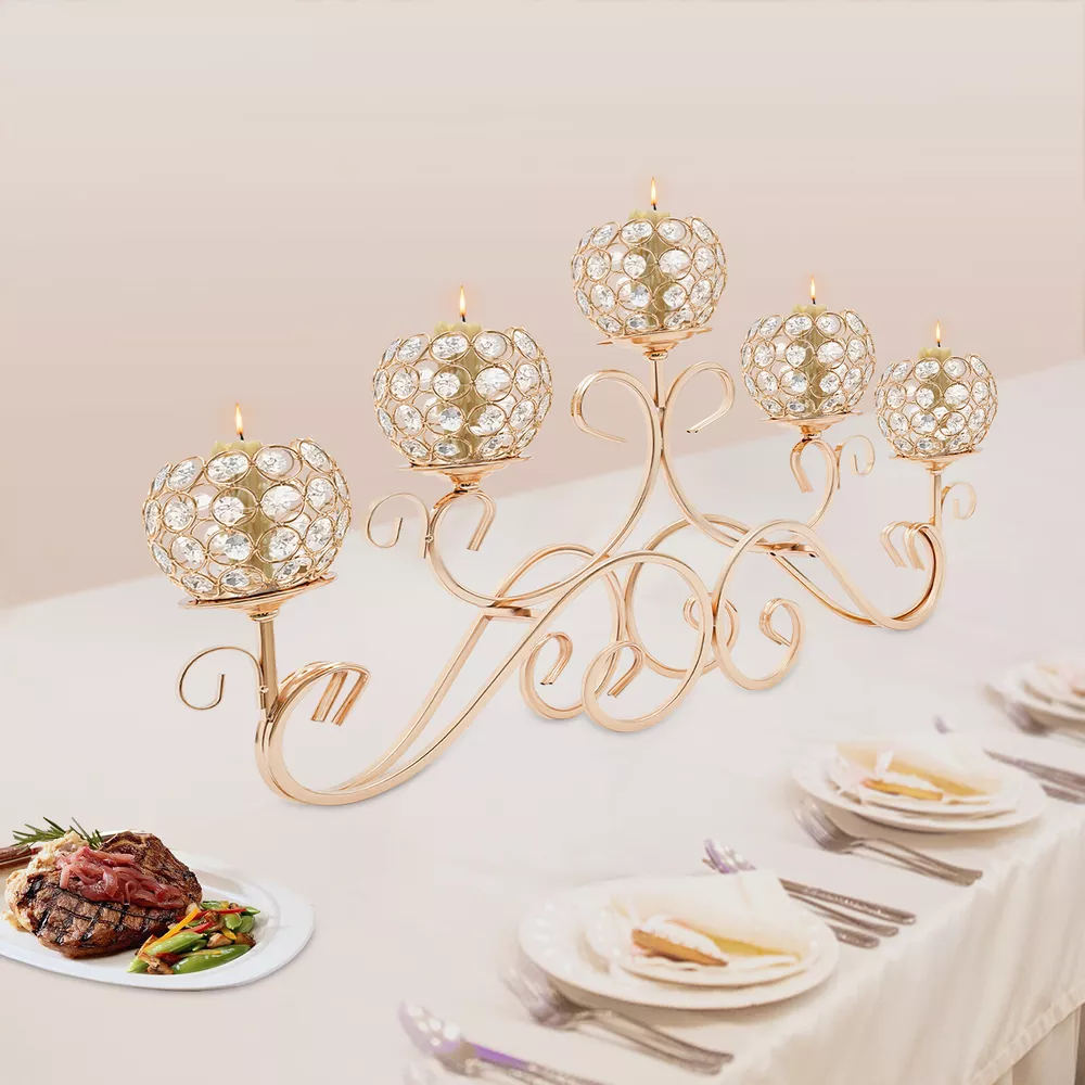 Description Our 5-arm crystal candle holder is a combination of home decor and romantic ambiance. On the occasion of a romantic dinner with your loved one, the candle emits soft and charming light through the crystal, creating a warm and romantic atmosphere for the dinner. Even if the candle is not lit, it is an artistic ornament in itself and can be placed on the porch, bookshelf, or dresser to show your taste. Whether it is a choice for your own home upgrade or a gift for relatives and friends, it is a good choice. Key Features Super Solid: It is made of iron and K9 crystal, treated with welding and electroplating processes to make it durable, wear-resistant, rust-resistant, and not easy to corrode and fade. Unique Appearance: It adopts a noble and elegant gold, each candlestick head i 5-Arm Crystal Drops Candelabra Wedding Table Centerpieces Candle Holders Decor Description Our 5-arm crystal candle holder is a combination of home decor and romantic ambiance. On the occasion of a romantic dinner with your loved one, the candle emits soft and charming light through the crystal, creating a warm and romantic atmosphere for the dinner. Even if the candle is not lit, it is an artistic ornament in itself and can be placed on the porch, bookshelf, or dresser to show your taste. Whether it is a choice for your own home upgrade or a gift for relatives and friends, it is a good choice. Key Features Super Solid: It is made of iron and K9 crystal, treated with welding and electroplating processes to make it durable, wear-resistant , rust-resistant, and not easy to corrode and fade. Unique Appearance: It adopts a noble and elegant gold, each candlestick head is decorated with crystal, which can reflect the charming light, like the twinkling stars in the night sky, instantly enhancing the luxury of space. Suitable Size: The reasonable size design enables it to become a focal decoration in the center of a large dining table, and can also be used as an ornament in the living room, bedroom, and other spaces, whether it is for daily use or special occasions can be easily fit. Candle Companion: Using it with candles (not included) will bring light to your space and give you a sense of security with its light in the event of a power outage. Simple Installation: Simple construction and complete accessories make it easy to assemble this product and enjoy the process. Easy to Clean: Thanks to its simple structure and smooth surface, you can wipe the dirt from it with a soft cloth (not included), which is convenient. Ideal Gift: Thanks to its practicality and beauty, you can give it to your friends as a holiday or housewarming gift! Buy with Confidence: We stand behind all our guests and look forward to assisting you with your purchase. It is our pleasure to answer your confusion and questions. The end of the story between us is not "we sell and you buy". Details Rounded Edges: They provide the product with soft lines and a better look, and can also protect your hands from scratching during use. Stable Base: The width is 3.94in , and the force area is large, which makes the product can be placed stable. Application It is suitable for flameless and safe electronic candles, and tea light candles with a diameter no larger than 1.5 inches . It can be applied to the home, such as the living room, bedroom, study, etc. It can also be used as a decoration item for hotels, restaurants, weddings, parties, celebrations, and other places. Specification Color: Gold Style: Modern Material: Iron, K9 Crystal Process: Welding, Electroplating Mount Type: Freestanding Assembly Required: Yes Applicable Candle Diameter: Within 3.8cm/ 1.5 in Applicable Candle Type: Flameless and Safe Electronic Candles, Tea Light Candles Overall Product Size: 64* 10* 34cm/25.2* 3.94* 13.39 in Lowest Head Height: 22cm/8.66 in Package Size: 58*10*28cm/ 22.83 * 3.94 * 11.02 in Gross Weight: 3.4 kg/ 7.5 lbs Net Weight: 2.7 kg/ 5.95 lbs Package Included 1* 5-arm Crystal Candle Holder 5* Screws Notes Please note that candles are not included in the package. Please use the candle holder on a flat area. Please keep it away from children and pets. Please allow the slight color difference caused by the shooting light and 1-3cm error due to manual measurement, and make sure you do not mind before ordering. Payment Delivery details Terms of sales About us Contact us Payment We accept ebay payment 。 Fees such as import duties, taxes are not included in the item price or shipping costs. These charges are the buyer's responsibility. Delivery details Shipping: 2-9 working days to: USA Terms of sales We maintain high standards of excellence and strive for hundred percent customer satisfaction. Feedback is very important to us. We hope that you contact us immediately before you give neutral or negative feedback, so that we can address your concerns. It is impossible to address issues if we do not know about them! About us Your satis faction is our ultimate goal. We work hard to earn your trust and future business. Our certified technicians have tested each item before shipping. The unit comes with 1 year limited warranty on all manufacturing defects. a) If you receive a defective item, you may return it or ask for a discount. Please contact us within 14 days after you receive the package. b) What you returned must be intact and in its original packaging as re? u. Customer is responsible for shipping costs of the returned item. c) We will cover the cost of shipping back t with the shipping rate indicated in the registration page. We will send you a new unit or refund the full payment you paid. Thank you. Contact us Business Hour Business Hour: Monday To Friday: 8:30 AM to 5:00 PM (Beijing China time) Due to time zones, our reply to your questions may not be immediately. But within above working time, we will reply your email within 24 hours. If it's non-workdays, please kindly be patient and wait till Monday. Please contact us with ebay message. Please feel free t