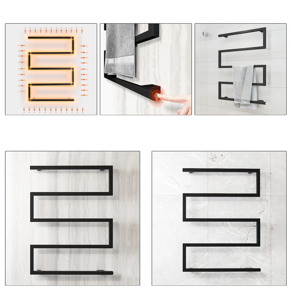 This heated towel rack is a game-changer! The 304 stainless steel and matte black finish look sleek while staying rust-free. The IP44 waterproof rating makes it safe in wet bathrooms, and the silicone alloy heating wire warms up fast without wasting energy. Towels stay toasty, and it even works for drying clothes. Super easy to install—totally worth it for cozy mornings!