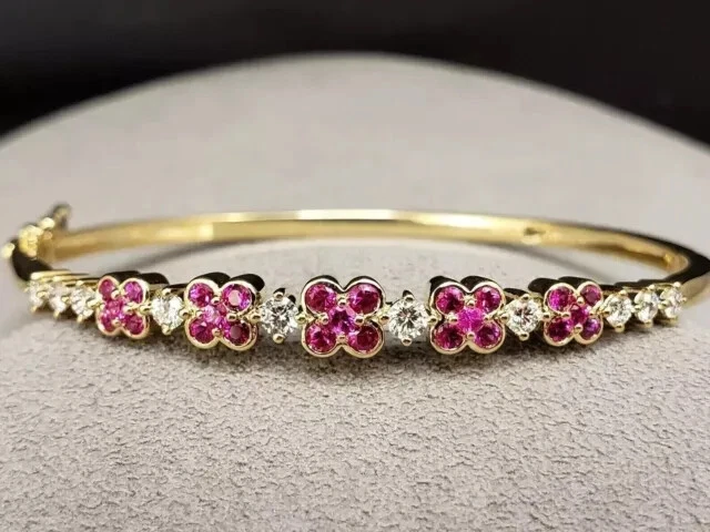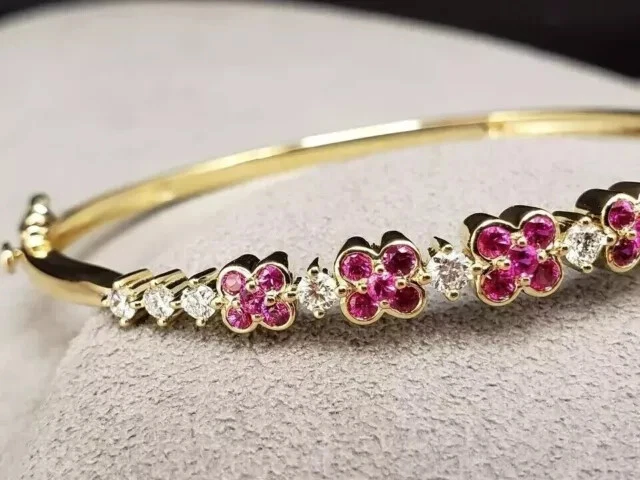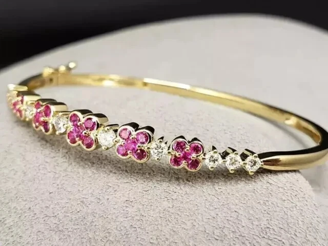 Main Stone: Ruby Gemstone Clarity Grade: NA Secondary Stone: Diamond Seller Warranty: Yes Charm Type: Snap Main Stone Length: As per picture Antique: No Main Stone Width: As per picture Era: Undated Occasion: Anniversary, Birthday, Christening, Christmas, Engagement, Graduation, Mother's Day, Valentine's Day, Wedding Style: Bangle Base Metal: Sterling Silver Features: Engraved Sizable: Yes Shape: Round Theme: Beauty Brand: karunas-76 Handmade: Yes Personalize: Yes Main Stone Shape: Round Number of Gemstones: NA Wholesale: Yes Signed: No Color: Yellow Setting Style: Prong Main Stone Treatment: Not Enhanced Cut Grade: Excellent Main Stone Depth: As per picture Chain Type: N/A Metal Purity: 925 Country/Region of Manufacture: India Country of Origin: India Vintage: No Main Stone Creation: Simulated Item Length: As per picture Main Stone Color: Pink Type: Bracelet Closure: Snap Material: Stone, Metal Customized: Yes Metal: Sterling Silver