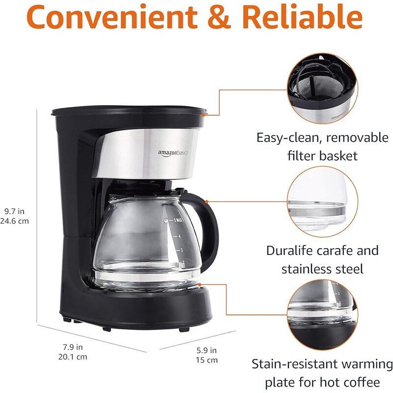You may also like Heavy Duty Office Chair Cylinder Replacement Class 4 Hydraulic Piston Universal 35.63 USD Free shipping Broadband Mesh Quad Camp Chair Cooling Mesh Back W/ Adjustable Arms Red One Size 43.83 USD Free shipping Humidifier Suitable Indoor Use Portable Suitable Home Offices 3D Flame Effect US 71.48 USD Free shipping Handheld Steam Cleaner Multi-Surface 9 Accessories Pressurized 1050W Deep Clean 51.98 USD Free shipping Wall Mounted Clothes Drying Rack Space Saving Retractable Easy Install Closets 49.28 USD Free shipping Nightstand Side Table W/ Charging Station 2 Drawer Storage Bedroom Home Black US 51.98 USD Free shipping Cold Press Juicer 2 Speed Easy Clean Portable Bottles Quiet Motor Fruits Veggies 123.49 USD Free shipping Extendable Microwave Stand Storage Rack W/ Spice Holder Adjustable Hooks Black 49.44 USD Free shipping Electric Salt Pepper Grinder Set Rechargeable LED Display One-Hand Operation New 51.98 USD Free shipping Adjustable Starlink Roof Ridge Mount Kit Gen 2 Non-Drilling Antenna Installation 90.97 USD Free shipping Luxury Diatomaceous Earth Bath Mat Super Absorbent Quick Dry Non-Slip Easy Clean 49.38 USD Free shipping Washable 5x7 Vintage Area Rug Non Slip Carpet Living Room Bedroom Decor Braided 64.98 USD Free shipping About this item CONVENIENT DESIGN: This small coffee maker is convenient for homes, apartments, and offices due to its 5 cup capacity, fitting easily into compact spaces SIMPLE OPERATION: Brew with ease using this drip coffee maker by pressing the ON/OFF switch. The indicator light clearly shows when the coffee maker is active for added convenience KEEP YOUR COFFEE HOT: This 5-Cup coffee maker has a warming plate that keeps your brew warm until you turn it off, without scorching OVERHEAT PROTECTION: This stainless steel coffee machine prevents stops brewing when water is low or temperature exceeds the rated temperature, helping prevent overheating and dry-boiling EASY MAINTENANCE: The reusable filter basket is removable for quick cleanup, reducing waste and making it easy to keep your coffee maker in top condition Color: Black and Stainless Steel Product Dimensions: 5. 91"D x 7. 87"W x 9. 69"H Special Feature: Reusable Filter, Keep Warm, Over-Heat Protection, Compact Design, Easy Operation & Maintenance Coffee Maker Type: Drip Coffee Machine You may also like 23 Gal Black Plastic Footlocker W/Wheels Durable Portable Storage Bins Rectangle 37.03 USD Free shipping Giddy Up Electric Grill Brush Rechargeable Heavy Duty Stainless Steel Bristles 88.35 USD Free shipping 24 Inch Mountain Bike W/ Front Suspension 18 Speed Teens Girls Adventure New 144.31 USD Free shipping 3.2 Cu Ft Retro Dry Erase Compact Fridge, (EFR331 248.85 USD Free shipping Tiger 9' Spinning Surf Combo Fishing Rod Reel W/ Bonus Pompano Rig Setup New 43.84 USD Free shipping Seat Mount Clamp-on Swivel Fit Depths 7.5-18 In Hole Pattern Installation Boats 67.71 USD Free shipping 4-Bike Hitch Mounted Rack Carrier Road Trips Camping Adjustable Tie-Down System 281.25 USD Free shipping 16-Piece Unbreakable Plastic Dinnerware Set Lightweight Outdoor Camping Dishes 30.98 USD Free shipping Max X 6'6" Spinning Rod Reel Combo Graphite 24 Ton Smooth Action Fishing Gear US 77.29 USD Free shipping All Terrain 4 Ply Tubeless Tire Lawn Garden 18 in 20X8 00-10 Self Cleaning Tread 44.37 USD Free shipping Adjustable Floor Lamp Bendable Neck Approximates Natural Light Multi-Directional 60.51 USD Free shipping Meringue Powder Egg White Substitute Baking Royal Icing Meringues Kosher 4oz New 24.0 USD Free shipping