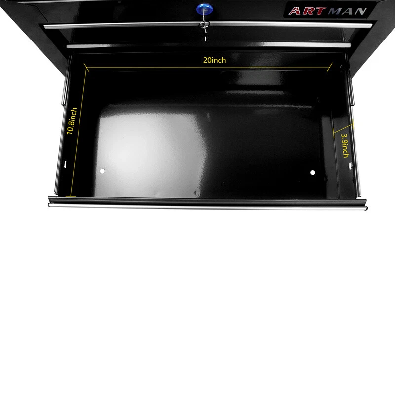 5 Drawers Rolling Tool Chest Tool Storage Cabinet Garage Cart Workshop w/ Wheels About this item : The ARTMAN tool trolley is equipped with a total of 5 drawers . The tool box is also lockable and can be used as a removable, attachable and mobile case attachment The opening and closing of the drawers of the tool cabinet is very gentle thanks to the ball-bearing drawers. The robust and powder-coated steel construction is used for high wear resistance. This assembly trolley has 4 steering wheels, 2 of which with parking brakes, so you can move the trolley freely in the garage, but also stop in one place Specification: Color: RED/BLACK/BLUE Metrial: Cold Rolled Steel Surface Finish: Powder Coating Casters: 4" Casters (2PCS with brake and 2PCS without brake) Size : L616mm(24.25inch)*W330mm(13inch)*H745mm(29.33inch) 5 drawers Dimension L511mm(20.11inch)*W305mm(12inch)*H85mm(3.3inch) Net Weight: 22KGS/48.5LBS