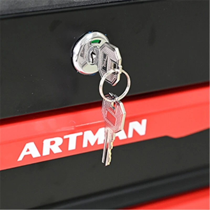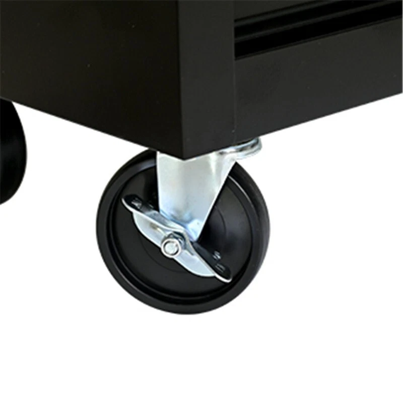 Features and Details: 5 Drawers mutifunctional tool cart with wheels. The tool box is also lockable and can be used as a removable, attachable and mobile case The opening and closing of the drawers of the tool cabinet is very gentle thanks to the ball-bearing drawers The robust and powder-coated steel construction is used for high wear resistance. This assembly trolley has 4 steering wheels, 2 of which with parking brakes, so you can move the trolley freely in the garage, but also stop in one place This is a set of cabinets, can use a round hook at the bottom of the table to connect another tool car, thus forming a combination. Specification: Material: Cold Rolled Steel Surface Finish : Powder Coating Casters: 4" Casters (2PCS with brake and 2PCS without brake) Product Size (with wheels ): 20.63*12.99*30.59INCH Product Size: 20.63*12.99*25.83INCH Package Size: 23.31*15.35*28.66INCH Color: Black+Red Net Weight: 48.72LBS