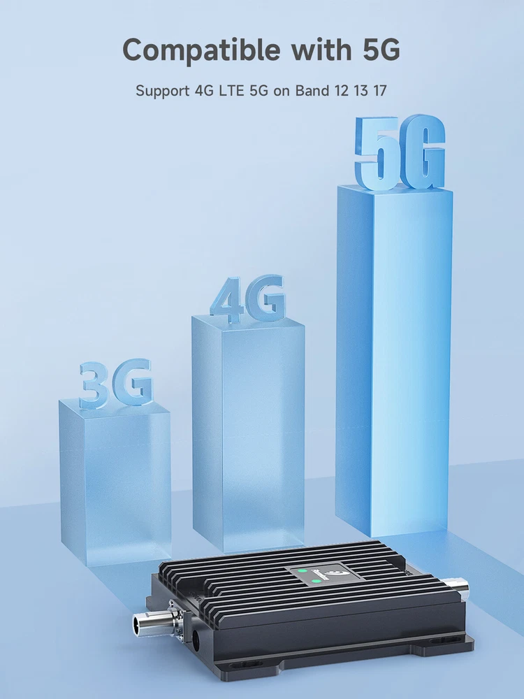 5G 4G LTE Cell Phone Signal Booster Band 12/13/17/5/2/25/4 Car RV Truck Repeater Before purchase, please confirm your signal frequence If your phone is Android system, you can download an App called "LTE Discovery" to confirm the band and frequency. If your phone is Apple system, please dial the NO. *3001#12345#* then click "Serving Cell Info" to check frequency and band. Note:This Single Band Repeater kit is designed for AT&T Verizon 700/850/1700/1900MHz Band 13/12/17/4/66/2/5(5-band)and 700MHz band 12/17/13(dual band); it includes everything you need to enhance cell phone signal coverage in your location – including indoor and outdoor antennas and all hardware for installation. 【5G Compatible 】 - Boosts 4G LTE & 5G signals for multiple users simultaneously, so everyone in your vehicle will enjoy clear calls, better voice quality, faster uploads and downloads to stream videos smoothly, even get better hotspot capability in the most remote areas. 【Compatible with All US Carriers】 - The booster supports all U.S. carriers signal for Verizon, AT&T, T-mobile, US Cellular, Straight Talk, Cricket etc on band 2 4 66 5 12 13 and 17. 【Advanced Features & Smart Device】 - The booster uses AGC (Automatic Gain Control) function, which can intelligently detect the existing signal strength, and adjust itself for best performance, then reflect its working condition through LED indicator. Allow you to enjoy your trip without having to worry about poor signal. 【Easy to Setup】 - The fashion car booster kit comes with strong magnetic outdoor omnidirectional antenna. Without drill holes installation signal booster perfect for your car, RV, truck, camper van, travel trailer and other vehicles. Don't need to worry about the location of the signal tower, enjoying your journey with confidence. 【Guarantee】 - FCC Certified, 30-day money-back guarantee, 3-month free replacement, 3-year manufacturer warranty. FCC Certified. FAQ Delivery details Terms of sales Payment Contact us FAQ We design, develop, manufacture, market and service signal amplifiers systems for cell phone, with our innovative, dedicated and experienced team. We can provide high quality products and solutions that you want from your amplifier suppliers. Welcome to buy. FAQ 1. What does a mobile phone signal booster include? How does it work? Can I use the signal booster when the outdoor signal has 0 bar? 1) A signal booster kit mainly includes a signal amplifier ,an outdoor antenna(with a 10 meters coaxial cable ), and an internal antenna(with a 5 meters coaxial cable) etc. 2) Outdoor antenna receives the signal from the base station to transmit to the repeater, the signal is boosted around the place via the indoor antenna to improve the call; It is suitable for transmitting the voice and data of mobile phone, tablet PC, or the Internet. 3) Signal booster can only boost the mobile phone network signal, but does not help to generate any signal. For example, if your outside signal has 0-1 bar, it can not work or bring you any signal. 2. My outside signal only has 1 bar, the booster can bring me signal? The signal of the mobile phone should be at least 2 bars in the location where the outdoor antenna is installed, and the strength of the mobile phone signal should be greater than -110dB 3. What do I need to know before ordering a signal booster? Before purchase, please confirm your signal frequency If your phone is Android system, you can download an App called "LTE Discovery" to confirm the band and frequency. If your phone is Apple system, please dial the NO. *3001#12345#* then click "Serving Cell Info" to check frequency and band. 4. I do not know my network frequency? How can I know it? iPhone: Dial *3001#12345#* Click Serving Cell Info/LTE Click Freq Band Indicator/LTE Neighbor Info Android Phones: Download and install the app: LTE Discovery/ SignalCheck Lite/ Network Cell Info 5. How can we do if we order the wrong frequency booster? You can contact the customer service to get the solution. 6. Why is my signal still same after installing the booster kit? A. The booster frequency is not suitable for your mobile phone network frequency B. The booster or the antenna is broken down C.If there is no work after installation, please contact us 7. Mobile phone has full signal with booster, but can not make call or send message? Maybe it is the signal input and signal output interfere with each other. You need make sure: There is separate wall between indoor and outdoor antenna, so that the two antenna signal do not interfere with each other. Please try to change the direction of outdoor antenna. 8. What square meters signal will the booster cover? According to the house construction, material, outside signal, etc., it can boost signal as much as 2000 square meters. More information, you can contact the customer service. 9. About receiving the incomplete parcel? Please contact the customer service to solve, do not leave the negative feedback, open return or case request. 10. Why can I get a signal on my mobile phone outside but not inside of house? Houses are built with much reinforced concrete, roof is with heat shield , or the outside walls are backed with foil. That metal which is used in many construction materials or the metal construction acts as a total barrier for mobile phone signals. In this case, the signal booster can work and play an important role. 11. What is the difference of different outdoor antennas? For area with good outdoor signal strength, you will need the standard Omni directional antenna which does not need to be pointed at the local mast asit receives and broadcasts the signal in all directions, such as the omni tube antenna ,the fiber glass antenna, etc. If the outdoor signal is weak, you need the outdoor directional antenna which should be pointed to the base station to get signal, such as the outdoor yagi antenna, the outdoor LPDA antenna, etc. 12. What is the difference of different indoor antennas? The