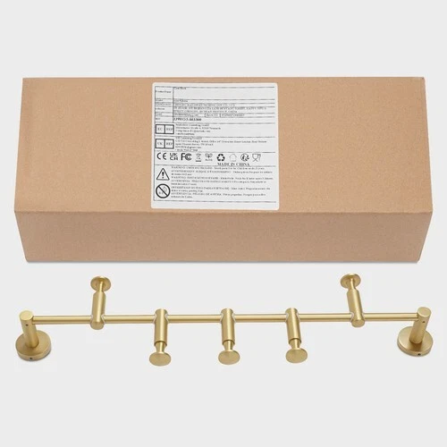 Specification Material: Brass Process: Anti-oxidation Color: Brassy Assembly Required: Yes Mounting Type: Wall-mounted Hook Rotatable Degree: 180° Hook Spacing Adjustable: Yes Total Load Capacity: About 20kg/44.09lbs Package Size: 64*12.5*9cm/25.2*4.92*3.54in Rack Size(H*L): 61*7cm/24.02*2.76in Hook Size(H*L): 3*8.5cm/1.18*3.35in Gross Weight: 1.2kg/2.65lbs Net Weight: 1.14kg/2.51lbs Package Included 1* Coat Rack Coat Rack with 5 Adjustable Hooks Wall Mounted Vertical Coat Hat Umbrella Hanger Description This coat rack combines functionality and design in a thoughtful way, offering a strong mix of practicality and style. Its sturdy construction ensures stability, while features like adjustable and rotatable hooks provide great flexibility for organizing items. The sleek, modern aesthetic fits well into different decor styles, making it both a useful storage solution and a stylish addition to your space. Key Features Build to Last: Made of premium brass with an anti-oxidation process, this product is wear-resistant, corrosion-resistant, and not easy to deform, ensuring a long service life. Powerful Function: Equipped with 5 hooks, it provides sufficient hanging space. Whether it's for coats, hats, bags, or other accessories, there's enough room to organize and store multiple items, helping to keep spaces tidy. Stable Structure: With 2 solid bases and premium materials, this product can handle a weight of about 44.09 lbs, making it suitable for relatively heavy clothing and reducing the risk of bending or breaking. Flexible Use: The 180° rotating hook provides great adaptability, allowing you to adjust angles for easier hanging and access. The spacing between hooks can also be adjusted, making it easier for you to hang items of different sizes and lengths and optimizing space layout. Space-Saving : By mounting directly to the wall, it makes use of wall space. Whether in a compact apartment or dorm room, it doesn't take up any floor space, making it a practical and space-efficient storage solution for home or personal space. Open Design : It allows you to effortlessly reach for your items and offers good ventilation to prevent odor and keeps the surrounding space pleasant. Aesthetically Pleasing : The elegant color and unique structure design give it a sleek and modern look that can blend well with different room decors in a home or storage area. Easy to Clean: Just a simple wipe can remove dirt and stains on the smooth surface, which is time-saving and effort-saving in maintenance. Easy Assembly : With its simple structure, you can quickly install the product and put it into use, which is convenient. Buy with Confidence: We stand behind all our guests and look forward to assisting you with your purchase. It is our pleasure to answer your confusion and questions. Details Smooth Edges: The rounded and smooth edges not only add to the aesthetics of the product but also improve the safety of use. Practical Washers: They can enhance the friction between the hooks and the rod, preventing them from slipping. Application It is suitable for entryways, bedrooms, cloakrooms, hallways, dressing rooms, etc. It can hold coats, hats, scarves, bags, umbrellas, belts, robes, and other accessories. How to Install Confirm the installation location and mark it with a marker (not included). Remove the fixed base of the product. Mark the drilling positions with a marker (not included). Drill holes at the perforation positions with an electric drill (not included). Knock in the expansion screws and trim the protruding silicone head (all not included). Align the holes and tighten the screws of the fixed base. Match the base with the fixed base and tighten the screws to fix the product. Specification Material: Brass Process: Anti-oxidation Color: Brassy Assembly Required: Yes Mounting Type: Wall-mounted Hook Rotatable Degree: 180° Hook Spacing Adjustable: Yes Total Load Capacity: About 20kg/44.09lbs Package Size: 64*12.5*9cm/25.2*4.92*3.54in Rack Size(H*L): 61*7cm/24.02*2.76in Hook Size(H*L): 3*8.5cm/1.18*3.35in Gross Weight: 1.2kg/2.65lbs Net Weight: 1.14kg/2.51lbs Package Included 1* Coat Rack Notes Please check the product size carefully before purchasing. Please note that clothing and other items are not included. Please allow the slight color difference caused by the shooting light and the 1-3 cm error due to manual measurement, and make sure you do not mind before ordering. Payment Delivery details Terms of sales About us Contact us Payment We accept ebay payment 。 Fees such as import duties, taxes are not included in the item price or shipping costs. These charges are the buyer's responsibility. Delivery details Shipping: 2-9 working days to: USA Terms of sales We maintain high standards of excellence and strive for hundred percent customer satisfaction. Feedback is very important to us. We hope that you contact us immediately before you give neutral or negative feedback, so that we can address your concerns. It is impossible to address issues if we do not know about them! About us Your satis faction is our ultimate goal. We work hard to earn your trust and future business. Our certified technicians have tested each item before shipping. The unit comes with 1 year limited warranty on all manufacturing defects. a) If you receive a defective item, you may return it or ask for a discount. Please contact us within 14 days after you receive the package. b) What you returned must be intact and in its original packaging as re? u. Customer is responsible for shipping costs of the returned item. c) We will cover the cost of shipping back t with the shipping rate indicated in the registration page. We will send you a new unit or refund the full payment you paid. Thank you. Contact us Business Hour Business Hour: Monday To Friday: 8:30 AM to 5:00 PM (Beijing China time) Due to time zones, our reply to your questions may not be immediately. But within above working time, we will reply your email within 24 hours. I