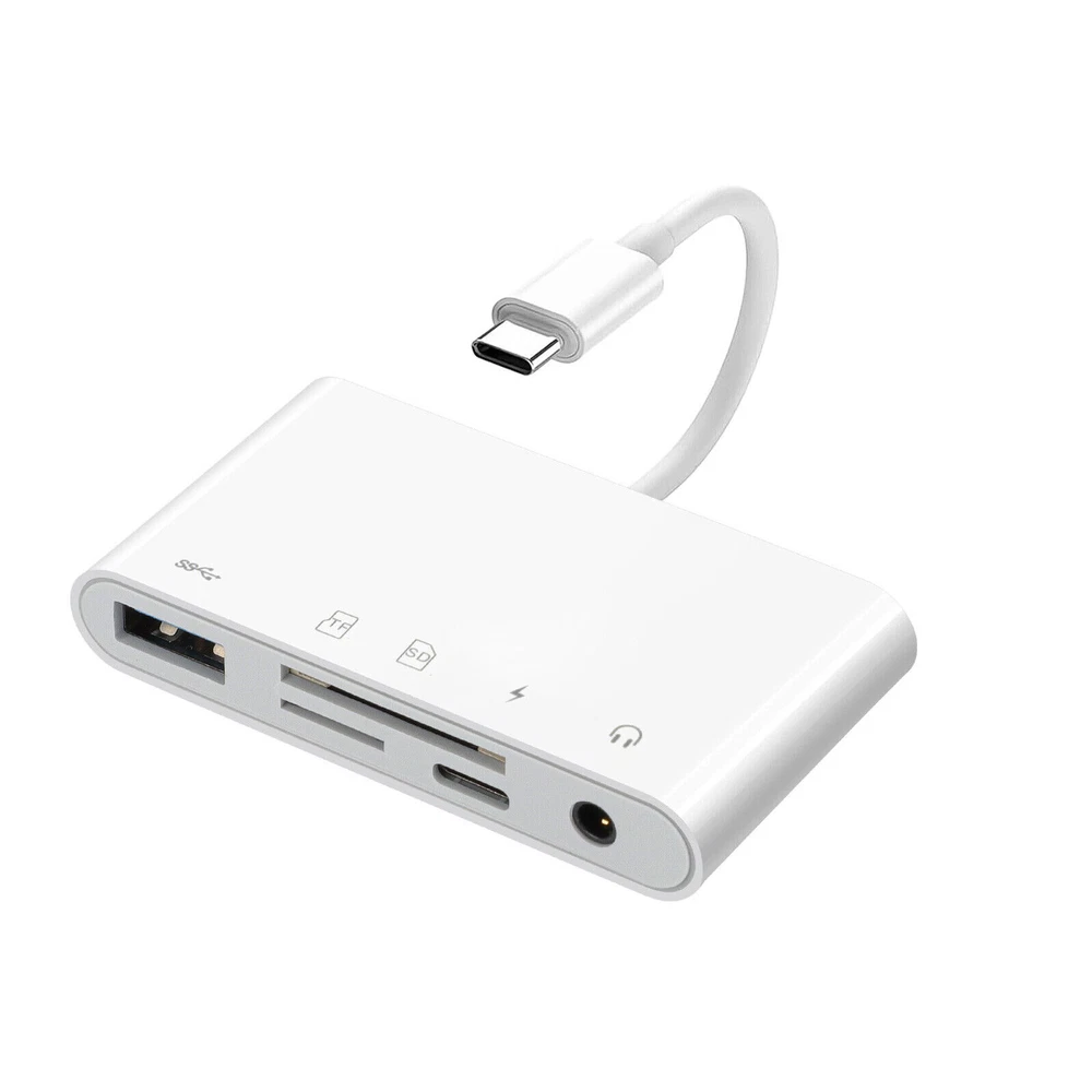 Product Description Features: TF/SD card reader upgraded multi-function, compact and portable design, more powerful and easy to carry. This USB C SD card reader no need to download Apps, plug and play. High-Speed Transfer with the speed of 14MB to 16MB/s. Supports standard photo formats including JPEG and RAW. With this micro SD card adapter, you can connect USB peripherals such as USB flash disk, mouse, keyboard, card reader, camera, printer, hard drive and many other USB connected devices. Specifications: Type: USB-C 5 in 1 Hub Adapter Converter Color: White Material: Plastic Compatible with: USB-C Device Ports: 1 x SD Card Port, 1x Micro SD/T-Flash Card Port, 1 x USB Port(USB 3.0), 1 x USB-C Charging Port, 1 x 3.5mm Audio Port Package include: 1 x 5 in 1 USB-C Card Reader Shipping Returns Contact Us Payment 1. Items sent from US warehouse. 2. Receiving time = Processing time + Shipping time. 3. Pro cessing Time: Around 1-2 business Days. 4. Shipping Time: 3-5 business day. it may have a little delay during some holiday (such as Christmas), any problem, please feel free to contact. 1. 30 days warranty from the purchased date. Please contact us via email before returning the defective item. 2. Our warranty does not extended to any product that are physically damaged or that are not under normal operating conditions as result of misuse or improper installation on the buyer/user's part. 3. Return items should include the original packaging and all accessories. buyers MUST contact us for the returning address. 4. In all cases, buyers pay shipping fees at their own cost to return products for exchange or refund. We will be responsible for the postage of replacements. Refund will be made upon receipt of the returned item. If you have any question, please e-mail us immediately, we will reply you as quickly as possible. We care about our valued customers, and will always try to help you. We accept all verified payment from eBay. Shipping 1. Items sent from US warehouse. 2. Receiving time = Processing time + Shipping time. 3. Pro cessing Time: Around 1-2 business Days. 4. Shipping Time: 3-5 business day. it may have a little delay during some holiday (such as Christmas), any problem, please feel free to contact. Returns 1. 30 days warranty from the purchased date. Please contact us via email before returning the defective item. 2. Our warranty does not extended to any product that are physically damaged or that are not under normal operating conditions as result of misuse or improper installation on the buyer/user's part. 3. Return items should include the original packaging and all accessories. buyers MUST contact us for the returning address. 4. In all cases, buyers pay shipping fees at their own cost to return products for exchange or refund. We will be responsible for the postage of replacements. Refund will be made upon receipt of the returned item. Contact Us If you have any question, please e-mail us immediately, we will reply you as quickly as possible. We care about our valued customers, and will always try to help you. Payment We accept all verified payment from eBay. You may also like 5PCS DK-21 Eye Cup For Nikon D70s/80/D90/D40/D50/D100/D200/D300/D7000 Camera 13.19 USD 12PCS/Set Artist Paint Brushes Acrylic Oil Watercolour Painting Crafts Art Model 7.69 USD 3.69 USD 7Pack Lawn Mower Service Kit for Briggs Stratton Classic and Sprint Engines 7.69 USD 3.69 USD 5Pcs Steel Watch Stem Crown Kit For MIYOTA 8200/8205/8215/821A Movement P780 9.77 USD 1:100 Lockheed AC-130U Ghost Aerial Gunship Aircraft Plane Paper Unassembled Kit 16.49 USD Desktop Charger For Baofeng UV-XR UV-9R Plus A58 BF-9700 Walkie Talkie Radio 16.93 USD powered by