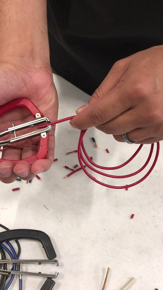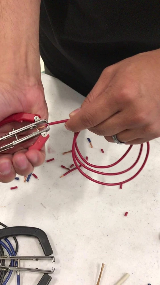 For low voltage soft copper and electrical wire only Cut wire with one end; strip wire with the other end; Compact head for working in confined areas Stripper self-adjusts to wire size Stripping Capacity: 26 to 14 AWG wire; Cutting Capacity: 14 AWG stranded wire Jaws and stripper made of surgical steel This patented tool cuts wire with one end and strips wire with the other end. The stripper self-adjusts to wire size as one prong holds while the other catches and strips wire in one quick motion. It is spring loaded to reduce fatigue and is designed for hundreds for wire strips. The cutter makes low profile full-flush cut. Whether stripping wire or cutting wire, it fits the hand nicely and easily. This 5" wire stripper and wire cutter is compact and light weight and makes the job really easy. easy These combination stripper / cutter is an electrician's choice.