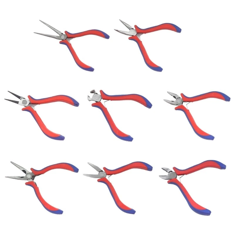 Features: brand new and high quality Made from drop high-carbon steel with overall heat treatments for hardness and long-lasting Hardened cutting edges allows for sharpness and easy cutting. These mini pliers are equipped with double spring shrapnel to keep the small pliers open automatically. And the leverage design saves you lot of effort to hold and squeeze the handles. The mini pliers features TPR handle that offer a comfortable grip while using. This soft rubber handle can prevent fatigue even for long-time work. Perfect for electronic repair, factory processing, machine maintenance, home appliance repair, jewelry making and DIY projects. Light in weight, small in size, convenient for you to store and manage, will not take up too much space Specifications: Material:Carbon Steel Type:Needle Nose Pliers/Curved-Nose Pliers/Round Nose Pliers/Top Cutting Pliers/Wire Cutters/Needle Nose Pliers/Flat Nose Pliers Nose Pliers Needle Nose Pliers:Approx.155mm/6.1inches Curved-Nose Pliers:Approx.120mm/4.72inches Round Nose Pliers:Approx.125mm/4.92inches Top Cutting Pliers:Approx.105mm/4.13inches Wire Cutters:Approx.120mm/4.72inches Needle Nose Pliers::Approx.125mm/4.92inches Flat Nose Pliers:Approx.120mm/4.72inches Nose Pliers:Approx.110mm/4.33inches Package Includes: 1x Mini Plier note: 1.Please allow 1-2cm errors due to manual measurement, make sure that you do not mind before you order. 2.Due to the difference between different monitors, the picture may not reflect the actual color of the item.