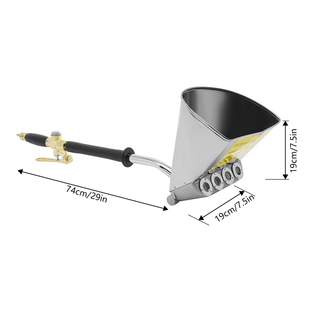 Application It Is Used to Spray the Top of the Wall. It Can Be Used in Construction, Renovation Industry, Factories, Homes, Etc. It Is Suitable for Spraying Cement, Mortar, Concrete, Etc. Specification Material: Aluminum, 201 Stainless Steel Process: Electroplating Color: Silver, Black Assembly Required: Yes Style: Modern Working Pressure: 8-12bar Air Inlet: 3/8'' Capacity: 5l/1.32gal Recommended Air Compressor Power: 3hp Product Size: 74*19*19cm/29*7.5*7.5in Package Size: 34*24*20cm/13.39*9.45*7.87in Gross Weight: 2kg/4.41lbs Net Weight: 1.8kg/3.97llbs Package Included 1* Cement Sprayer 1* English Manual Other Accessories for Assembly 5 L Cement Mortar Concrete Air Stucco Plastering Sprayer Hopper Paint Wall Gun 5 L Cement Mortar Concrete Air Stucco Plastering Sprayer Hopper Paint Wall Gun Application It Is Used to Spray the Top of the Wall. It Can Be Used in Construction, Renovation Industry, Factories, Homes, Etc. It Is Suitable for Spraying Cement, Mortar, Concrete, Etc. Specification Material: Aluminum, 201 Stainless Steel Process: Electroplating Color: Silver, Black Assembly Required: Yes Style: Modern Working Pressure: 8-12bar Air Inlet: 3/8'' Capacity: 5l/1.32gal Recommended Air Compressor Power: 3hp Product Size: 74*19*19cm/29*7.5*7.5in Package Size: 34*24*20cm/13.39*9.45*7.87in Gross Weight: 2kg/4.41lbs Net Weight: 1.8kg/3.97llbs Package Included 1* Cement Sprayer 1* English Manual Other Accessories for Assembly Description This Cement Sprayer Is a Powerful Assistant in Construction, Decoration, and Other Industries. It Transcends the Limitations of Traditional Manual Plastering. After Being Connected to an Air Compressor or Air Pump (Not Included), It Disperses the Mortar Evenly on the Surface of the Wall with High Precision and Efficiency. with a Simple Structure, It Is Easy to Install and Use. a Large Feed Box Can Hold a Large Amount of Cement at Once, Greatly Saving Work Time. Key Features Build to Last : It Is Mainly Made of Aluminum and 201 Stainless Steel with an Electroplating Process, Making It Wear- resistant , Waterproof , Corrosion- resistant , and Durable. Designed for Wall Tops : Its Four-hole Layout Is Cleverly Angled Upwards, Which Greatly Adapts to the Requirements of Spraying Top Surfaces. High Efficiency: the 8-12bar Working Pressure and Four Spray Holes Make Your Spraying Job More Even and Efficient, Increasing Your Productivity. Large Capacity : the Feed Box Can Hold 1.32gal of Cement, Mortar, Etc., Reducing the Frequency of Your Cement Refilling and Saving Work Time. Ideal Gift : Thanks to Its Powerful Function, You Can Give It to Your Colleagues, Friends, or Family in the Renovation Industry to Improve Their Work Efficiency. Simple Operation : All You Have to Do Is Press the Handle and the Cement Is Sprayed Onto the Wall Quickly and Evenly, Which Is Simple and Convenient. Easy Clean-up: with Its Simple Construction and Smooth Surface, You Can Simply Rinse It with Water. Good Customer Service : We Stand Behind All Our Guests and Look Forward to Assisting You with Your Purchase. It Is Our Pleasure to Answer Your Confusion and Questions. the End of the Story Between Us Is Not "We Sell and You Buy". Details Large Opening : the Feed Box Features a Large Opening for Easy Scooping of Spray Material. Practical Handle : the Ergonomic Handle Makes It Easy to Control the Sprayer. Notes Please Note That This Product Needs to Be Used with an Air Compressor or Air Pump (Not Included). Please Note That This Product Does Not Contain Any Spray Material. Please Read the Label on the Product and the English Manual Carefully and Take Note of the Precautions Contained Therein. Please Allow the Slight Color Difference Caused by the Shooting Light and 1-3 Cm Error Due to Manual Measurement, and Make Sure You Do Not Mind Before Ordering. Payment Delivery details Terms of sales About us Contact us Payment We accept ebay payment ใ Fees such as import duties, taxes are not included in the item price or shipping costs. These charges are the buyer's responsibility. Delivery details Shipping: 2-9 working days to: USA Terms of sales We maintain high standards of excellence and strive for hundred percent customer satisfaction. Feedback is very important to us. We hope that you contact us immediately before you give neutral or negative feedback, so that we can address your concerns. It is impossible to address issues if we do not know about them! About us Your satis faction is our ultimate goal. We work hard to earn your trust and future business. Our certified technicians have tested each item before shipping. The unit comes with 1 year limited warranty on all manufacturing defects. a) If you receive a defective item, you may return it or ask for a discount. Please contact us within 14 days after you receive the package. b) What you returned must be intact and in its original packaging as re? u. Customer is responsible for shipping costs of the returned item. c) We will cover the cost of shipping back t with the shipping rate indicated in the registration page. We will send you a new unit or refund the full payment you paid. Thank you. Contact us Business Hour Business Hour: Monday To Friday: 8:30 AM to 5:00 PM (Beijing China time) Due to time zones, our reply to your questions may not be immediately. But within above working time, we will reply your email within 24 hours. If it's non-workdays, please kindly be patient and wait till Monday. Please contact us with ebay message. Please feel free to contact us if you have any questions. Monday To Friday: 8:30 AM to 5:00 PM (Beijing China time) Due to time zones, our reply to your questions may not be immediately. But within above working time, we will reply your email within 24 hours. If it's non-workdays, please kindly be patient and wait till Monday. Please contact us with ebay message. Please feel free to contact us if you have any questions. Brand Unbranded Type Cement Sprayer Items Included Cement Sprayer Color Silver, Black
