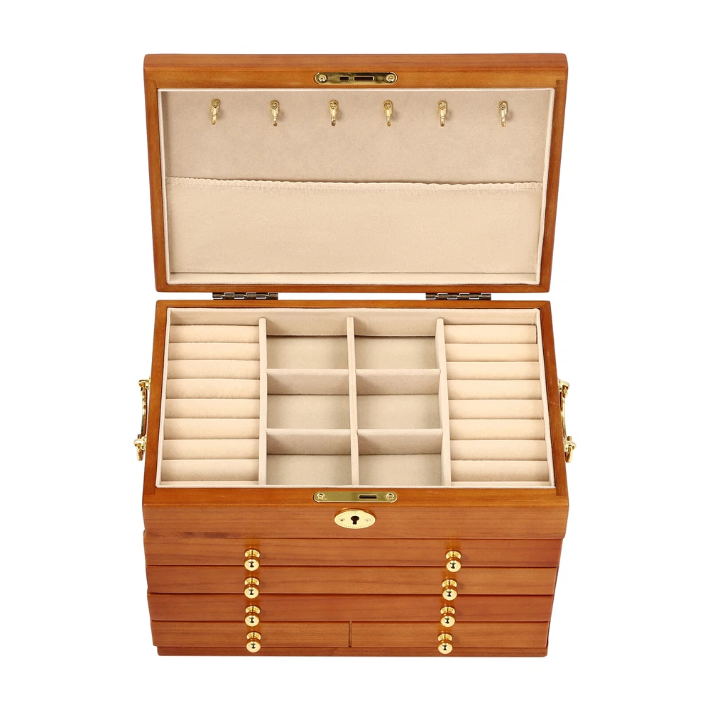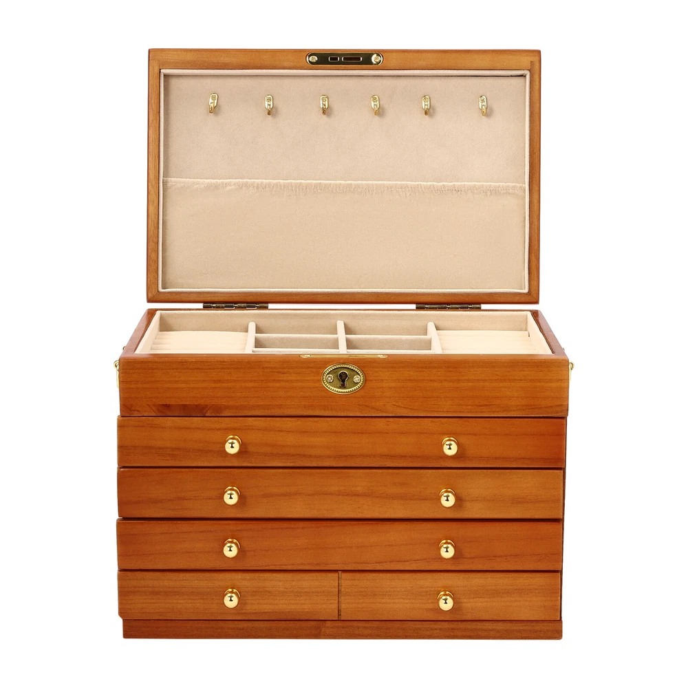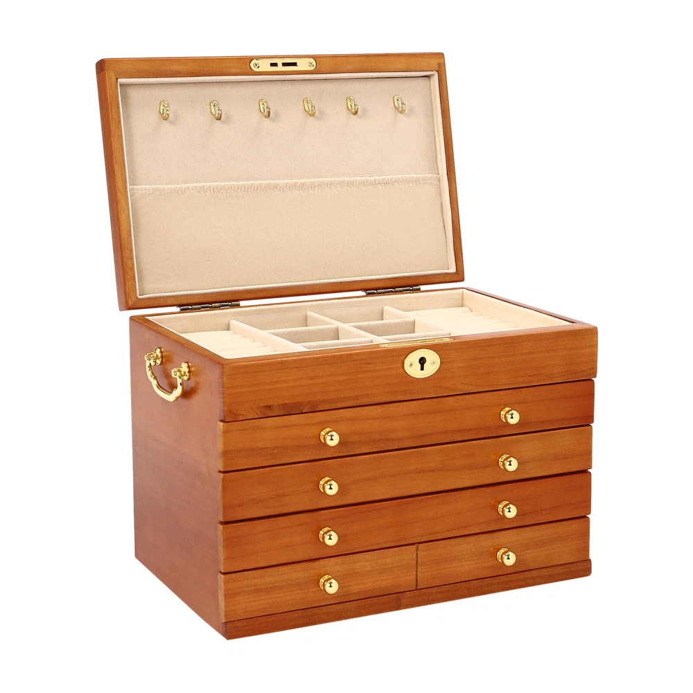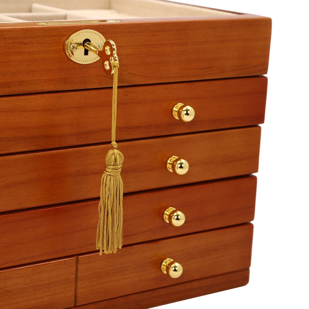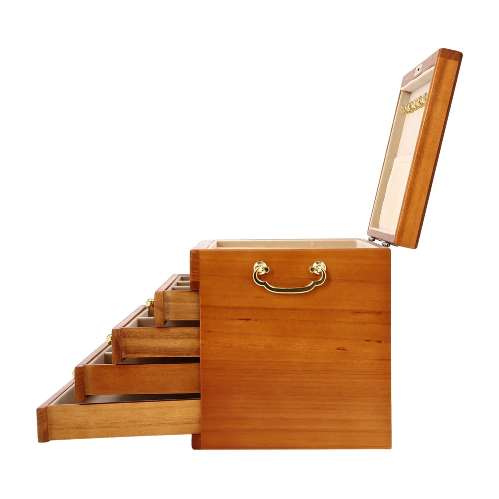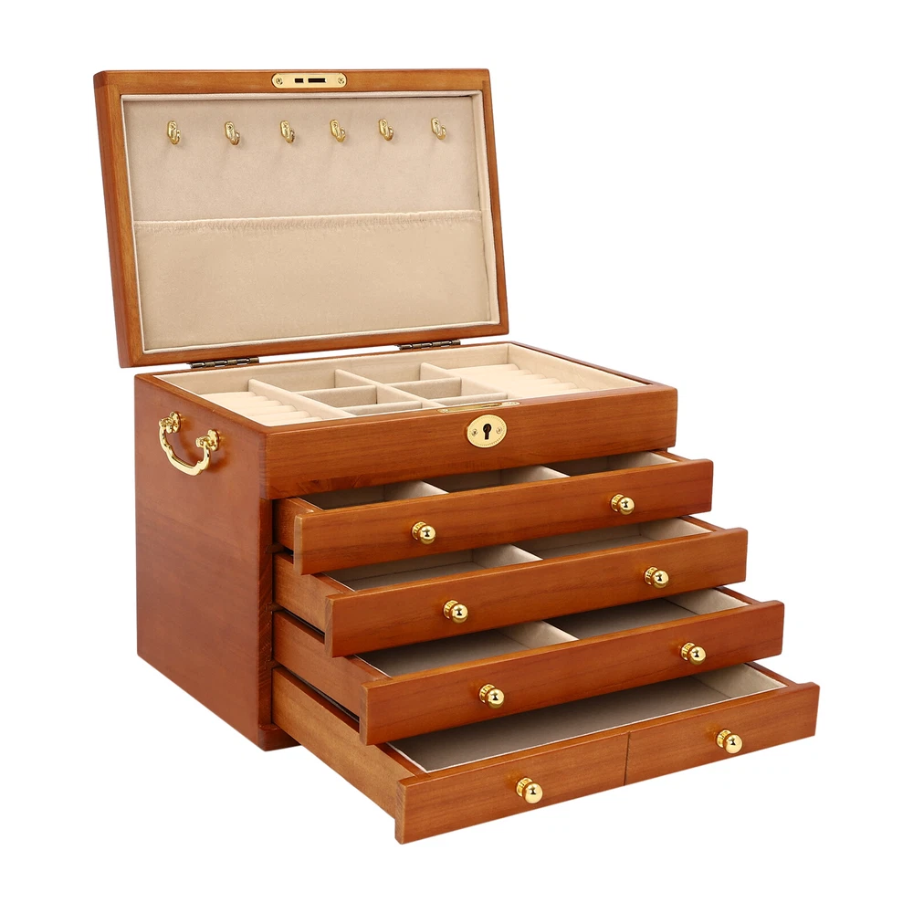5-Layer Large Wooden Jewelry Storage Box Ring Necklace Organizer with 4 Drawers Jewelry Box Wooden for Wowen Gifts 5-Layer Large Organizer Box with 4 Drawers US ??Description ✨_Is your jewelry often cluttered and impossible to find? Do you have too much jewelry without a large enough storage box? If you answered yes to any of these questions, then this four-tier jewelry box is for you. The four-tier storage design allows you to store many different types and sizes of jewelry. The wood material makes this jewelry box more vintage and elegant, not only to help with storage but also as a decorative piece to keep in your home. ?? Specifications Material: Sycamore Wood + Metal+Flocked Fabric Color: Walnut Color Number of Drawers: 4 Closure Type: Key Lock Handle Placement: Sides Hook Material: Hardware Gross Weight: 3.5kg/7.7lbs Net Weight: 3kg/6.6lbs Package Size: 35*26.5*28cm/13.8*10.4*11inch Product Size: 29*19* 21.5cm/11.42*7.48*8.46inch Package Included 1* Wooden Jewelry Box 1* Key ?? Key Features High-quality Materials: The jewelry box is made of sycamore wood with veneer and lacquer treatment, which is not only very durable but also attractive. The interior has a soft long flocked cloth as a lining to keep your jewelry from being scratched and crushed. Beautiful Appearance: The production process of the jewelry box retains the natural color of the wood, the surface is polished and smooth and the texture is visible. Large Capacity: This jewelry box has 4 drawers. Each of these drawers contains a different number of compartments to store many different types and sizes of jewelry. Full Pull-out Drawer: The drawer of this jewelry box is a full pull-out design, which can display all the jewelry and make it more convenient for you to get it. Safety Latch: The safety latch on the lid is designed to keep this item securely locked. This will protect your rings, earrings, necklaces, watches, and other jewelry accessories. Metal Hooks: This jewelry box has a layer of metal hooks specifically for necklaces, so you can hang your necklaces inside to prevent them from piling up and tying up, and such an intuitive design makes it easy to access. -------------------------- ?? ?? SEE MORE ?? ?? ----------------------- Fine Workmanship : From the smooth surface to the soft inner lining, even the sturdy locks and hooks are finely crafted to give you a better user experience. Reasonable Layout: Each level is divided into compartments of different sizes to facilitate a better display of your jewelry and easy access, especially the first layer has a dedicated area for storing rings, so you can store different types or sizes of jewelry separately. Ideal Gift : This jewelry box has a unique design with a beautiful appearance and a large capacity with practical features. It is an ideal gift for Valentine's Day, Mother's Day, Thanksgiving, Christmas, birthdays, and weddings. ?? Details High-quality Hinges: The hinge is made of high-quality hardware and is strong and durable. It has been tested many times to open and close, so you can use it with no worries. Exquisite Handles: Each compartment has a small and delicate handle for easy pulling out. Flocked Fabric: The lining of this jewelry box is made of soft, high-quality flocked fabric that is comfortable to the touch. It can protect your jewelry well from being crushed and scratched. Storage Pocket: A small pocket underneath the metal hook adds storage space to the jewelry box. You can also put the lower part of the necklace hanging from the hook into the pocket. Side Metal Handles: This jewelry box has polished and smooth metal handles on both sides, making it easy to move the jewelry box. ?? Application It is suitable for organizing various jewelry including sunglasses, watches, hairpins, earrings, rings, bracelets,watches, and necklaces. Notes Please allow the slight color difference caused by the shooting light and 1-3cm error due to manual measurement, and make sure you do not mind before ordering. Notes:2. The drawer of the product is movable. Please manually adjust the placement position of the drawer for neatness and beauty. Payment Delivery details Terms of sales About us Contact us Payment We accept ebay payment 。 Fees such as import duties, taxes are not included in the item price or shipping costs. These charges are the buyer's responsibility. Delivery details Shipping: 2-9 working days to: USA Terms of sales We maintain high standards of excellence and strive for hundred percent customer satisfaction. Feedback is very important to us. We hope that you contact us immediately before you give neutral or negative feedback, so that we can address your concerns. It is impossible to address issues if we do not know about them! About us Your satis faction is our ultimate goal. We work hard to earn your trust and future business. Our certified technicians have tested each item before shipping. The unit comes with 1 year limited warranty on all manufacturing defects. a) If you receive a defective item, you may return it or ask for a discount. Please contact us within 14 days after you receive the package. b) What you returned must be intact and in its original packaging as re? u. Customer is responsible for shipping costs of the returned item. c) We will cover the cost of shipping back t with the shipping rate indicated in the registration page. We will send you a new unit or refund the full payment you paid. Thank you. Contact us Business Hour Business Hour: Monday To Friday: 8:30 AM to 5:00 PM (Beijing China time) Due to time zones, our reply to your questions may not be immediately. But within above working time, we will reply your email within 24 hours. If it's non-workdays, please kindly be patient and wait till Monday. Please contact us with ebay message. Please feel free to contact us if you have any questions. Monday To Friday: 8:30 AM to 5:00 PM (Beijing China time) Due to time zones, our reply to your questions may not be immediately. But within