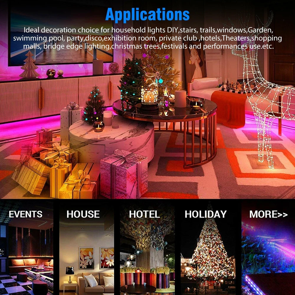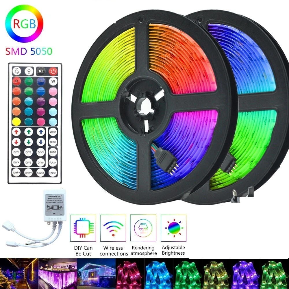 Indoor/Outdoor: Indoor & Outdoor Room: Bathroom, Bedroom, Dining Room, Garage, Hallway, Kitchen, Laundry Material: Plastic Manufacturer Part Number: Does Not Apply LED Chip Code: 3528 Power Consumption: 4.8W Application: to decorate home, living rooms, dining rooms, bedrooms, upstairs Features: Memory Function, 8-brightness Level, Changes Colors, Dimmable, Flexible, RGB, With Power Supply, With Remote Control Number of Lights: 300 LEDs Light Source: 3528 SMD LEDs Model: LED Light Installation Position: Indoor & Outdoor MPN: Does Not Apply gtin13: 645312029402 Output Voltage: 12V Lumens: 900LM Brand: Unbranded Power Source: Cored Occasion: Best Wishes, Birthday, Christmas, Congratulations Sensor Type: Light UPC: 645312029402 Bulb Type: 3528 SMD Light Color: RGB Rated Current: 5A Color Temperature: 3500 - 4500 K Natural/Neutral Input Voltage: 12V Type: Indoor/Outdoor LED Light Strip
