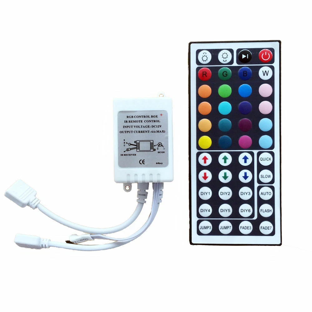 Lunacity88 Your Best Choice 5M/16Ft 3528 RGB SMD 300LEDs Light Strip Full Kits 44Key Remote DC 12V US Power Product Description: 5M RGB 3528 SMD 300 Led strip Light with 44 key IR Remote Controller and 12V 2A Power Supply, super bright but running at low temperature, low energy consumption, less heat radiation. Flexible rope lights can be cut and adjusted to any length. Perfect for home lighting, festival decorations, activities, venue set, exhibition decoration, hall decoration, hotels and other entertainment decorated KTV. Product Features: Bright and stable lighting: Built-in 300 RGB LEDs, 60 RGB LEDs per meter, this rgb led strip lights can provide super-bright lighting. 12V 2A DC power supply, completely smooth light, solving the uneven luminous problems. Color Changing: Light strip with 44keys IR remote controller for the led tape can fit your all changing demand. Please connect the IR remote with this led strips as the arrow indication and should be on the same side, or the lights will not turn on. (Note: This light is a RGB led tape, white light is not support temporarily. Key "W" is for controlling multiple color light on simultaneously, not for controlling white light.) 44 key IR Remote Controller: 8 Light pattern: Quick / Slow / Auto / Flash /6 DIY keys for memories the colors what you preferred. Memory function: This LED strip lights have memory function. When the strips are used again, they remember the last mode settings without having to repeat the settings. Longer Using: 16.4ft flexible led light strip, cuttable of every 3 LEDs, easy to fit all shapes decoration. The lifespan of the rated LED rope light can up to 50000 hours. Wide Application: Ideal for home lighting(bedroom rope lights), architectural lighting, stairs lighting, wine cabinet decoration and emergency lighting. Easy installation: Strong self-adhesive tape holds strip light safely and securely without damaging things by using screws. LED strip lights can be cut between every 3 leds without damaging the rest strips. Strip width is 8mm.The rest strip should be reconnected by extra connectors (not included). How to Use: 1. Connect the control box with the flexible led strip lights. 2. Then connect the control box with power supply. 3. Finally connect the power adapter to DC socket. Note: 1.Connect the load and power lines, make sure all connection right before power switched on. 2.Insure there is no obstacle between the IR controller and the receiver when operating. 3.Take off the plastic sheet of remotes battery before using. 4.Supply voltage of this product is DC 12V, never connect to DC 24V or AC 220V. Product Specification: Type LED Light Strip Length 16.4ft.(5M) LED number 300 (60 LEDs/M) Width 8mm Working voltage DC 12V Rated power 4.8W Application Indoor/Outdoor Decoration Weight 6.96oz (197g) Product Type: Package Includes: 1 x 5M LED Strip Light. 1 x 44 key IR Remote Controller. 1 x 12V 1A Adapter. Item Specifics Type : Indoor/Outdoor LED Light Strip Brand : Unbranded MPN : Does Not Apply Features : Memory Function 8-brightness Level Changes Colors Dimmable Flexible RGB With Power Supply With Remote Control Model : LED Light Application : to decorate home, living rooms, dining rooms, bedrooms, upstairs Bulb Type : 3528 SMD Color temperature : 3500 - 4500 K Natural/Neutral Indoor/Outdoor : Indoor & Outdoor Input Voltage : 12V Installation Position : Indoor & Outdoor LED Chip Code : 3528 Light color : RGB Light Source : 3528 SMD LEDs Lumens : 900LM Manufacturer Part Number : Does Not Apply Material : Plastic Number of Lights : 300 LEDs Occasion : Best Wishes, Birthday, Christmas, Congratulations Output Voltage : 12V Power consumption : 4.8W Power Source : Cored Rated Current : 5A Room : Bathroom, Bedroom, Dining Room, Garage, Hallway, Kitchen, Laundry Sensor Type : Light Payment