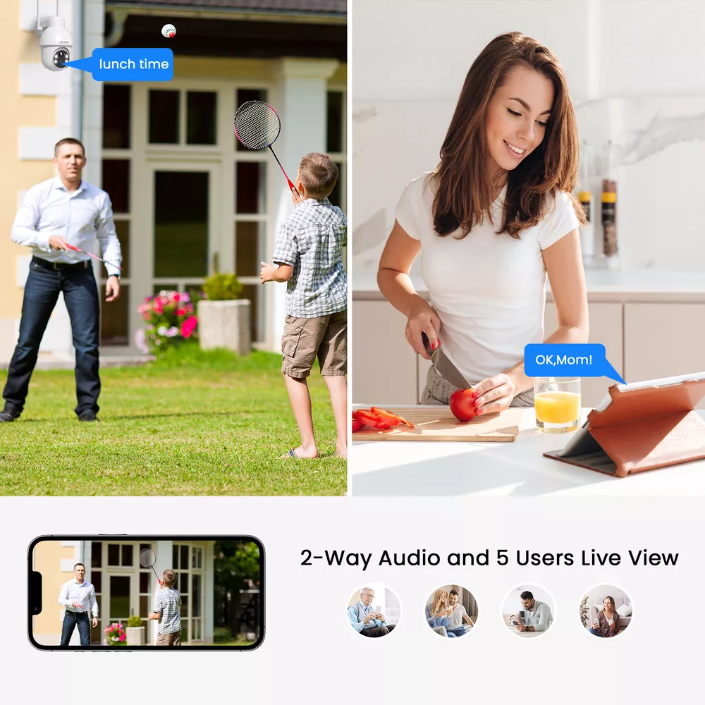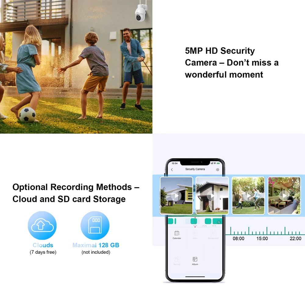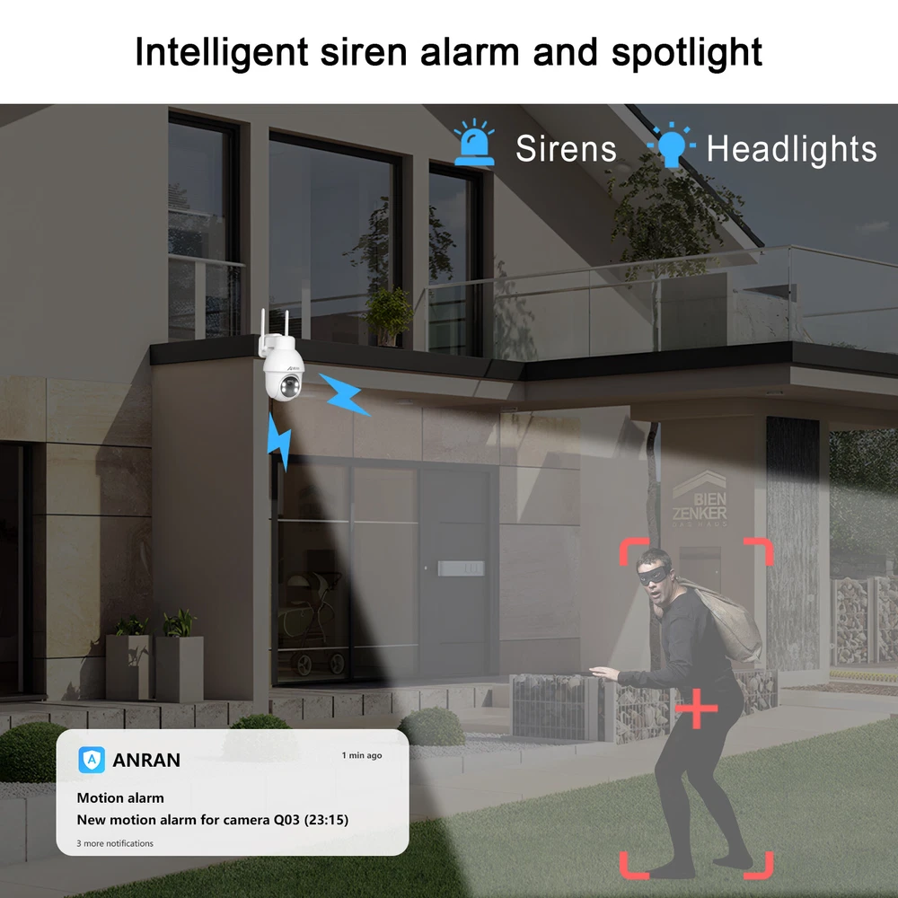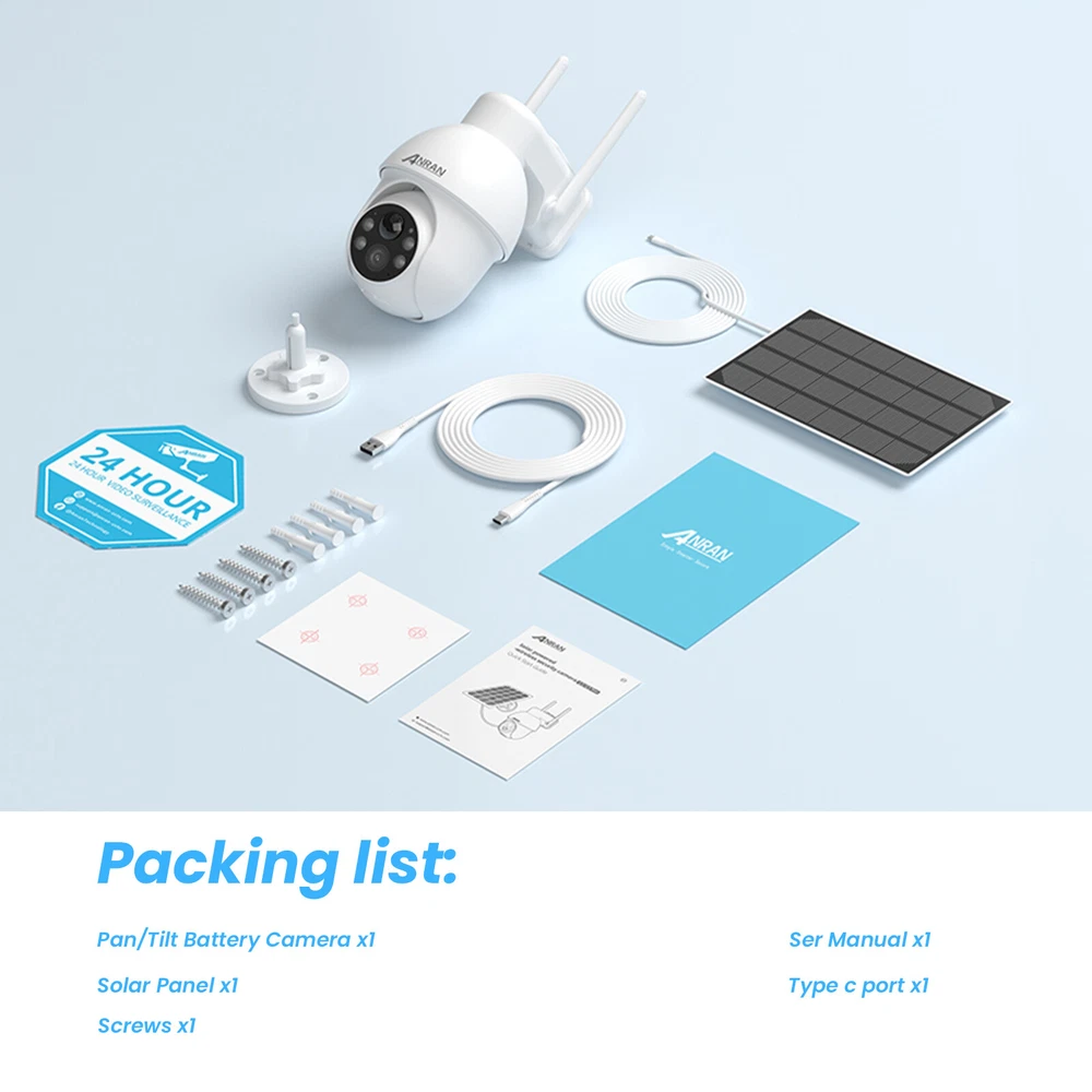 Note:1. The camera only can connect 2.4G wifi, can not work with 5G wifi 2. The camera use ANRAN app, can not work with ARCCTV app 3. Only can use alone, can not add to NVR system Cover Every Corner with pan tilt The security camera is designed with the rotation of a vertical 90 degrees and a horizontal 355 degrees; You can remote control the security camera to monitor all-round without blind spots. Two-way Audio Built-in microphone & speaker, you can see, hear and talk to anyone who appears on the screen of your device even though you are thousands of miles away. PIR Motion Sensor & Real-Time Alert The security camera has PIR human body infrared detection, which can effectively reduce false alarms caused by insect pests, leaves, rain and snow, etc. Smart Light Control This security camera delivers full-color videos or infrared night vision after sundown. You can see more valuable details to identify people, vehicles, and more objects. Clear 5MP FHD Video Ideal for home or business 5MP(2560x1920)Poffers exceptional Full HD resolution and quality enhancing efficiency and monitoring capabilities. Multiple Deterrences If the camera detects humanoid movements, the system will send out an alarm (Show message to APP, Send email, system buzzer). You can know that someone is approaching your home anytime, anywhere. Cloud /SD card Storage Our camera save motion-triggered videos to an SD card up to 128GB (not included). The wifi security camera will wake up within 0.8s after motion detection is triggerd. When the SD card is full, it will automatically cover the old video. IP66 Waterproof The Fully waterproof (IP66-rated) can operate perfectly in freezing or broiling temperatures (-10 °F – 131 °F), Rain or shine, always ready for extreme environments. Camera Details Copyright Alle Rechte vorbehalten. EBay Template Design On Jan 3, 2025 at 09:37:09 PST, seller added the following information: