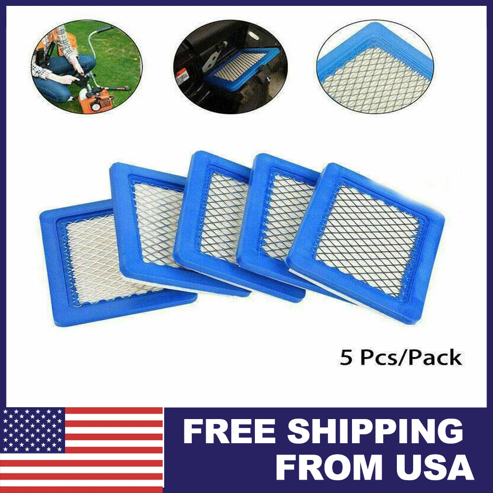 Product Description Description Condition:100% Brand New & High Quality Size:As Picture Fitment:For Fits:Briggs & Stratton Part # 491588 491588s 399959 5043 5043B 5043D 5043H & 5043K , John Deere Part # AM116236 LG491588 LG491588JD LG491588S & PT15853 Material: Hepa Filter Paper & Metal Mesh Color: White & Blue Size:Width 4 1/2" , Length 5 1/4" , Height 3/4" Features:In order to get the normal functioning of the engine, there must be a lot of clean air inhalation. If the harmful substances in the air (dust, resin, aluminum, iron acidification, etc.) is sucked in the engine, the cylinder, piston assembly will increase the burden, which will make them wear too much, so that the engine oil is interfuse, cause more substantial wear, lead to deterioration in engine performance and shorten engine life Air filter, like our nose, is the first "hurdle"of the air entering the engine, its role is to filter out sand in the air as well as some suspended particles to ensure that the engine is working properly, prevent engine wear. Meanwhile air filter also has a mute function Package Include:5 X Air Filters Compression Knee Brace Hinged Sleeve Joint Support Open Patella Stabilizer Wrap 11.69 USD Free shipping Trucker Bluetooth 5.2 Wireless Headset With Noise Cancelling Mic For Phones PC 25.99 USD 0.59 USD 5 Pack Random Colors Top Puff Premium Portable Hookah Bottle Water Glass Bong US 17.89 USD Free shipping 30L Outdoor Military Molle Tactical Backpack Rucksack Camping Hiking Travel Bag 17.59 USD Free shipping 6 pcs Toothbrush Replacement heads COMPATIBLE WITH & FOR SONIC E-SERIES 14.99 USD 0.59 USD Trucker Bluetooth 5.2 Wireless Headset With Noise Cancelling Mic For Phones PC 23.99 USD 1.59 USD