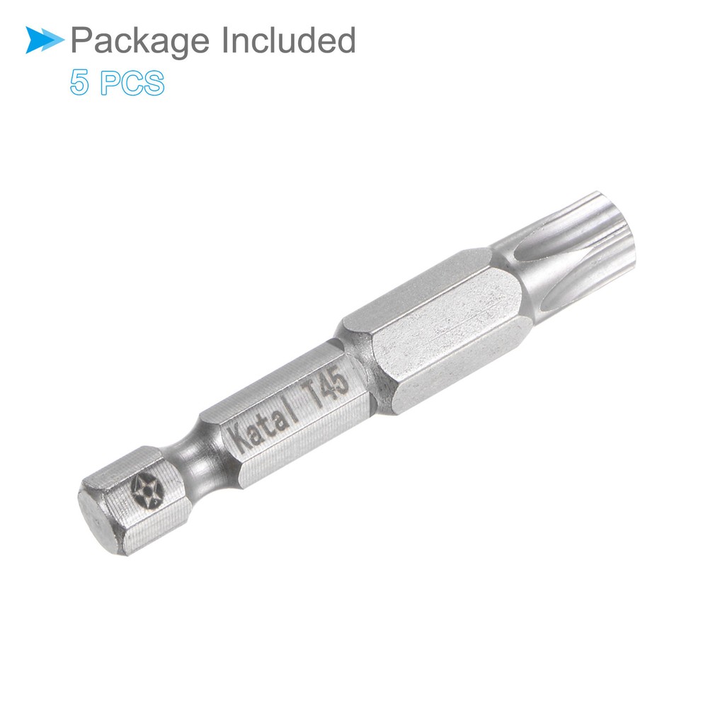 Document Attributes:* Material: S2 Alloy Steel* Size: T45* Hex Shank: 1/4"* Total Length: 50mm / 2"What Is Included:* 5 Pieces x Magnetic Security BitApplications & Features:--- Screwdriver bits set can be used in furniture installation, car maintenance, electronic factory, office installation, kitchen installation, etc.--- The magnetic bit tip can hold the screw securely before installation and after removing the screw to improve efficiency.--- Security bits are made of S2 alloy steel, with good toughness, the surface of the security torx bit set is nickel plating treatment for good anti-rust and wear-resistant and durability, and is suitable for industrial use.Useful Tips:--- Do not turn the screws with mismatched sizes to avoid damage to both the screw and the drill. 5PCS Magnetic Torx Bits T45 Head 1/4" Shank 2" 5 Point Tamper Proof Star Attributes: * Material: S2 Alloy Steel * Size: T45 * Hex Shank: 1/4" * Total Length: 50mm / 2" What Is Included: * 5 Pieces x Magnetic Security Bit Applications & Features: --- Screwdriver bits set can be used in furniture installation, car maintenance, electronic factory, office installation, kitchen installation, etc. --- The magnetic bit tip can hold the screw securely before installation and after removing the screw to improve efficiency. --- Security bits are made of S2 alloy steel, with good toughness, the surface of the security torx bit set is nickel plating treatment for good anti-rust and wear-resistant and durability, and is suitable for industrial use. Useful Tips: --- Do not turn the screws with mismatched sizes to avoid damage to both the screw and the drill. Hot Item Payment 1.We accept eBay payment . 2.Payment must be received within 7 business days of auction closing. Shipping 1.We ship to your eBay or Paypal address. Please make sure your eBay and Paypal address is correct before you pay. 2.Items will be shipped within 1-3 business day when we received payment. 3.Delivery time depends on destination and other factors. Description Policy 5PCS Magnetic Torx Bits T45 Head 1/4" Shank 2" 5 Point Tamper Proof Star Attributes: * Material: S2 Alloy Steel * Size: T45 * Hex Shank: 1/4" * Total Length: 50mm / 2" What Is Included: * 5 Pieces x Magnetic Security Bit Applications & Features: --- Screwdriver bits set can be used in furniture installation, car maintenance, electronic factory, office installation, kitchen installation, etc. --- The magnetic bit tip can hold the screw securely before installation and after removing the screw to improve efficiency. --- Security bits are made of S2 alloy steel, with good toughness, the surface of the security torx bit set is nickel plating treatment for good anti-rust and wear-resistant and durability, and is suitable for industrial use. Useful Tips: --- Do not turn the screws with mismatched sizes to avoid damage to both the screw and the drill. Hot Item Payment 1.We accept eBay payment . 2.Payment must be received within 7 business days of auction closing. Shipping 1.We ship to your eBay or Paypal address. Please make sure your eBay and Paypal address is correct before you pay. 2.Items will be shipped within 1-3 business day when we received payment. 3.Delivery time depends on destination and other factors.