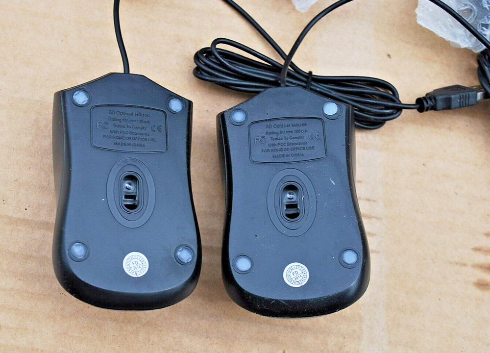 5 LOT 3D Optical Mouse Black USB Rating- 5V-100mA for Home or Office Use NEW THIS SALE IS FOR A 5 LOT 3D Optical Mouse Black USB Rating- 5V-100mA for Home or Office Use NEW High-quality black 3D optical mouse with wired USB OUTPUT Ergonomic mouse for home and office use, comfortable grip and smooth tracking. The mouse has 2 buttons and a Clicking Scroll wheel, it is compatible with standard computers and laptops. Manufactured in China with a rating of 5V-100mA. SHIPPING/HANDLING/FEEDBACK WE SHIP SAME DAY OR THE MOST NEXT DAY, except weekends ITEMS OVER TWO POUNDS ARE USSUALLY SHIPPED UPS . ITEMS BELOW 2 POUNDS SHIPPED USPS WITH DELIVERY CONFIRMATION. TRACKING INFORMATION IS EMAILED EVERY NIGHT AFTER ITEMS ARE SHIPPED. IF YOU DO NOT RECEIVED PACKAGE IN 10 DAYS PLEASE CHECK WITH US. MIGHT BE LOST. PLEASE DO NOT LEAVE NEGATIVE FEEDBACK BEFORE CONTACTING US TO RESOLVE ANY PROBLEM. OUR MAIN GOAL IS SERVICE. THANKS FOR YOUR SUPPORT. HABLAMOS ESPANOL.