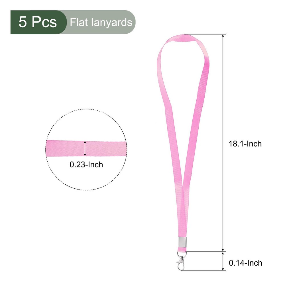 Document √MULTIPURPOSE - Our flat lanyards are mainly used in offices, exhibitions, events, trade shows and other places to hang cardholders' cards such as ID cards, name tags, badges, holders, access cards, key chains, etc.√WHAT YOU GET - The package comes with 5pcs flat lanyards that diameter 18.1 x 0.6-inch, 0.23 inch clip overall width√RELIABLE MATERIAL - This flat lanyard is made of polyester, it has a smooth surface, soft and comfortable hand feel, is durable and has a long life.√SPECIAL DESIGNED - This flat lanyard with swivel hook clip is designed for holders to wear cards, easy to carry and fit for all lanyard badge.√KINDLY NOTE - Please read the measurements before ordering if you are concerned about the size. And the card is not Included. 5 Pcs Flat Lanyard Neck Strap Lanyard Swivel Hook Clip for Office Pink √MULTIPURPOSE - Our flat lanyards are mainly used in offices, exhibitions, events, trade shows and other places to hang cardholders' cards such as ID cards, name tags, badges, holders, access cards, key chains, etc. √WHAT YOU GET - The package comes with 5pcs flat lanyards that diameter 18.1 x 0.6-inch, 0.23 inch clip overall width √RELIABLE MATERIAL - This flat lanyard is made of polyester, it has a smooth surface, soft and comfortable hand feel, is durable and has a long life. √SPECIAL DESIGNED - This flat lanyard with swivel hook clip is designed for holders to wear cards, easy to carry and fit for all lanyard badge. √KINDLY NOTE - Please read the measurements before ordering if you are concerned about the size. And the card is not Included. Hot Item Payment 1.We accept eBay payment . 2.Payment must be received within 7 business days of auction closing. Shipping 1.We ship to your eBay or Paypal address. Please make sure your eBay and Paypal address is correct before you pay. 2.Items will be shipped within 1-3 business day when we received payment. 3.Delivery time depends on destination and other factors. Description Policy 5 Pcs Flat Lanyard Neck Strap Lanyard Swivel Hook Clip for Office Pink √MULTIPURPOSE - Our flat lanyards are mainly used in offices, exhibitions, events, trade shows and other places to hang cardholders' cards such as ID cards, name tags, badges, holders, access cards, key chains, etc. √WHAT YOU GET - The package comes with 5pcs flat lanyards that diameter 18.1 x 0.6-inch, 0.23 inch clip overall width √RELIABLE MATERIAL - This flat lanyard is made of polyester, it has a smooth surface, soft and comfortable hand feel, is durable and has a long life. √SPECIAL DESIGNED - This flat lanyard with swivel hook clip is designed for holders to wear cards, easy to carry and fit for all lanyard badge. √KINDLY NOTE - Please read the measurements before ordering if you are concerned about the size. And the card is not Included. Hot Item Payment 1.We accept eBay payment . 2.Payment must be received within 7 business days of auction closing. Shipping 1.We ship to your eBay or Paypal address. Please make sure your eBay and Paypal address is correct before you pay. 2.Items will be shipped within 1-3 business day when we received payment. 3.Delivery time depends on destination and other factors.