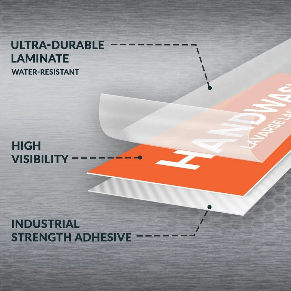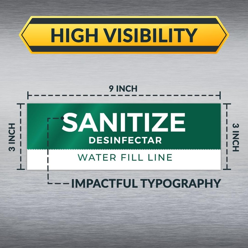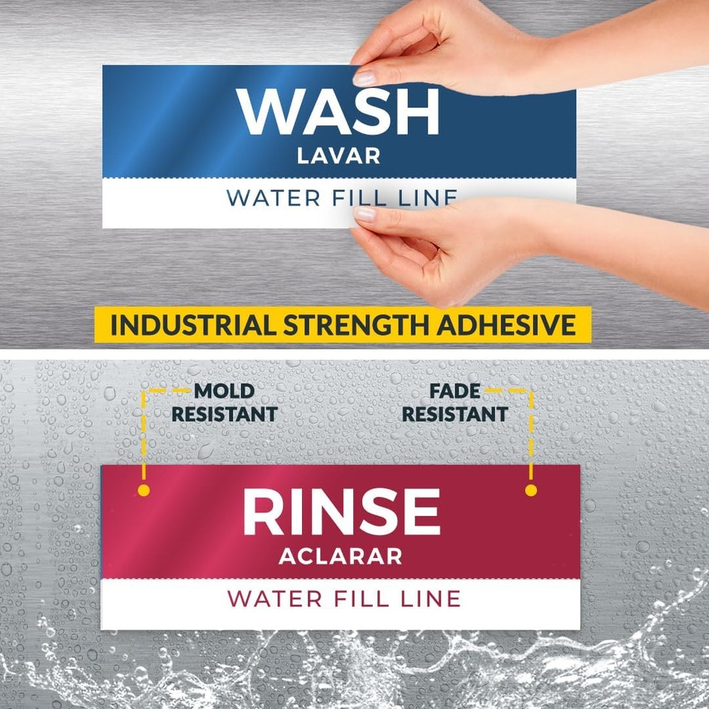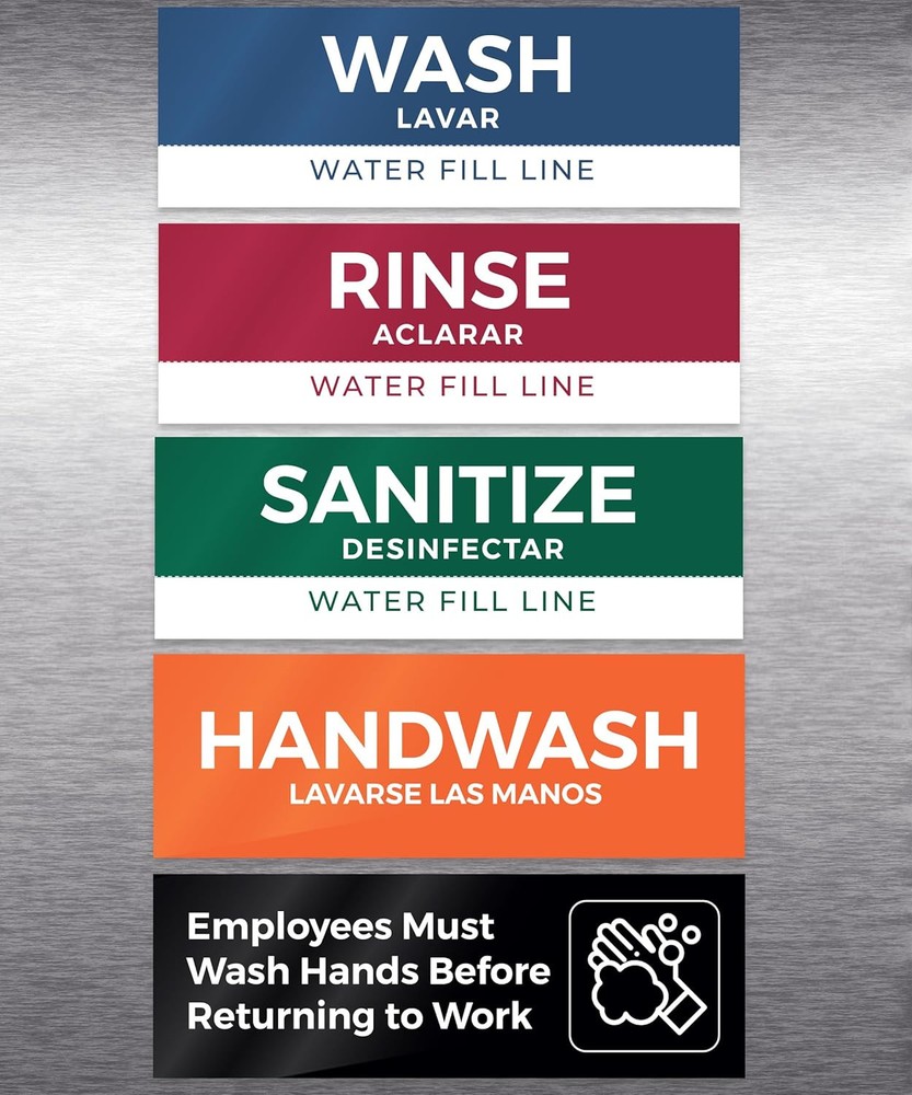 5 Pack Wash Rinse Sanitize Sink Labels, 3 x 9 inches (5 Pack), 5 Product Details Brand: Pixelverse Design Size: 3 x 9 inches (5 Pack) Color: 5 Pack Material: Vinyl Mounting Type: Wall Mount Recommended Uses For Product: Kitchen, Office, Restaurants Product Dimensions: 9"L x 3"W Number of Pieces: 5 UPC: 850005649212 Manufacturer: Pixelverse Design Size and Material: It’s a 3 x 9-inch wash rinse sanitize stickers. Made of vinyl self-adhesive backing and laminating finish Color/Bundle Set: Set of 5 - (Wash, Rinse, Sanitize, Handwash, Employees Must Wash Hands). These 3" x 9" inch decal stickers with large lettering and graphics will help you stay organized. Each sticker is color coded to ease work flow. Application: It’s super easy to use. Just peel, stick, and smoothen out air bubbles with a plastic credit card. It can stick to various clean, flat surfaces -- proven to stick on surfaces such as stainless steel, glass, aluminum, metal, sinks, refrigerators, compartments, etc. Usage: Our hand wash sign stickers are perfect for indoor and outdoor use. These wash rinse sanitize signs can be used as a reminder to always keep our hands clean anywhere we go. Other Features: UV and water resistant No sticky residue Perfect for 3 sink compartments, commercial kitchens, restaurants, food trucks, food festivals, etc. An ideal gift to anyone