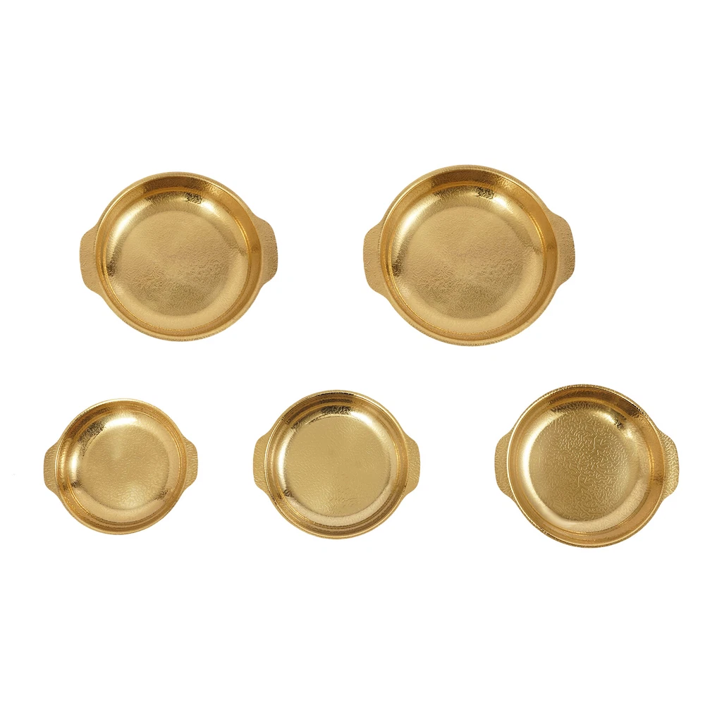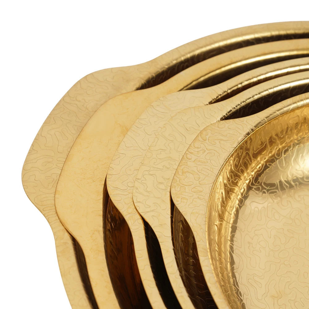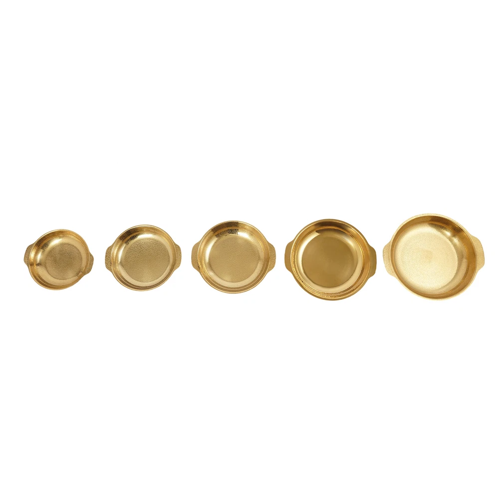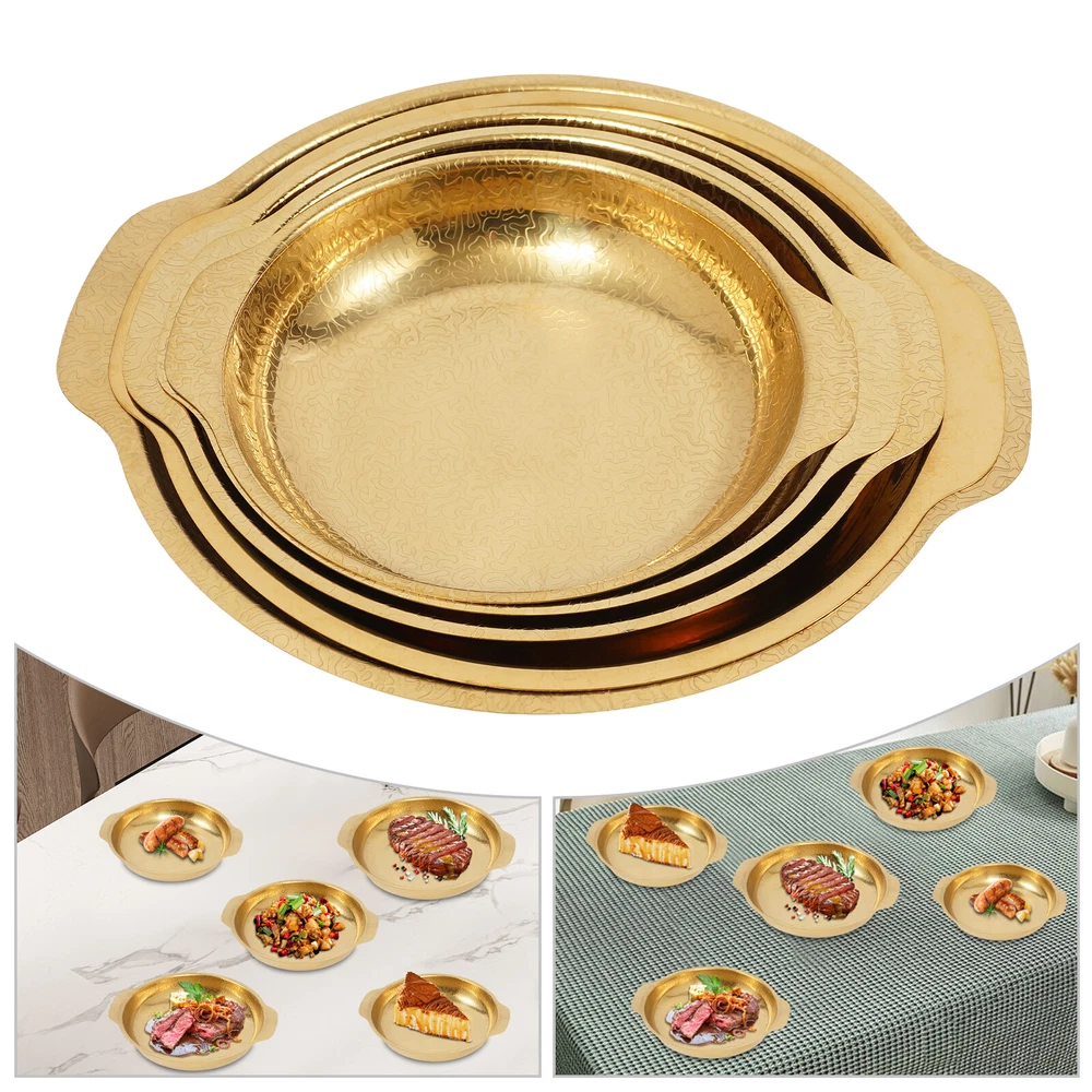 5Pcs Gold Paella Pans Food Serving Pan Seafood Pans Cookware Seafood Pan US Description Meticulously crafted from premium 410 stainless steel, this food serving pan set is not only corrosion-resistant and easy to clean, but also adds a touch of brilliance to your table with its unique shiny appearance. Whether it's a family gathering or a holiday celebration, it can be the ideal choice for showcasing your food and taste, turning every meal into a feast for both the eyes and the tastebuds. Key Features Made to Last: Made of 410 stainless steel with the gold plating process, the products are resistant to corrosion and rust and boast high hardness and a long service life. 5pcs a Set: The five pans in different sizes(7.09in, 7.87in, 8.66in, 9.45in, 10.24in) can meet your daily uses. You can also use them to set different dishes to brighten up your table. Good Appearance: The luxurious shine of gold color and unique texture make this set your unique tableware, bringing a sense of beauty and elegance to your table. Clean with Ease: Thanks to the stainless steel surface and simple structure, you can clean this product with rinse water and a damp cloth easily. Easy to Store: The five pans in different sizes allow you to stack them and store them in your cabinets, which is a great space saver. Ready to Use: Without assembly requirements, you can start to use them directly after receiving them and cleaning them. Ideal Gift: With good appearance and practical function, this set of products is an ideal gift for your friends, families, and colleagues. Buy with Confidence: We stand behind all our guests and look forward to assisting you with your purchase. It is our pleasure to answer your confusion and questions. The end of the story between us is not "we sell and you buy". Details Raised Edges: They can prevent the soup and food from spilling. In addition, these burr-free edges can protect your hands from getting scratched during daily use. Handle Design: Each product comes with convenient ear handles that allow you to easily serve the food with them. Application The product is suitable for banquets, restaurants, home kitchens, indoor and outdoor activities such as parties, garden events, camping, catering, or even a romantic dinner at home for serving pancakes, meats, vegetables, salads, seafood recipes, steaks, noodles, spaghetti, pasta, and various other foods. Specifications Color: Gold Material: 410 Stainless Steel Process: Gold Plating Mount Type: Free Standing, Tabletop Product Diameter: 18cm/7.09in, 20cm/7.87in, 22cm/8.66in, 24cm/9.45in, 26cm/10.24in Package Size: 32*32*15cm/12.6*12.6*5.91in Gross Weight: 3.5kg/7.72lbs Net Weight: 3kg/6.61lbs Package Included 5* Food Serving Pans Notes 1. Please check the size carefully before ordering. 2. Please allow the slight color difference caused by the shooting light and 1-3cm error due to manual measurement, and make sure you do not mind before you order. StartPrice 83.21544 Brand Does not apply Material 410 Stainless Steel Stove Type Compatibility Does not apply Process Gold Plating Mount Type Free Standing, Tabletop Gross Weight 3.5kg/7.72lbs