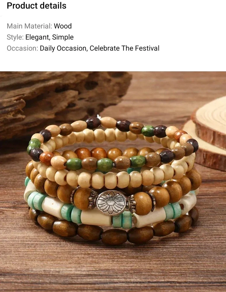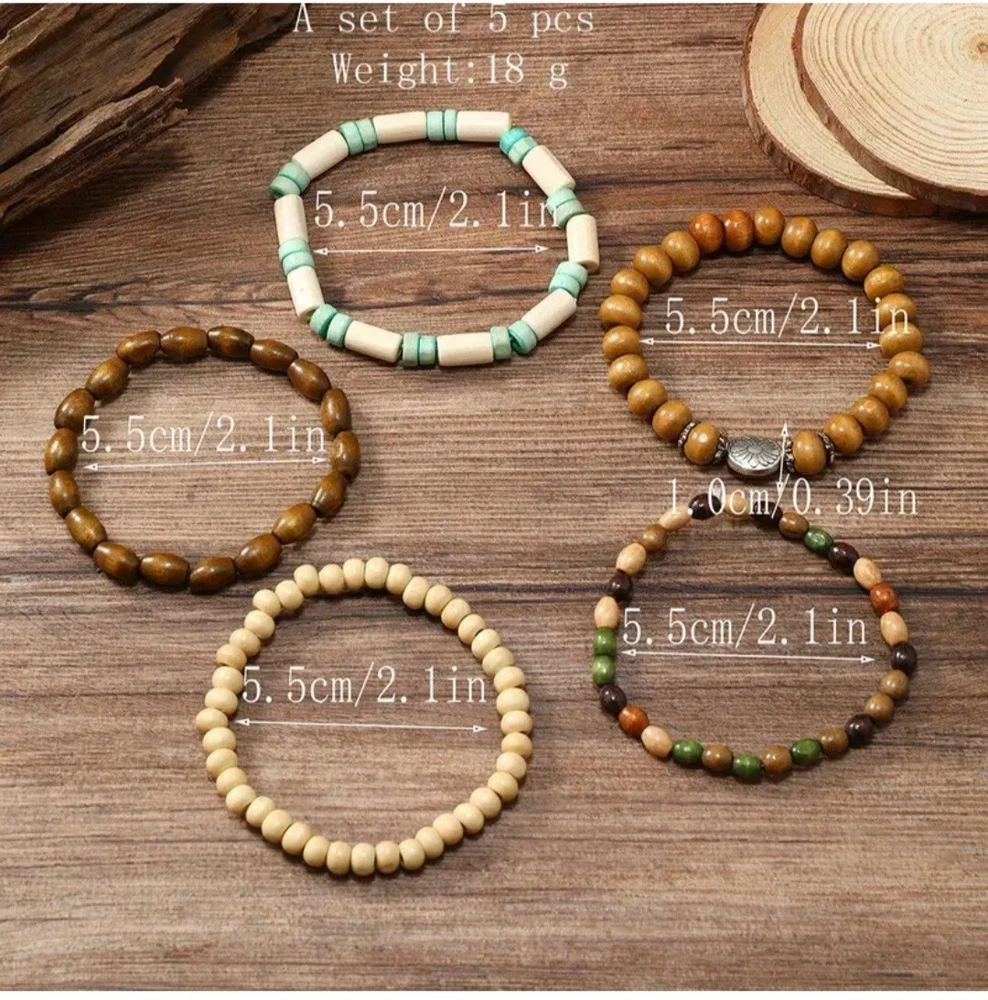 5-Pcs Colourful Wooden Bead Bracelet Set Handcrafted Stretch Cord Jewellery FOR Daily Wear & Festive Party. Please check all pictures for full descriptions . Colour appearance may be different on Pc display, Surroundings backgrounds and lights. The actual product colour may be slightly different from the images. If any question, please don't hesitate to ask. Buy with confidence. For any issue, please contact us first I’m sure any problem can be easily taken care of.