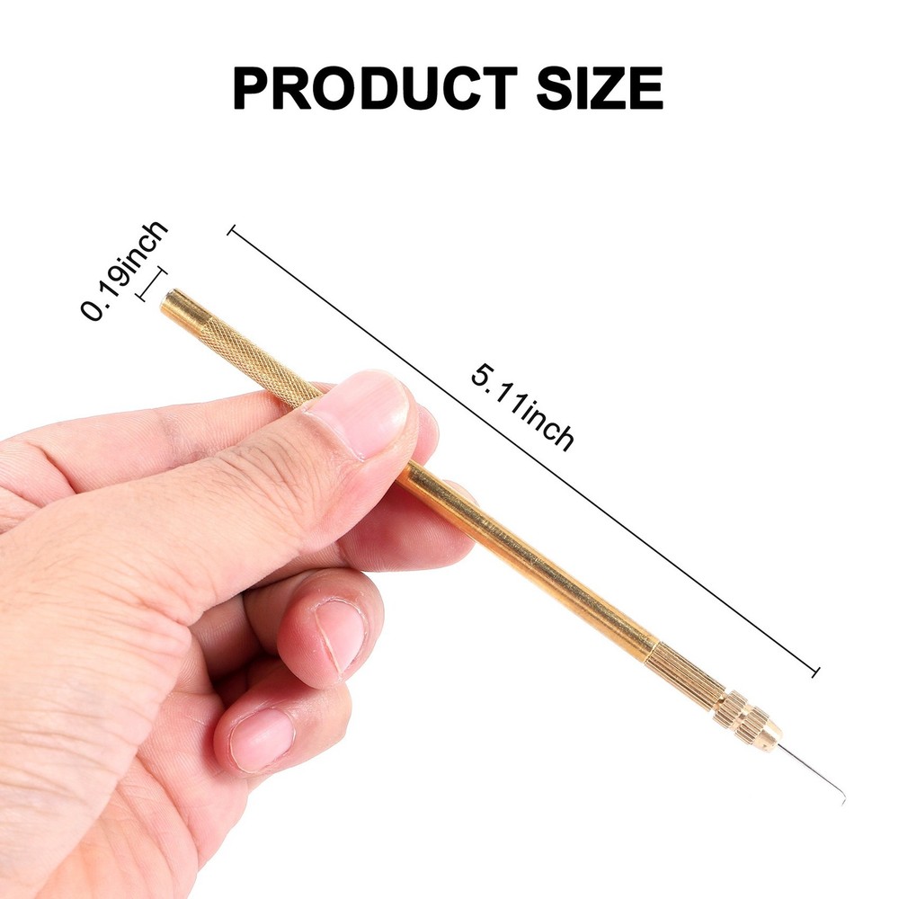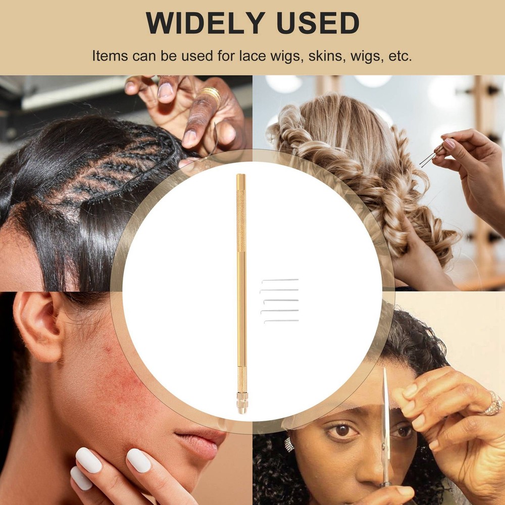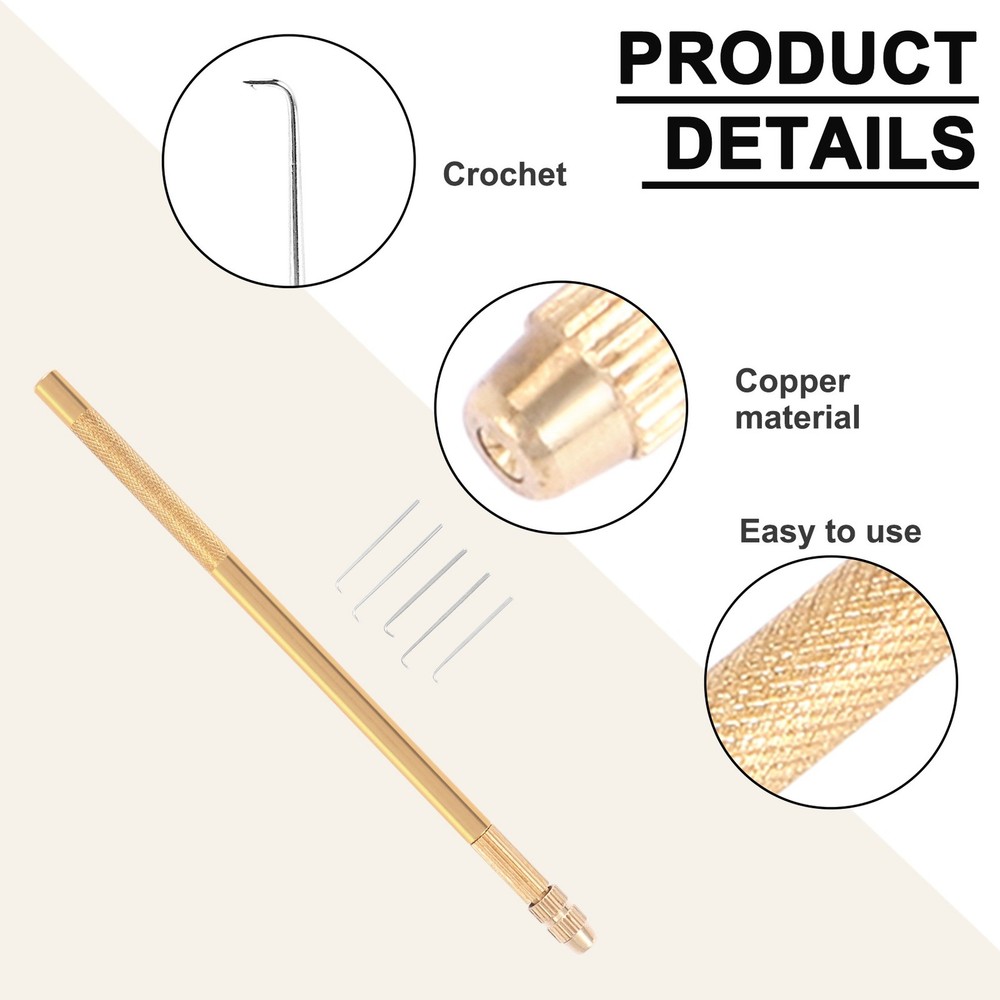 Wig Crochet 5Pcs Ventilating Needles +1 Brass Holder for Lace Wig Needle6772 1.5 pcs ventilating needles, modle 1-1 for 1 strands of hair ventilating, 1-2 for 1-2 strands of hair ventilating, 2-3 can pick up 2-3 strands of hair and 3-4 can pick up 3-4 strands of hair, 2# those needle are most use din ventilating the middle and front hair line of wigs, toupee, closure . 2.It's Great for Beginners or just Learning to Ventilate Lace Wigs. Now you can easily repair your lace wig by adding missing hair to Bald Spots or Customizing your Lace Wig Hairline just the way you want it. 3.This Simple Ventilating Needle has a nice bronze Hook end with a Tiny Latch which Prevents the hair from Falling off the needle. 4.It's much easier to use than Traditional German or Asian Ventilating Needles. Very easy to Master and you'll be Ventilating Much Faster! 5.We have one of these needles that we personally use and we have used it with Both Lace And French Lace Caps. These item be used for lace wig, skin, toupee and etc., easy to use. Name:wig crochet Item Type:Hook Needle Crochet size: 1-1/1-2/ 2-3 /3-4/2MM) Handle size: 13 x 0.5cm Material:copper colour:copper colour Package Contents: 1 x crochet handle 5 x crochet (1-1.1-2.2-3.3-4.2# 1 each)