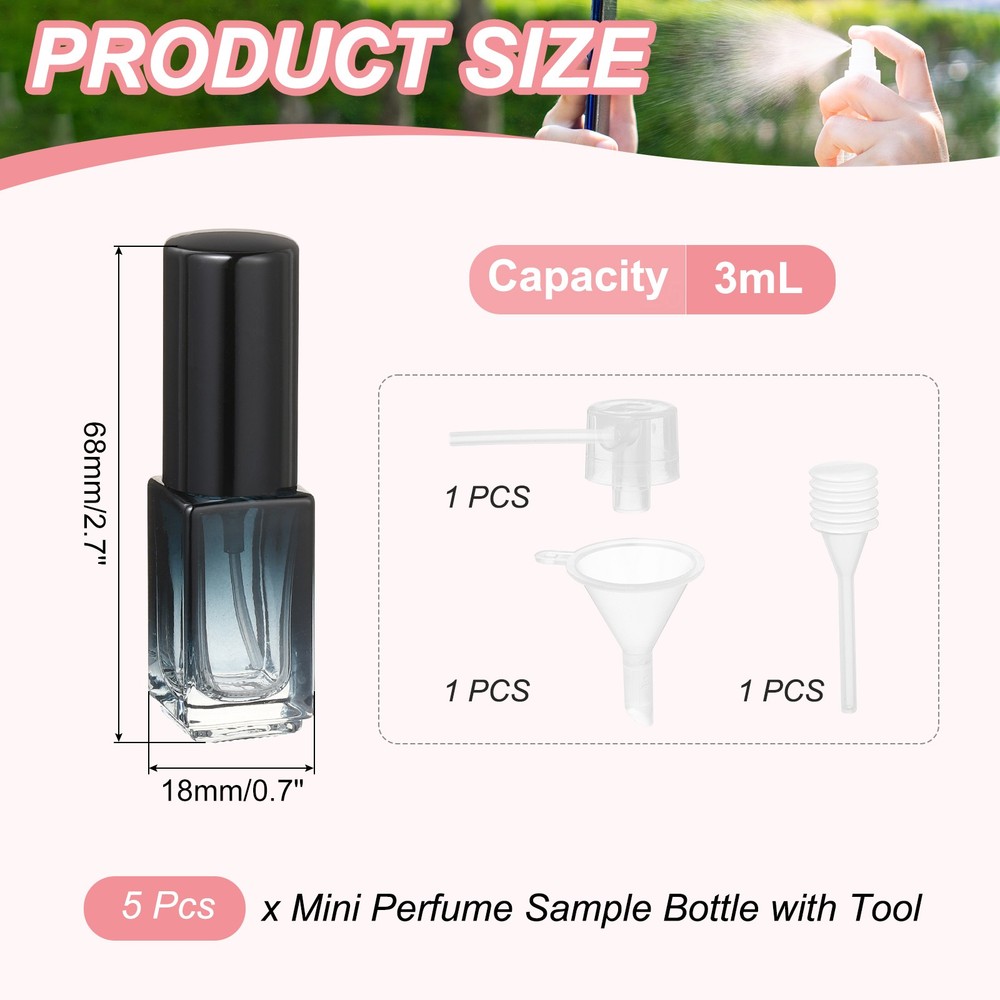 Document Description:Material: The travel bottles are made of durable and refillable Glass and PP material, which is not easily broken and deformed and can be reused after washing.Leakproof Design: The aluminized nozzle and spring button make it convenient for you to use, providing even lotion at every press. The screw cap features a screw-on design for easy pouring out and leak-proof performance.How to Refill: Twist off the cap, pour the liquid into the bottle, and close the cap, making it easy to refill the perfume bottles with your preferred fragrance. Then Press the pump to squeeze out the solution.Wide Application: The mini perfume sample bottle can be used for travel, bathroom, kitchen, and business trips. It is suitable for dispensing essential oils, body mist, perfumes, etc.SpecificationMaterial: Glass and PPColor: Clear/GoldCapacity: 3mlOverall Size: 56 x 17 mm/ 2.2 x 1 Inch(H*OD)Packing Content: 25 Pcs x Mini Perfume Sample Bottle with ToolColor: Gradient Blue/BlackCapacity: 3mlOverall Size: 68 x 18 mm/2.7 x 0.7 inches(H*OD)Packing Content: 5 Pcs x Mini Perfume Sample Bottle with Tool 5 Pcs 3ml Fine Mist Bottles Mini Spray Bottles (Square, Gradient Blue/Black) Description: Material: The travel bottles are made of durable and refillable Glass and PP material, which is not easily broken and deformed and can be reused after washing. Leakproof Design: The aluminized nozzle and spring button make it convenient for you to use, providing even lotion at every press. The screw cap features a screw-on design for easy pouring out and leak-proof performance. How to Refill: Twist off the cap, pour the liquid into the bottle, and close the cap, making it easy to refill the perfume bottles with your preferred fragrance. Then Press the pump to squeeze out the solution. Wide Application: The mini perfume sample bottle can be used for travel, bathroom, kitchen, and business trips. It is suitable for dispensing essential oils, body mist, perfumes, etc. Specification Material: Glass and PP Color: Clear/Gold Capacity: 3ml Overall Size: 56 x 17 mm/ 2.2 x 1 Inch(H*OD) Packing Content: 25 Pcs x Mini Perfume Sample Bottle with Tool Color: Gradient Blue/Black Capacity: 3ml Overall Size: 68 x 18 mm/2.7 x 0.7 inches(H*OD) Packing Content: 5 Pcs x Mini Perfume Sample Bottle with Tool Hot Item Payment 1.We accept eBay payment . 2.Payment must be received within 7 business days of auction closing. Shipping 1.We ship to your eBay or Paypal address. Please make sure your eBay and Paypal address is correct before you pay. 2.Items will be shipped within 1-3 business day when we received payment. 3.Delivery time depends on destination and other factors. Description Policy 5 Pcs 3ml Fine Mist Bottles Mini Spray Bottles (Square, Gradient Blue/Black) Description: Material: The travel bottles are made of durable and refillable Glass and PP material, which is not easily broken and deformed and can be reused after washing. Leakproof Design: The aluminized nozzle and spring button make it convenient for you to use, providing even lotion at every press. The screw cap features a screw-on design for easy pouring out and leak-proof performance. How to Refill: Twist off the cap, pour the liquid into the bottle, and close the cap, making it easy to refill the perfume bottles with your preferred fragrance. Then Press the pump to squeeze out the solution. Wide Application: The mini perfume sample bottle can be used for travel, bathroom, kitchen, and business trips. It is suitable for dispensing essential oils, body mist, perfumes, etc. Specification Material: Glass and PP Color: Clear/Gold Capacity: 3ml Overall Size: 56 x 17 mm/ 2.2 x 1 Inch(H*OD) Packing Content: 25 Pcs x Mini Perfume Sample Bottle with Tool Color: Gradient Blue/Black Capacity: 3ml Overall Size: 68 x 18 mm/2.7 x 0.7 inches(H*OD) Packing Content: 5 Pcs x Mini Perfume Sample Bottle with Tool Hot Item Payment 1.We accept eBay payment . 2.Payment must be received within 7 business days of auction closing. Shipping 1.We ship to your eBay or Paypal address. Please make sure your eBay and Paypal address is correct before you pay. 2.Items will be shipped within 1-3 business day when we received payment. 3.Delivery time depends on destination and other factors.