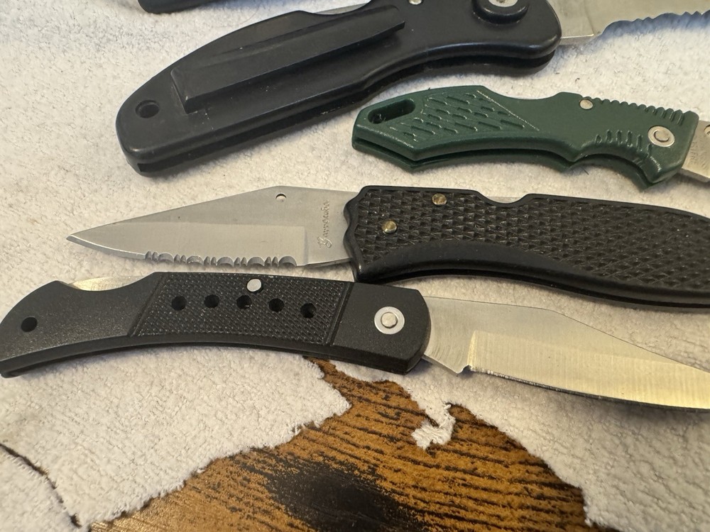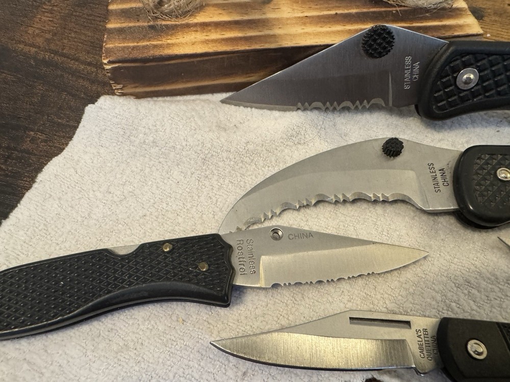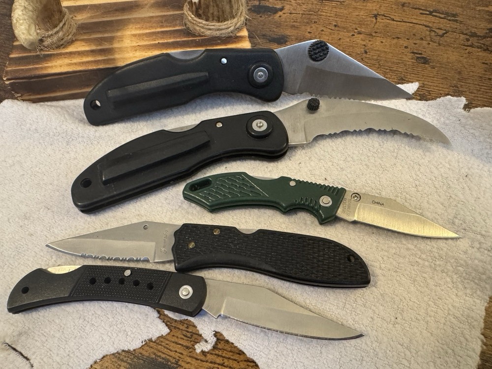 Explore the great outdoors or embark on a survival adventure with this diverse set of 5 folding knives, each crafted to meet the demands of any situation. The knives come from the renowned Tactical brand, known for their robust and reliable cutting tools. Whether you're camping, hiking, or find yourself in an emergency scenario, these knives are designed to provide the necessary tools for cutting, slicing, and sawing through various materials. Each knife in this lot is a unique addition to your collection, featuring different models from the Military product line that cater to a range of uses. With their ergonomic handles and sharp blades, these knives are ready for action whenever you are. Ideal for everyday carry or as a tactical backup, they are versatile choices for anyone who values preparedness and utility.