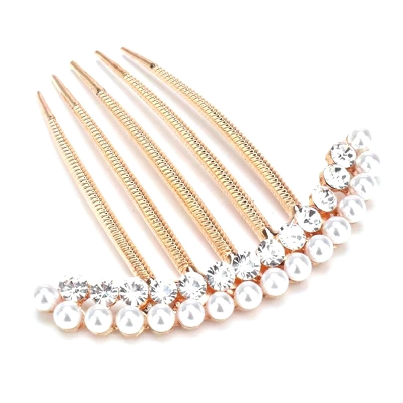 Description: These beautiful and exquisite hairpin combs makes you look more lively and attractive. Perfect workmanship,every bead is fixed firmly,elegant arc. Smooth pins,easy for you to insert in and pull out from hair. Hold your hair more firmly with this waved pins,and will not slide off easily. Pure and fresh style,suitable for wedding bride as well as bridesmaid,dating person,etc. Specification: New and high quality Material: Alloy Style: Women Treatment process: electroplating Color: as shown in the figure Package Included:1PCS Note: As different computers display different colors, thank you for your understanding, the actual product color may be slightly different from the image.