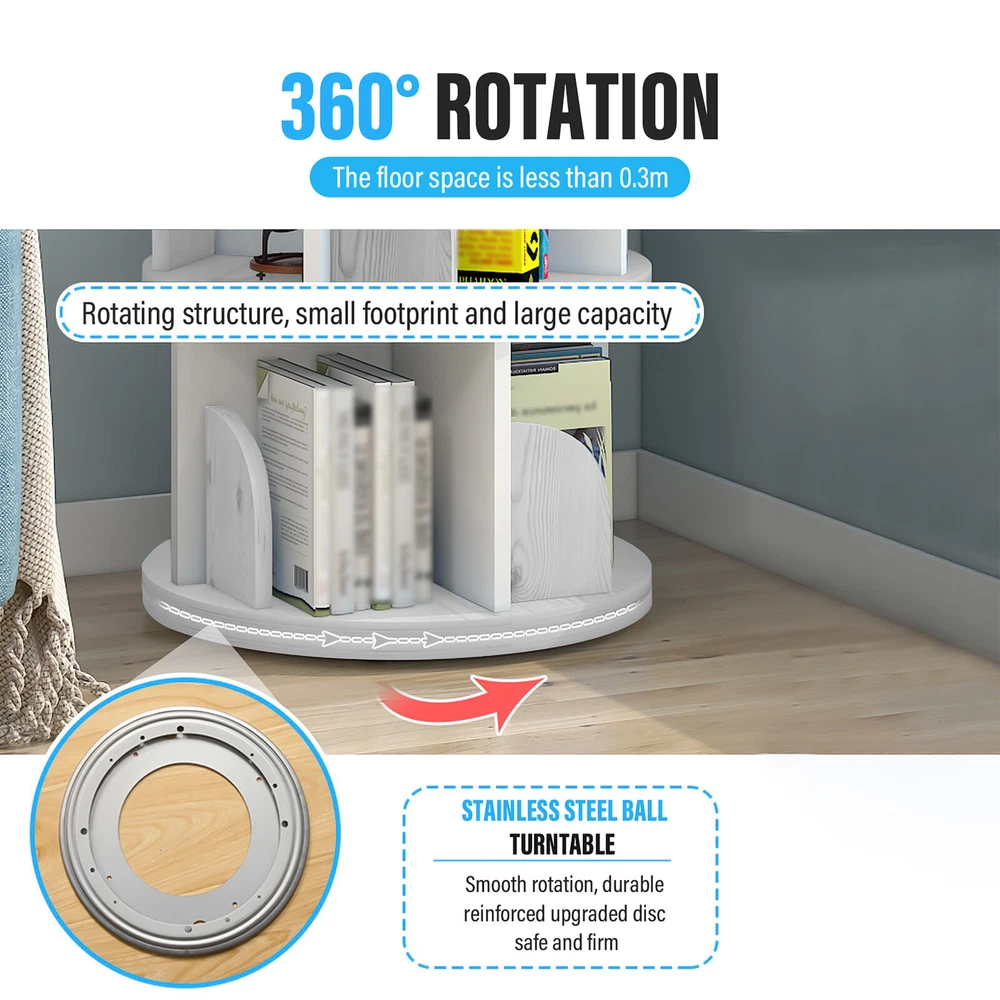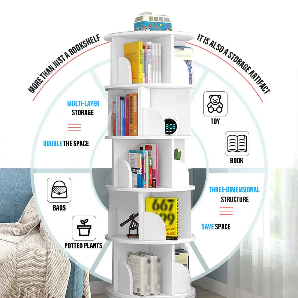 Store category Sign Up Now ! You may also like Product Description Bullet Points: Elegant Display: With a 360-degree swivel function, this visually appealing and eye-catching bookshelf adds a touch of elegance and sophistication to any room decor, showcasing your book collection from all angles with its large capacity. Wide Applications: This 5-tier revolving bookshelf provides practical surfaces for versatile applications, making it perfect for classroom library organization, as a side table, or for small bookcases in small spaces. Ideal for organizing children's books and toys, as well as adult books. Efficient Space Utilization: Elevate your bedroom design with this bookshelf that optimizes room layout and increases storage capacity. Its space-saving design makes it a great choice for small rooms, occupying minimal floor space while providing ample storage options. High Strength: Crafted with high-quality wood, this bookshelf boasts outstanding durability. Its well-made, sturdy construction ensures excellent durability that can withstand heavy loads, proving to be strong and wear-resistant for years. Convenient Organization: With simple assembly instructions, this bookshelf provides a swivel function for easy and convenient browsing and retrieval of books, whether placed against the wall or in the center of the room, ensuring easy access to books on all sides. Introducing our 5-tier rotating bookshelf tower! This 360-degree display optimizes any room layout and provides excellent durability. With a swivel function, this bookshelf tower allows for easy access to all of your favorite reads without the need for excessive repositioning. A perfect addition to any home or offices! Specification: Product name: 5 Tier Bookshelf Product size: about 40x40x160 cm/15.74 x15.74 x62.99 inches Capacity: 5 layers in total, each layer has a space of about 30 cm/11.81 inches Material: PVC Packing List: 1 x 5 Tier Bookshelf Note: Due to different lighting and screen settings, the item color may be slightly different from the picture. Due to different manual measurements, please allow a 1-2cm difference in size. Payment Delivery details Terms of sales About us Feedback & DSRs Payment Before you palce an order, please kindly make sure that you have a paypal account. We accept PAYPAL payment only. Payment should be completed within 2 days after auction closed, or unpaid dispute will be filed for an closing auction. An unpaid case will be filled after 4 days. Delivery details We ship to your eBay address. Each package will be shipped to US by UPS Regular Parcel with tracking number. Please check your shipping address carefully before checkout, it can't be changed if order completed. All items will be shipped within 1-2 business day upon receipt of payment.Orders placed on weekend will be shipped within 3 days. If you do not receive your item in 7-10 business days.please contact us immediately for further assistance. We will be responsible for any damages or losses incurred in the shipping process. About us We maintain high standards of excellence FIVE STAR and strive for 100% customer satisfaction! Positive Feedback is very important to us. We hope that you contact us immediately Before you give us neutral or negative feedback, so that we can satisfactorily address your concerns. We promise to offer the lowest price and high quality produce. Our working time: From Monday to Friday(9:30 am to 18:00pm), we don't working on holidays ,hope you can understand and know that , thank you. Please always talk to us via ebay Message. We appreciate your business and look forward to growing our e-Bay sales with satisfied customers. Feedback Contact us If you have any questions, please feel free to contact with us by ebay Message during our business hours ( 9:30a.m. to 5:30 p.m.), or email us through eBay, we will try our best to help you to resolve it. For any presale or after-sale questions,please do feel free to email us! Due to the time difference, each email will be replied within 1 working day,and weekend will be delayed a bit. Feedback