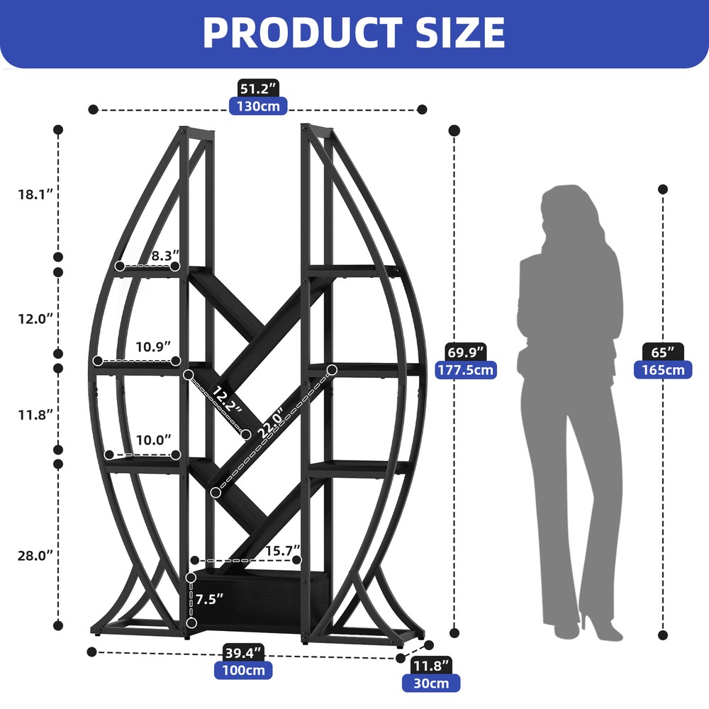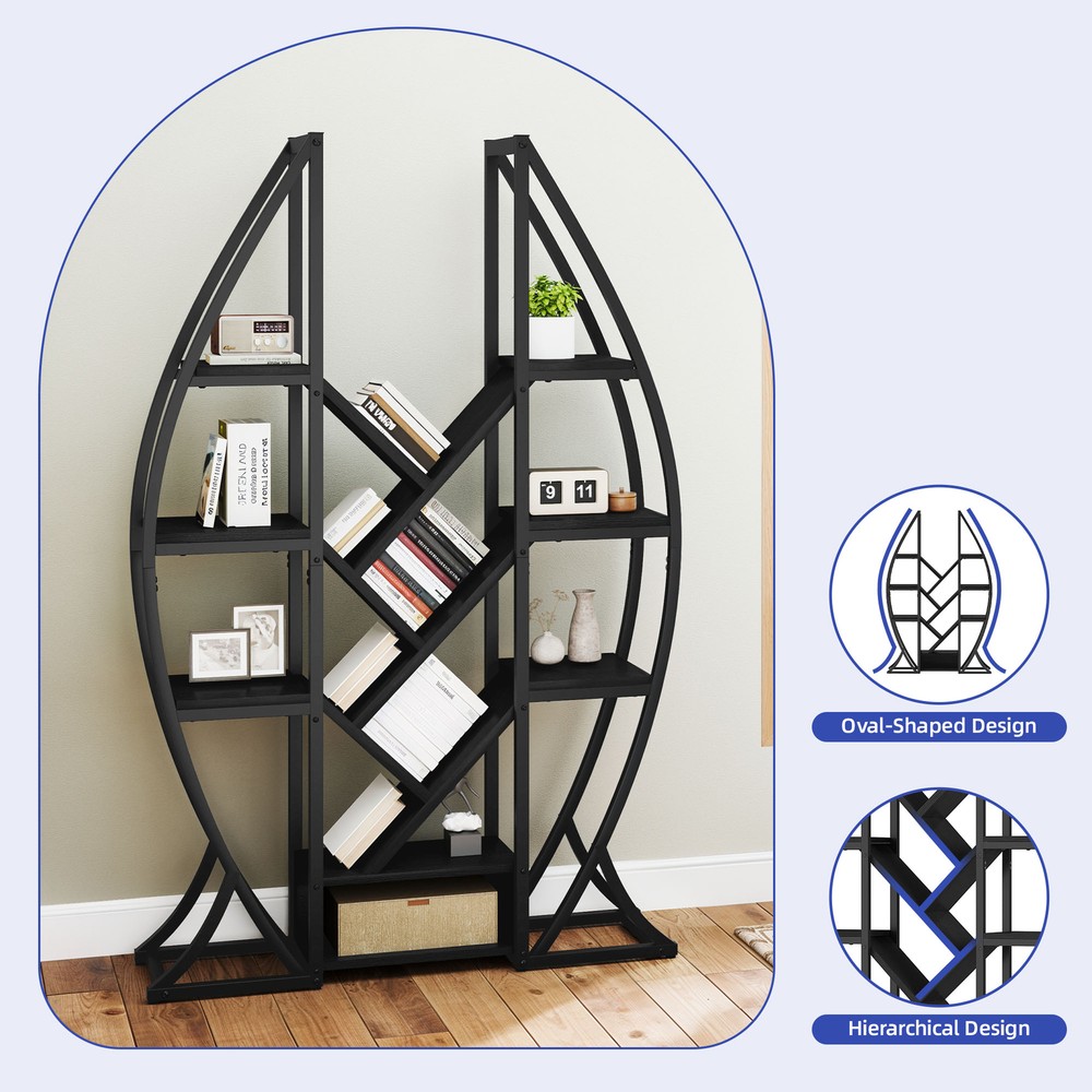 5 Tier Oval Shaped Bookshelf Black Bookcase Wooden Etagere Rack Display Home Product Description NOTE: Professional Installation would be Highly Recommended. Descriptions: 1. Material: MDF Board, Metal 2. Color: Black 3. Mounting Type: Freestanding 4. Special Design: Oval Shape, Metal Frame, Adjustable, Drawer Storage 5. Suitable For: Home, Office, Bedroom, Living Room, Study Room Features: 1. Industrial Oval Shape Design : This bookshelf combines a modern industrial aesthetic with a unique oval shape, creating a bold and functional statement piece. Its minimalist design fits effortlessly into contemporary or rustic interiors. 2. Layered Storage Design : Designed with a multi-tiered layout, the bookshelf offers ample space to display a variety of items, including books, decorative pieces, and plants. Its organized tiers provide easy accessibility and an attractive visual arrangement. 3. Robust Build Quality : Constructed with a high-strength metal frame, this bookshelf is built for durability and everyday reliability. Its industrial-grade materials ensure it stands strong against wear and tear over time. 4. Comprehensive Safety Systems : Equipped with an anti-tip and anti-fall kit, this bookshelf prioritizes safety, ensuring it stays securely anchored to prevent accidental mishaps, making it ideal for households with kids or pets. 5. Functional Features for Everyday Use : With adjustable feet to accommodate uneven floors and a roomy bottom storage space for stowing away larger items, this bookshelf is as practical as it is stylish, keeping your living space tidy and well-organized. Dimensions: 1. Product Dimensions: 11.8"D x 51.2"W x 69.9"H 2. Weight Capacity: 56 lbs Package Includes: 1. 1 x Bookshelf 2. 1 x Packet of Fittings 3. 1 x Instruction Manual Shipping 1. Normally the item will be dispatched within 1 business day if payment is cleared before 12pm PST. 2. Please verify the correct shipping address in your PayPal account before making the payment. We only dispatch the item to the address that is sent to us at the time of checkout. 3. We don't ship to Hawaii, Alaska, Puerto Rico, APO/FPO/PO Boxes. 4. We don't provide local pick-up service. 5. Normally we will use USPS, UPS, FedEx & LTL to dispatch items. Payment 1. We accept PayPal and credit card. 2. We will ship to the confirmed Paypal shipping address that is provided with the payment only. Return 1. 30 days Money Back Guarantee. 2. Please contact our customer service to receive a RMA form first if want to return the item. 3. All returned items MUST in new condition with the original package. Contact If has any problem, please contact us by sending an ebay message. Our customer service will resolve the problem as soon as possible. On Dec 17, 2024 at 01:11:40 PST, seller added the following information: