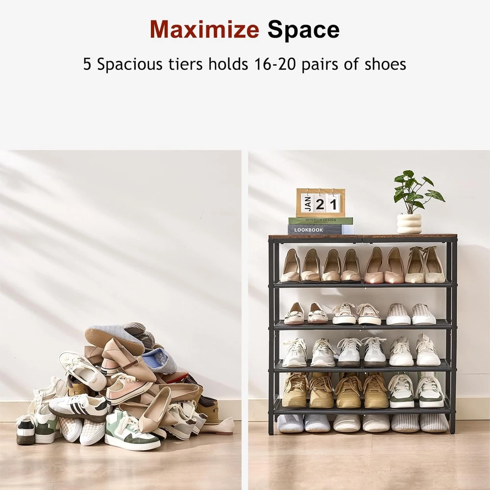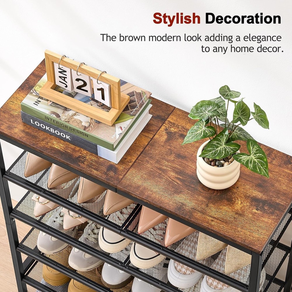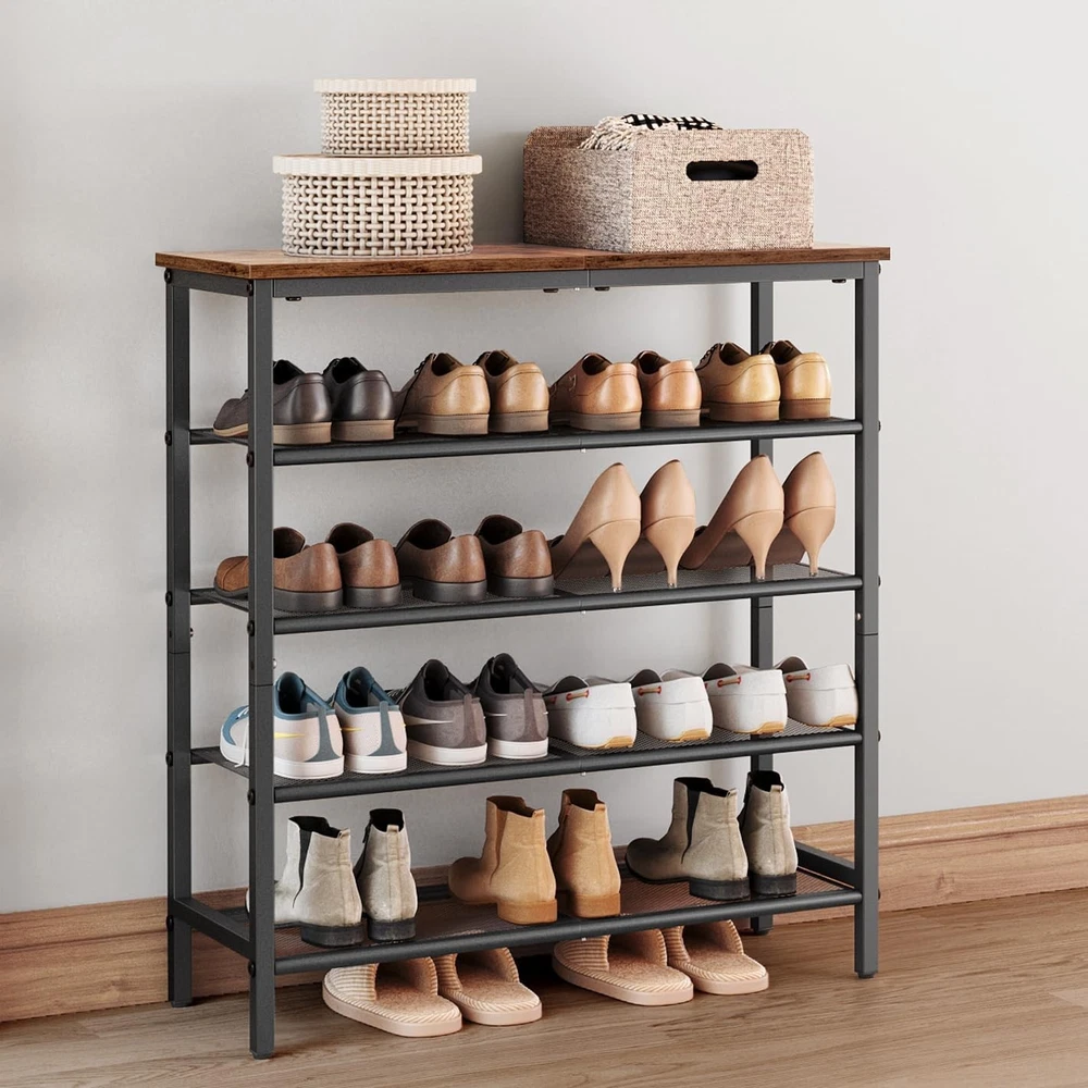 This shoe rack is a game-changer! It's super sturdy with steel mesh shelves that hold everything from sneakers to heels without wobbling. Fits perfectly in tight spaces like entryways or closets while holding up to 20 pairs. The compact design saves so much room yet feels solid—no cheap plastic here. Love how easy it is to assemble and how sleek it looks in our hallway. Perfect for keeping shoes organized and off the floor!