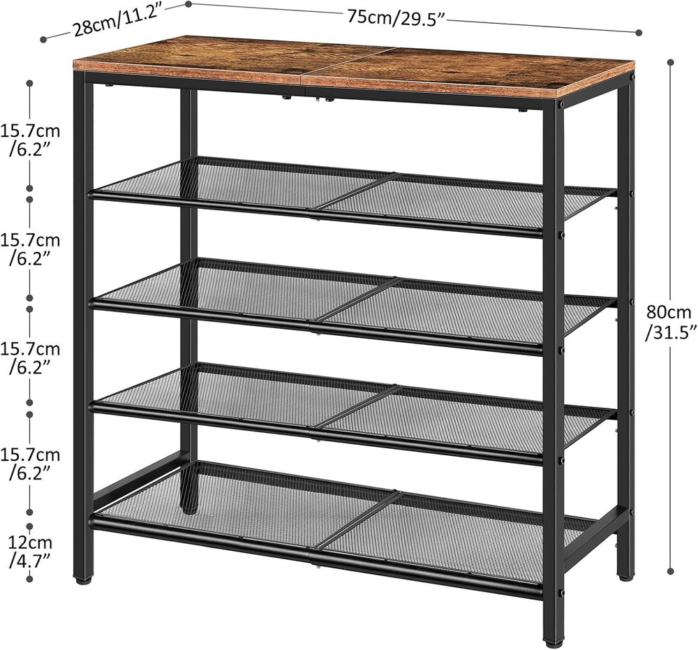 Solid, Sturdy & Stable: Built to Last with Sturdy Steel Mesh shelves and a solid top panel, this 5-tier shoe rack offers exceptional strength and stability, and the small grid metal mesh even allows high heels can be placed well, You can safely use this shoe organizer storage for long periods of time. Fits All Spaces: The size of shoe organizer for closet is 29.5"W x 11.2"D x 31.5"H, which fits well in front door entrances, closets, living rooms, bedrooms, apartments and dormitories, and allows for extra space when needed. Shoe rack for front door entrance keeps your space tidy and organized effortlessly. Ease of Assembly: Quick and simple to assemble, shoe rack for closet can be easily installed in just a few steps with our clear parts number and detail... Happylistings Shoe Rack For Entryway, 5-Tier Shoe Organizer For Closet, Holds 16-20 Pair Shoes, Shoe Storage With Sturdy Steel Mesh Shelves And Top Panel, Shoe Rack For Front Door Entrance,Brown Solid, Sturdy & Stable: Built to Last with Sturdy Steel Mesh shelves and a solid top panel, this 5-tier shoe rack offers exceptional strength and stability, and the small grid metal mesh even allows high heels can be placed well, You can safely use this shoe organizer storage for long periods of time. Fits All Spaces: The size of shoe organizer for closet is 29.5"W x 11.2"D x 31.5"H, which fits well in front door entrances, closets, living rooms, bedrooms, apartments and dormitories, and allows for extra space when needed. Shoe rack for front door entrance keeps your space tidy and organized effortlessly. Ease of Assembly: Quick and simple to assemble, shoe rack for closet can be easily installed in just a few steps with our clear parts number and detailed installation steps. 4 adjustable feet help keeps shoe rack for entryway balance at all times. Maximize Space, Minimize Clutter: With 5 spacious tiers, this shoe organizer can hold 16-20 pairs of shoes, large storage make this shoe rack for entryway hold all your shoes and provide additional counter space, perfect for storing shoes, boots, or even box or small accessories. What You Get: You will get a 5-layer shoe rack that keeps all the shoes neatly placed anywhere, the ultimate organization tool to keep your front door entrance clean. A brown, industrial-style finish complements any home decor, adding a touch of modern elegance to your entryway or closet. Item Specifics Brand Unbranded Type Free Standing Shoe Racks Room Type Living Room Number of Shelves 5 Special Feature Durable Product Dimensions 11.2"D x 29.5"W x 31.5"H Style Modern Weight Limit 50 Pounds Assembly Required Yes Number of Items 1 Included Components Hardware Model S232 Item Weight 14.3 Pounds Installation Type Freestanding Weight capacity Maximum weight: 50 Pounds Item Weight 14.33 pounds Item model number S232 #562,768 in Home & Kitchen (See Top 100 in Home & Kitchen) #562,768 in Contact Us 1.Dear customers, we appreciate your business, our aim is to provide Top Level Customer Service,if you are satisfied with our service, please leave us a 5 star positive feedback . 2.If you have any question or concern about your eBay order, please feel free to let us know. We will try our best to reply all questions within 24 hours. However, no answer will be replied during weekends or holidays. Please allow up to 48 hours delay in receiving our response after long weekends or holidays. 3.Please via eBay Message for a solution for resolutions before leaving negative feedback, we strive to providing the greatest service and bringing the highest satisfaction to all of our customers. Shipping 1.We usually ship within 3-5 business days of receiving cleared payment., and we provide Free Shipping for most items. 2.Fast shipping is very important for us. We use multiple fulfilment warehouse around the United States. We only ship to the lower 48 States and do not ship to PO Boxes. 3.Please make sure the correct Ship-To address is entered before checking out. Once the payment is completed, you may not be able to change the shipping address. We shall not be held responsible for any wrong or undeliverable addresses. Returns 1.We provide 14 days return upon the buyer received the item. It must be in good condition and you will undertake the returned shipping cost. 2.We will offer replacement or refund for all DEFECTIVE items (not including damage resulting from accidents / abuse / misuse / improper care), but a photo is needed for our reference beforehand and should be reported to us within 7 days from purchase date. 3.All items are brand new and have been passed the quality check. All are packed in a good condition before item dispatch. Payment We accept PayPal payment,PayPal Credit,Credit card or debit card and so on. Payment should be completed within 4 (Four) days of auction closing. Or unpaid dispute will be filed for closing auction. We will leave a positive feedback immediately after payment is received. We appreciate a positive feedback as much as you do. If for some reason there is any issue with the purchase, please contact us prior to leaving feedback, we will be glad to work together and provide a satisfying solution. Happylistings DESCRIPTION PAYMENT SHIPPING RETURN POLICY CONTACT US Help & Info Payment Policy Shipping Policy Return Policy FAQ About Us Shoe Rack For Entryway, 5-Tier Shoe Organizer For Closet, Holds 16-20 Pair Shoes, Shoe Storage With Sturdy Steel Mesh Shelves And Top Panel, Shoe Rack For Front Door Entrance,Brown Solid, Sturdy & Stable: Built to Last with Sturdy Steel Mesh shelves and a solid top panel, this 5-tier shoe rack offers exceptional strength and stability, and the small grid metal mesh even allows high heels can be placed well, You can safely use this shoe organizer storage for long periods of time. Fits All Spaces: The size of shoe organizer for closet is 29.5"W x 11.2"D x 31.5"H, which fits well in front door entrances, closets, living rooms, bedrooms, apartments and dormitories, and allows for extra spac