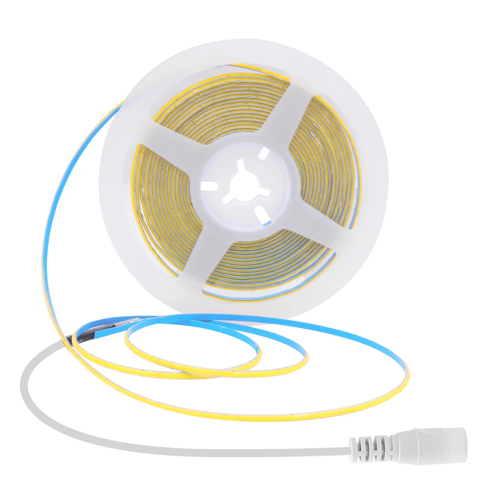 Specifications: Type: COB Led Strip Lights Input voltage: DC12V Power: 5-6W/m(5V); 8-10W/M(DC12V) FPCB Width: 3mm, 5mm, 8mm LED quantity: 320 LED/M Length: 0,5m, 1m, 2m, 3m, 4m, 5m Color temperature: Warm white (3000K), Natural white (4000K), Cold white (6000K) Cut length: 5V/12V 3mm: all 25mm 5V 5mm: all 25mm 12V 5mm: all 50mm 5V 8mm: all 25mm Waterproof quality: IP21 is not waterproof. Connection: 2-pin cable, USB-powered, DC connection USB plug cable length 15cm Operating temperature: -20℃~+45℃ Storage temperature: -20℃~+60℃ Viewing angle: 180° Propert ies: 1.Very smooth balance light, no illumination point, no dark area. 2. Super bright and soft light. 3.Much more bendable and flexible than any other SMD led strip. 4.Cuttable and jointable,can make any length you want. 5. RA>90, much friendly to eyes. Package included: 1x COB Led Strip