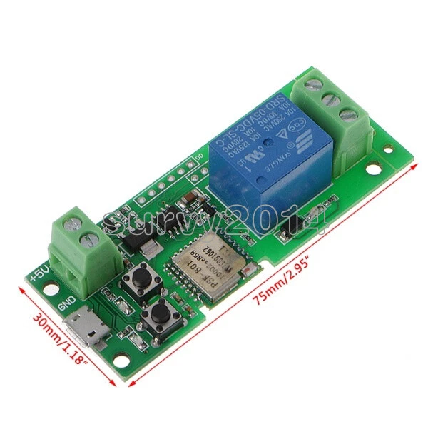 5V Self-lock Smart WiFi Wireless Switch Relay Module DC5V by APP Control Description It's a Wifi wireless switch thet can connect to appliance of different types and brands.The App eWeLink enables you to control your devices easily.You can download IOS version in App Store and the Android version in Google Play. Feature : Size:7.1*3.1*2cm Control Mode:By App Transportation Mode:Wifi System:Android/IOS Remote Control Frequency:433MHZ Wifi Working Frequency:2.4G 802.11 b/g/n Load Power:<=2200W Working Voltage:DC5V Rated switching current:< 10A Rated switching voltage:< 250V Relay Life:>= 1000000 times Insulation resistance:100M Relay maximum pull-in time:15ms Relay maximum release time:5ms Operating temperature:-40℃~70℃ Working Humidity:40%~80% RH Package includes: 1PCS DC5V Jog self-lock Smart WiFi Wireless Switch Relay Module by APP Phone Control Payment Shipping Refund Payment EBAY Managed Payment. But we only Accept your Ebay Address, please Make sure it's 100% right. Payment must be received in 5 business days of auction closing. Please leave note for your special request (e.g. Colors or Size) in PayPal when you pay the order. Any special request cannot be accepted after 24 hours of payment, because most of orders will be processed instantly and same day dispatched. Shipping 1. We only ship to the confirmed address provided by eBay. please make sure your ebay address is 100% matches the address you would like us to ship to. If not, please let us know before we sent you the package, or we will not be responsible for any loss. hope you could understand. 2. Orders will be processed instantly and dispatched within 1-3 business days except hoilday, so we do NOT accept any email/message note after you place orders. 3. All package need to wait 30 days,Please take care it.Less than 30 days,we can't take a refund. Refund If you can't receive the product within 2 months (60 days), please contact with us,we promise to payback 100% of your money. We ensure our products work normally before post.If the products is broken before arrival to you,all you should do is taking a photo to show us our broken product.We promise to payback 100% of your money. If the item is defect when you receive it or you are not satisfied with it, please return it within 14 days for a replacement or money back. But the items must be back in factory condition. Please contact us and double check the return address before you return it. If is item is defective in 12 months, you can return it to us. We will send you a new replacement after receiving the defective item.