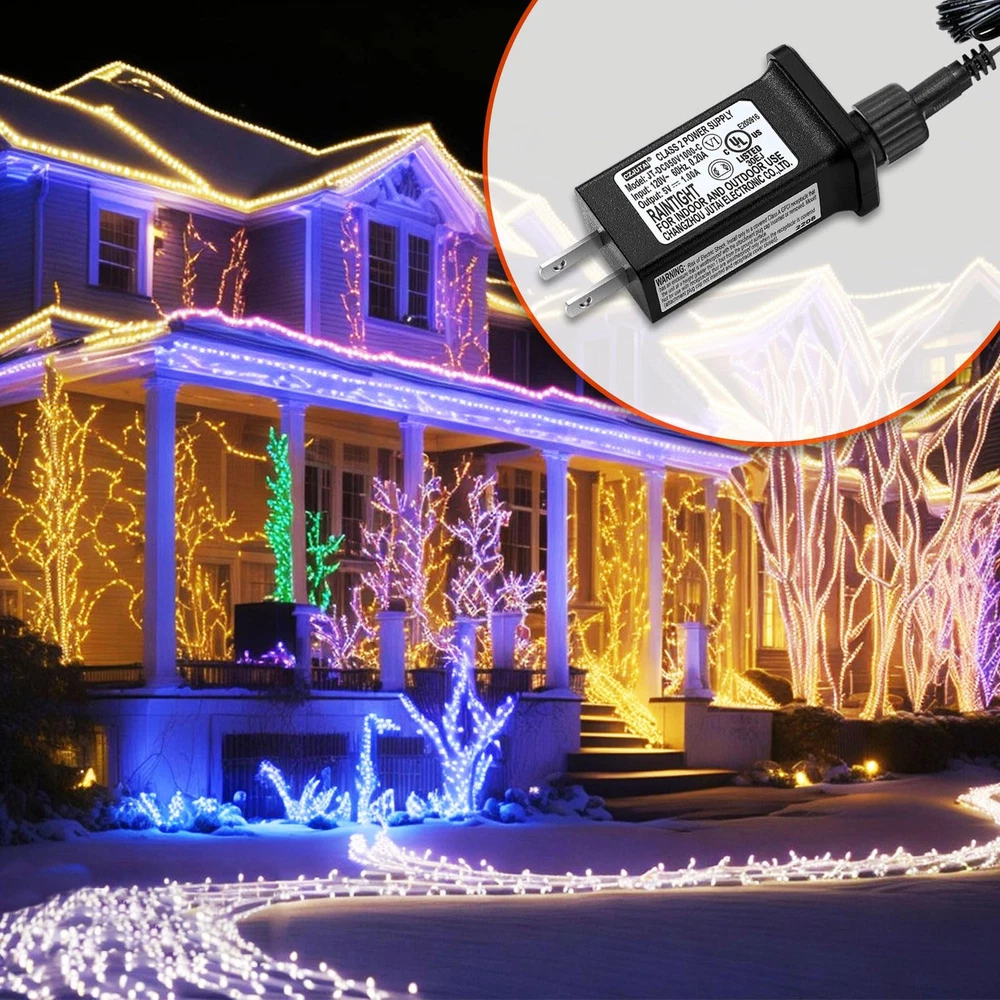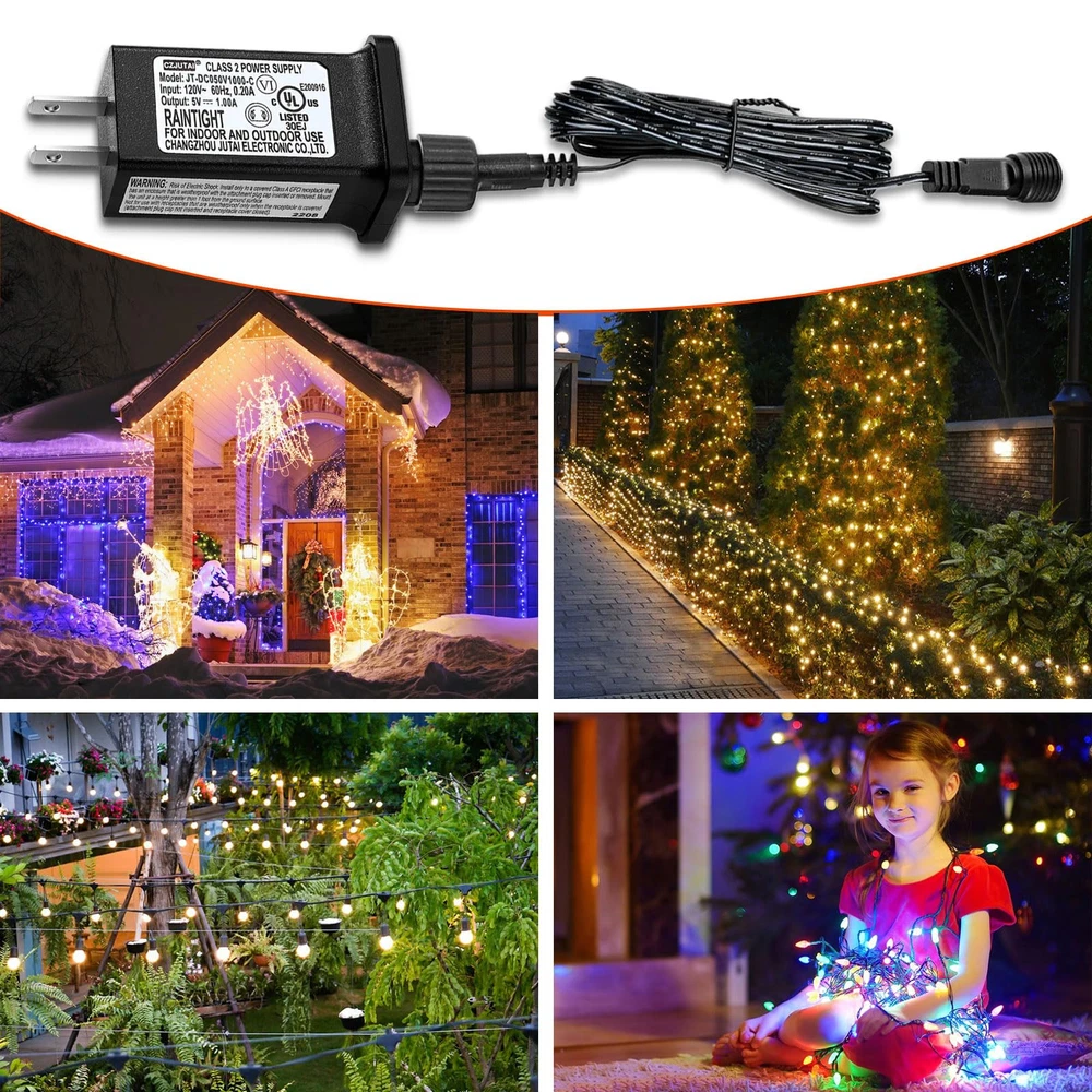 Our LED light adapter is suitable for most holiday light, such as holiday decoration lights, Christmas trees, line lights, lawn lights, curtain lights, fountain lights, and so on. Please double check images and specifications to mare sure if it fits for your device or not. Provides a Variety of Protections:Over Power Protection,Over Current Power Protection,Over Voltage Power Protection Specification: Input: 120V, 60HZ, 0.2A, Output: 5V, 1A, Rated Watts 6W, with 2 meters extension cable. Class 2 Power Unit 5V: Fits for most of the 5V low voltage led device, such as holiday decoration light, Christmas trees light, LED string light, lawn lamp, curtain light, indoor outdoor led strip lights. Product Modes: This low voltage transformer plugs with constant light mode, which is beautiful on the Christmas tree, it can meet your daily using needs. Safe and Waterproof IP44: Operated with low voltage transformer, will not overheat after long time use. Short-circuit protection design can ensure and maximize your safety, the adapter plug is not completely waterproof, please keep away from water. Warm Tips: Please check the output voltage, currents, watts and (+/-) two hole of connector if it fits for your device or not before your purchase. if you have any problem with our product, please feel free to contact us for help.