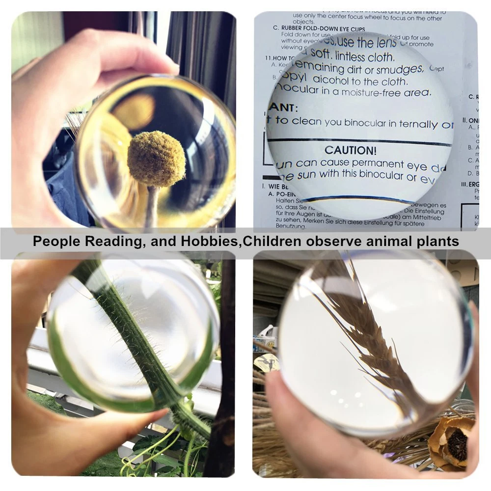 ★SAFETY DOME MAGNIFIER - Made of high quality acrylic material for lighter weight and stronger quality, it is not easy to scratch and break if you drop it to gound uncarefully. ★EXTREMELY CLEAR MAGNIFICATION EXPERIENCE - 5x magnification, 3 inch lens with self focusing, Own incredible optical clarity, help you discover another interesting world. ★HANDS-FREE DESIGN - Simply glide it across your reading surface, a great magnifying glass to enlarge your text and maps to make them easy and comfortable to read. ★MULTI-PURPOSE - We try to make it as multipurpose and convenient to be used and offer tremendous value for low vision users, ideal for examining fine details in newspapers, maps, magazines and other documents. ★PACKING - 1 3" dome magnifying glass, 1 carrying bag (can be used as cleaning cloth), 1 small and convenient box.