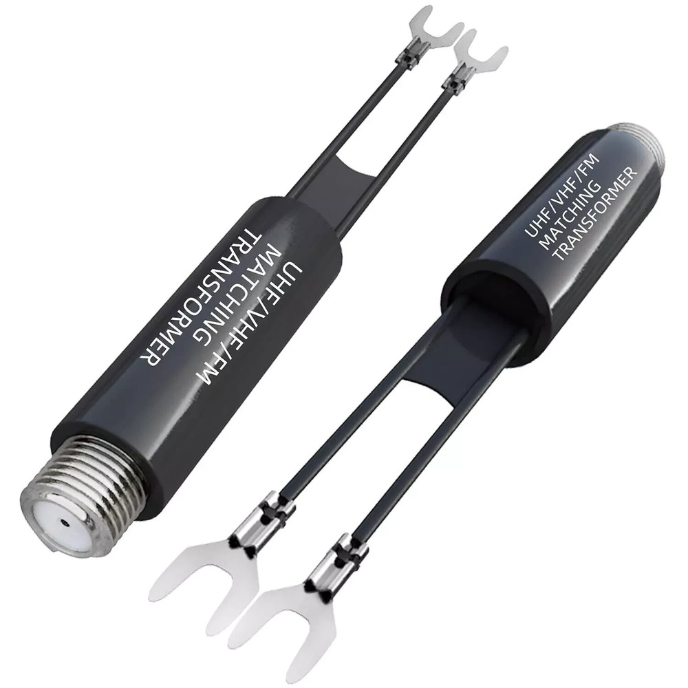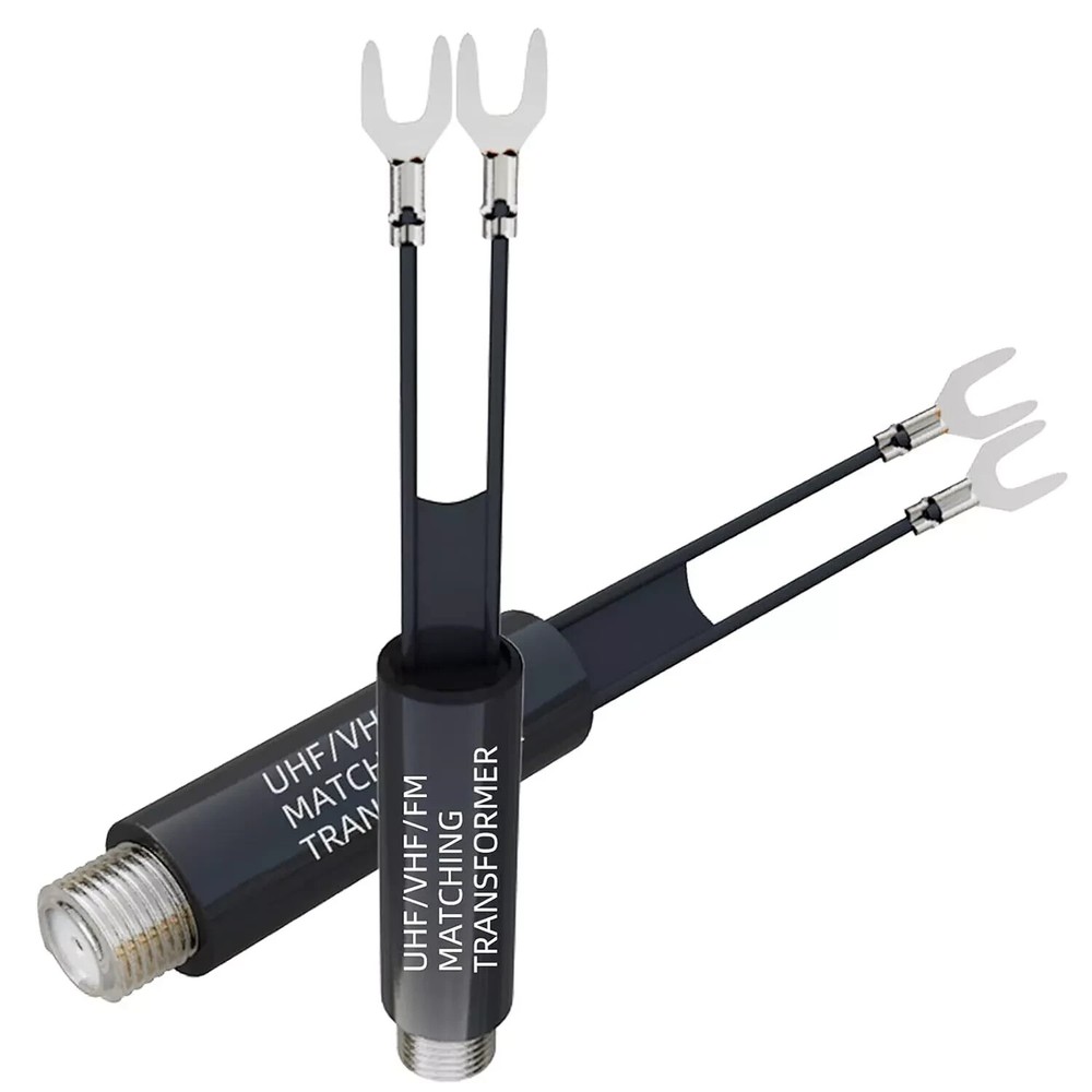 Welcome to Kumbala eBay Store Description: - Converts transform 75 Ohm coaxial connector cable wire to dual 300 Ohm leads. - Supports bandwidth 5-900MHz frequency HD/TV/UHF/VHF/FM. Included in this package: - 5PCS Adapter Warranty & Customer Service : 30 days money back 60 days seller's guarantee, 24 Hours friendly customer service!