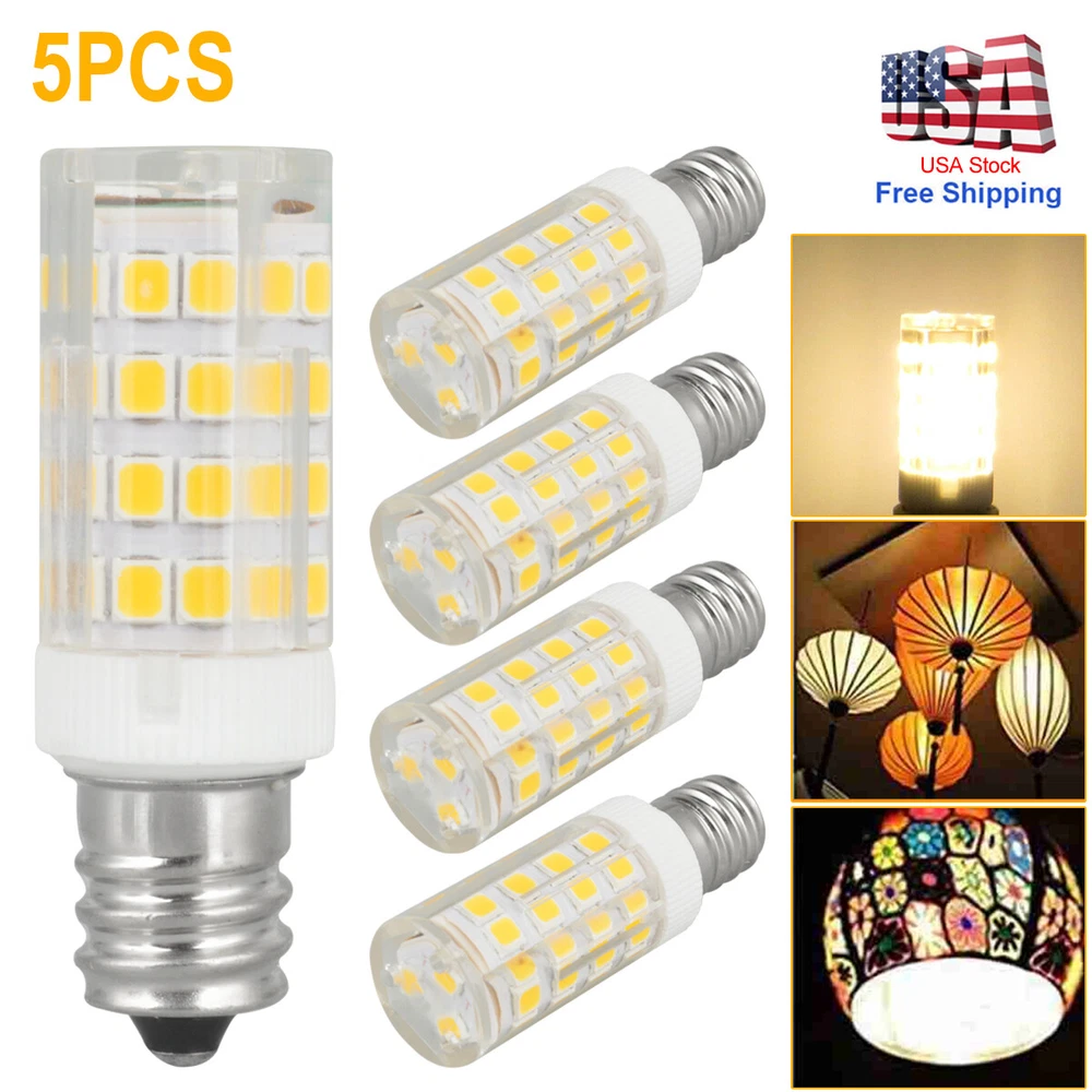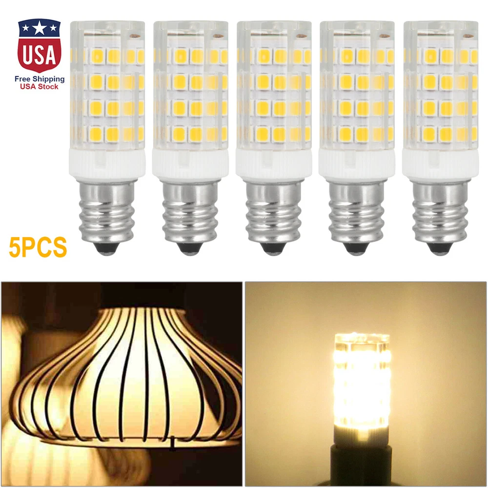 Product Description ⚡US Stock, the estimated delivery time is about 2-5 business days. ⭐100% Brand New and High Quality Features: -This one is good because it has 51smd LED's in the end. More light is emitted from this bulbs. -Equivalent to 50W-70W Halongen light bulb, using only 7Watt. -Ceramic base for fast heat dissipation -Instant-on to full brightness. -No more maintenance, long lifespan. Specification: Base: E12 Candelabra Base Part Number: 51 SMD 2835 Power: 7W Voltage: AC110V~120V Brighrenss: 240lm Beam Degree: 360 degree Material: Ceramics+PC Color: Cool White(5500K-6500K)/ Warm White(2700K-3500K) Size: Total length: 49mm Maximum width: 16mm Note: -Please confirm the lamp bead voltage before buying: 1). Traditional halogen lamp beads are divided into 12V and 110-220V, 12V is divided into AC and DC, DC12V is smart for DC power supply 2). The lamp with transformer is 12V, see the original Whether there is a voltage logo printed on the lamp beads. -Confirm the lamp holder model: The number at the beginning of G is the pin base, the value at the back is the 2-pin center spacing, the value at the beginning of E is the screw base, and the value at the back is the diameter of the cap. - Energy-saving lamps cannot be replaced directly. Package including: 5pcs Cool white/ Warm white LED Light Bulbs (Your choice) Payment We accept PayPal only. If buyer want to delay the payment because of financial problem, please contact me by the ebay message within 3 days Payment via PayPal (PayPal accepts all major credits/debit cards and eCheque) ECheque payment will tak e 3-10 days to get clear, thus DELAYing the shipment. Shipping Handling time: 1 business day (Orders are not processed on weekends & holidays) Tracking information will be sent once item is shipped. Local pick-up is unavailable at the moment. For international shipping and shipping to Guam, Hawaii and Alaska, Please contact us before placing the order. Item is shipped to ebay address. Leaving correct address can minimize delay. Terms For any issues with Defects, Return, Item Exchange request, please contact us first and send us a message first before opening any type of case or request. We devote ourselves making EVERY CUSTOMER in 100% Satisfactory and resolve any problem. We highly value and appreciate your business. Thank you. No returns will be accepted without an RMA number. Please contact us for the RMA number. Return is acceptable within 30 days of delivery. Return for replacement or money back is optional. Returned items must be in the brand new, unaltered and resalable condition. Seller is not responsible for any labor cost, expense in a dealer store, or damage due to wrong installation. Returns Return is accepted within 14 days after the buyer's receiving the item. (Excluding contrived damagement or misusage).100% money-back Guaranteed! All product will be tested in 100% before delivery.If the item is defected by the processing of postage,Buyer has up to 14 days from date of receipt for exchange of a new one.All shipping charges for returned products are to be paid by the buyer,Please contact us for the return address Contact Us All messages will be answered within 24 office hours. Please contact us either by clicking "contact seller" in the "purchase history" section or simply click "ask a question" at the bottom of this page. If you are unsatisfied with our item or service, please contact us before leaving any feedback. We are committed to resolve all issues in a friendly and satisfactory manner. We always reply to messages within 2 business days (off-duty at weekend). If you do not get a response from us, then please check your junk or spam mailbox. powered by