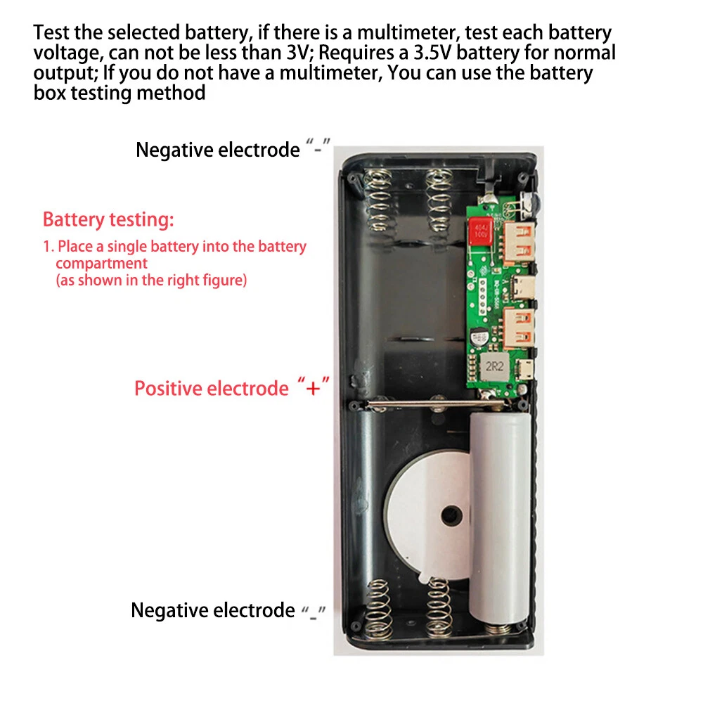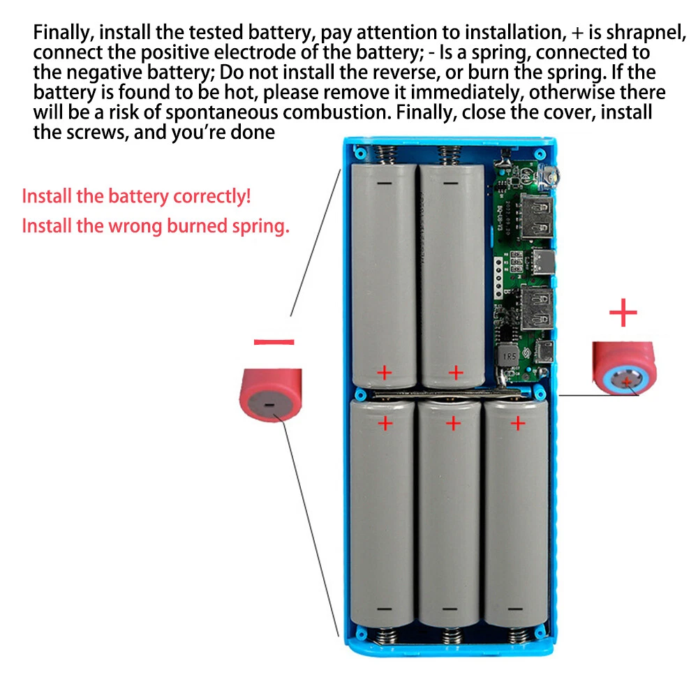 Store Categories Store Categories Other Dual USB DIY LCD Display 5x21700 Battery Case Power Bank Shell Charger Box USA Details Features: 1. Place 5 21700 flat head batteries, solderless and reusable DIY battery case. (excluding batteries) 2. Power display, intelligent automatic shutdown in non working state, long press or double click to turn on LED light; Reverse installation does not burn the motherboard. 3. Easy to install, no difficulty, no need for welding or secondary processing, only the battery needs to be installed correctly and assembled for use. It can be repeatedly disassembled and replaced. 4. It is a good companion for home/outdoor activities, easy to operate, and easy to disassemble and install. 5. Do not support pointed batteries. Instead, use 21700 flat headed batteries. Do not use aging batteries. Poor use of batteries can result in inability to output, especially when used in other places for a long time and disassembled for use. (To purchase such DIY products, it is necessary to have a certain understanding of this, otherwise improper operation may cause other problems such as burning the motherboard.) Attention: It does not support 3.2V iron phosphate batteries. Do not use damaged batteries, do not put batteries that do not meet the requirements, and do not modify/weld products. The production of this product poses a high safety risk, please be cautious! Specifications: Applicable battery: 3.7V21700 battery (flat head - standard with a diameter of 2.1cm and a length of 7cm) (not included in shipment) Output: Dual USB interface Input interface: Type-C port (PD not supported) micro Android interface Output power: 12W Single USB output: 5V/0.1-2.1A; Dual USB output: 5V/0.1-2.4A; IN input (micro/type C): 5V/2.1A (MAX) Package List: 21700 battery box (excluding batteries) * 1 Shipping Policy Payment Method Returns Policy Shipping Policy Payment Method This is the description of Payment Method. Do not dismiss your dream. To be without dream is to be without hope. To be without hope is to be without purpose. Do not run through your life so fast that you forget not only where you have been, but also where you are going. Life is not race, but a journey to be savored each step of the way. Returns Policy This is the description of Returns Policy. Do not dismiss your dream. To be without dream is to be without hope. To be without hope is to be without purpose. Do not run through your life so fast that you forget not only where you have been, but also where you are going. Life is not race, but a journey to be savored each step of the way. Copyright©2017 DataCaciques Dual USB DIY LCD Display 5x21700 Battery Case Power Bank Shell Charger Box USA Item Description Features: 1. Place 5 21700 flat head batteries, solderless and reusable DIY battery case. (excluding batteries) 2. Power display, intelligent automatic shutdown in non working state, long press or double click to turn on LED light; Reverse installation does not burn the motherboard. 3. Easy to install, no difficulty, no need for welding or secondary processing, only the battery needs to be installed correctly and assembled for use. It can be repeatedly disassembled and replaced. 4. It is a good companion for home/outdoor activities, easy to operate, and easy to disassemble and install. 5. Do not support pointed batteries. Instead, use 21700 flat headed batteries. Do not use aging batteries. Poor use of batteries can result in inability to output, especially when used in other places for a long time and disassembled for use. (To purchase such DIY products, it is necessary to have a certain understanding of this, otherwise improper operation may cause other problems such as burning the motherboard.) Attention: It does not support 3.2V iron phosphate batteries. Do not use damaged batteries, do not put batteries that do not meet the requirements, and do not modify/weld products. The production of this product poses a high safety risk, please be cautious! Specifications: Applicable battery: 3.7V21700 battery (flat head - standard with a diameter of 2.1cm and a length of 7cm) (not included in shipment) Output: Dual USB interface Input interface: Type-C port (PD not supported) micro Android interface Output power: 12W Single USB output: 5V/0.1-2.1A; Dual USB output: 5V/0.1-2.4A; IN input (micro/type C): 5V/2.1A (MAX) Package List: 21700 battery box (excluding batteries) * 1 Payment 1.We only accept payment from PayPal. 2.Please make sure your eBay address is correct before you pay. 3.All payment Should be Completed within 7 days, or an unpaid disputed will be opened as payment none receive. 4.If you do not want to pay for the order please contact us via eBay message, we will help your cancel the transaction. Shipping 1. We only ship to confirmed PayPal addresses. 2. Economy Shipping, with no tracking number. Standard Shipping, with tracking number. Express (Expedited) Shipping, with tracking number. 3. Economy shipping needs 2-5 weeks to arrive mostly. In rare case, it can take up to 6-8 weeks. It depends on your location and local postal service, as well as the weather condition along the shipping. 4. If you need a faster delivery time, you could choose Express (Expedited) Shipping. If you need a tracking number, you could choose Standard Shipping. Return 1. We offer 60 day money back or replacement guarantee. In addition, it allows customers to return new and unused products in their original factory condition for any reason within 60 days from the date of purchase. 2. Although we test each item and they are packed professionally, few item(less than 0.1%) might be damaged during the shipping. Please feel free to contact us within 4 days after you receive your package about replacement. 3. If you don't receive items over 35days ,please make sure to contact us before leaving any neutral or negative feedback.We'll try our best to help you solve the problem. If we authorized the return, customers will get an email with instructions