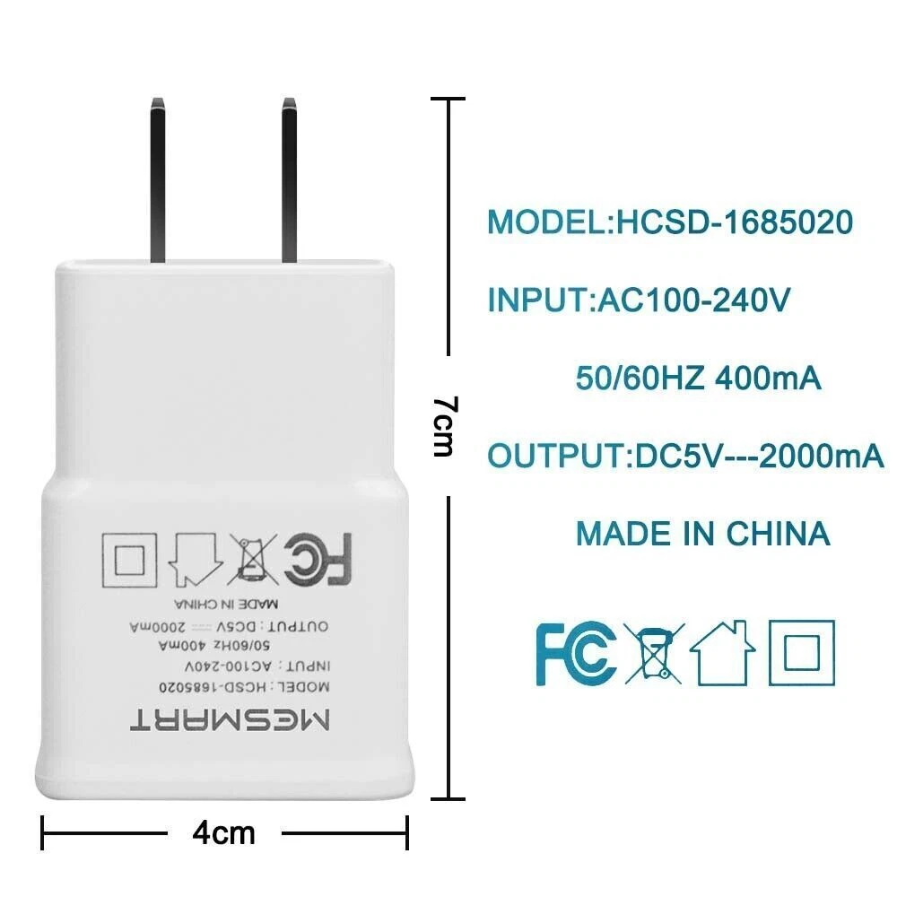 You may also like USB+TYPE-C PD Fast Car Charger Plug 20W For Apple iPhone 16 /16+/ 16 Pro/Pro Max 10.99 USD Free shipping For Samsung Galaxy S20 S21 S23 S24+ Fast Car Charger USB Type C to USB-C Cable 6.99 USD Free shipping Fast PD USB C Wall Car Charger Type C Charging For Apple iPhone 15 Pro Plus Max 7.59 USD Free shipping For Motorola Moto G Stylus 5G Power Pure Fast Wall Car Charger Type-C Cable Lot 6.99 USD Free shipping For iPhone16 15 14 13 12 Samsung Lot PD USB-C Fast Charging Car Charger Adapter 8.99 USD Free shipping Bulk Lot 3/6/10FT Type USB-C to USB-C Cable Fast Charging PD Cord Rapid Charger 6.99 USD Free shipping For iPad Pro 12.9 iPhone 15 Pro Max 15 Plus Fast PD Type C Cable Charger Cord 6.99 USD Free shipping 1-3x USB-C to USB-C Cable Fast Charger Type C Charging Cord Data SYNC 3/6/10 Ft 6.99 USD Free shipping For Samsung Z Fold6 5 4 3 Flip6 5 USB-C to 3.5mm Aux Jack Adapter Earphone Cable 8.99 USD Free shipping Fit Samsung S24 S23+Ultra 5G Type C Fast Charging Charger USB-C to USB-C Cable 6.99 USD Free shipping For Samsung Galaxy A55 A54 A53 A35 A14 Fast USB C Wall Plug Charger Type-C Cable 6.99 USD Free shipping Fast USB-C Wall Charger Type-C Cable Cord For Samsung Flip6 Flip5 Flip4 Fold6 7.99 USD Free shipping NEW ITEM USB 3.1 Type C Female to Micro USB Male Adapter Data Converter Connector USB-C 5.99 USD Free shipping For OnePlus 8 7 Pro Nord N30 2 5G Fast Type C Wall Car Charger Cable Power Cord 6.99 USD Free shipping For Motorola Moto G Stylus Play Power 5G 2024 USB C Wall Car Charger Cable White 15.28 USD Free shipping For Motorola - razr+ 2024 Fast Charger Home Adapter/3FT Type C Cable Sync Cord 5.99 USD Free shipping Long USB C To USB C Fast Charger PD 20W Dual Type C Charging Data Sync USB Cable 6.85 USD Free shipping Wall Charger Power Adapter Plug Supply Charging Brick Bulk Wholesale Universal 6.6 USD Free shipping 2024 Upgrade Fast Charger Cable USB to Type C Plug Adapter for iPhone 15 Pro Max 6.99 USD Free shipping Fast Type C Charger Cable Power Charging Cord For Samsung Galaxy S24 Ultra S24+ 5.99 USD Free shipping USB C Car Charger QC3.0 Fast Charging Phone Charger Dual Port For iPhone Samsung 12.99 USD Free shipping For Apple iPhone 15 Plus Pro Max USB C to Type C Fast Charger Cable Lead Wire 5.99 USD Free shipping Type C Charger Charging Data Sync Cord For Samsung Galaxy S24 S23 S22 S21+ Ultra 6.99 USD Free shipping For Samsung Galaxy A10e A13 A21 A23 A32 A42 USB Type C Charger Cable Cord Phone 7.99 USD Free shipping Product Description NEW ITEM USB 3.1 Type C Female to Micro USB Male Adapter Data Converter Connector USB-C 5.99 USD Free shipping For OnePlus 8 7 Pro Nord N30 2 5G Fast Type C Wall Car Charger Cable Power Cord 6.99 USD Free shipping For Motorola Moto G Stylus Play Power 5G 2024 USB C Wall Car Charger Cable White 15.28 USD Free shipping For Motorola - razr+ 2024 Fast Charger Home Adapter/3FT Type C Cable Sync Cord 5.99 USD Free shipping Long USB C To USB C Fast Charger PD 20W Dual Type C Charging Data Sync USB Cable 6.85 USD Free shipping Wall Charger Power Adapter Plug Supply Charging Brick Bulk Wholesale Universal 6.6 USD Free shipping 2024 Upgrade Fast Charger Cable USB to Type C Plug Adapter for iPhone 15 Pro Max 6.99 USD Free shipping Fast Type C Charger Cable Power Charging Cord For Samsung Galaxy S24 Ultra S24+ 5.99 USD Free shipping USB C Car Charger QC3.0 Fast Charging Phone Charger Dual Port For iPhone Samsung 12.99 USD Free shipping For Apple iPhone 15 Plus Pro Max USB C to Type C Fast Charger Cable Lead Wire 5.99 USD Free shipping Type C Charger Charging Data Sync Cord For Samsung Galaxy S24 S23 S22 S21+ Ultra 6.99 USD Free shipping For Samsung Galaxy A10e A13 A21 A23 A32 A42 USB Type C Charger Cable Cord Phone 7.99 USD Free shipping Features for Wall Charger: Brand: MESMART Made of high quality ABS material Standard AC charger (US plug) Input: AC 100-240V 50/60Hz 400mA Auto adjustable 100-240V input fits world travelers in most countries Output: DC 5V 2A Compatible with a USB charging cable (Not include in package) to charge the device you need Charging faster and safer than 1A adapter Certificated by FCC CE RoHs, ensure the safety for daily use Auto stop charging after full charged, save energy and keep it safe Portable design, convenient to carry Light Weight: 31g (1.09oz) Size: 50*35*20mm (1.97"*1.38"* 0.79") Features for Car Charger Model: UP-518B Made of high quality ABS material Input: DC 12V-24 Output: DC 5V/3.1A Certificated by FCC CE RoHs, ensure the safety in car Dual USB port design, charge two devices simultaneously Cool LED light will turn on while plug into car’s cigarette lighter High speed charging, as quick as charging through a wall outlet Auto stop charging after full charged, save energy and keep it safe in car Portable design, convenient to carry Light weight: 21g (0.74oz) Length: 61mm(2.4”) Diameter: 27 mm (1.06”) Features for Type-C USB Charger Cable: High quality and durable material Standard USB 3.1 Type C connector Connect with type-C enabled devices for both data sync and charging Sync data, up to 480mbps high speed data transfer rate Designed with thicker copper cable wrapped inside, ensure the charging quality and safety Reversible deign, convenient for daily use Length: 3ft/5ft/6ft Light weight: 21g (0.74oz) Package Content: Depend on what had been chose You may also like Wholesale Bulk 20W USB C Type C Power Adapter Fast Charger Block For Motorola 12.99 USD Free shipping 2A 5V USB Wall Charger Power Adapter Plug Supply Charging Brick Bulk Wholesale 13.99 USD Free shipping US 2A Adapter Lot Power Home USB Wall Charger Plug For Samsung Android Phone LG 15.99 USD Free shipping For Motorola Moto G Pure/Fast/Power/Play/Stylus Fast Wall Charger Type-C Cable 6.99 USD Free shipping 3Pack USB-C Charger Cable Fast Charging Data Cord For iPhone 15 Pro Max 15 Plus 12.99 USD Free shipping Fast PD USB-C Wall Charger Type C Cable Charging Cord For iPhone 15 Pro Max Plus 6.99 USD Free shipping Lot USB-C T