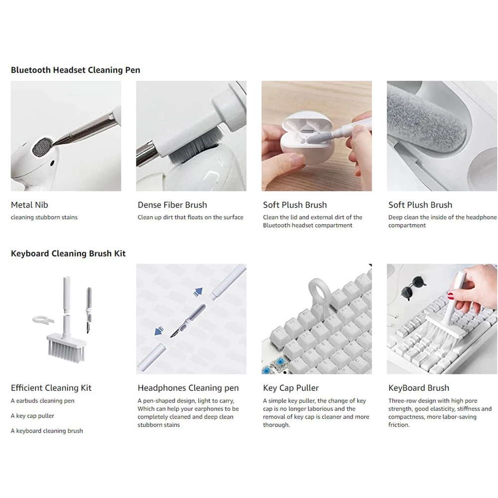 Feature: 1. Separate Structure: The keyboard brush is a design of separate double head and keyboard brush and keyboard key extractor 2. Flocked Sponge Material: The cleaning brush pen consists of a metal nib, a brush and a flocked sponge, which can clean the dust, and the flocked sponge for further cleaning 3. 3 Row Design: The keyboard duster brush does not hurt the keyboard, which is moderately soft and hard, three row design, high pore strength, and less friction 4. Easy Pulling: Using a simple key puller is no longer laborious to replace the keycaps, and is easier to clean after removing the keycaps 5. Scope of Application: Suitable for digital products such as BTearbuds, headphones, mobile phones, computers, tablets, cameras, etc Specification: Item Type: Keyboard Brush Material: Plastic, Metal, Flocked Sponge Weight: Approx. 35g/1.2oz Package List: 1 x Keyboard Brush 1 x Key Puller